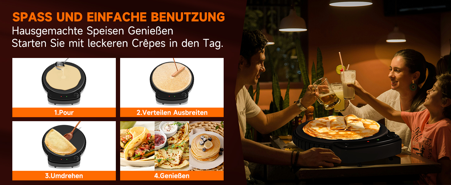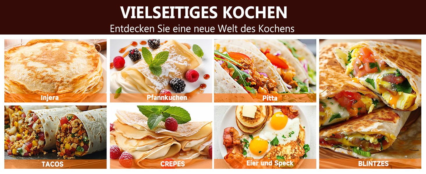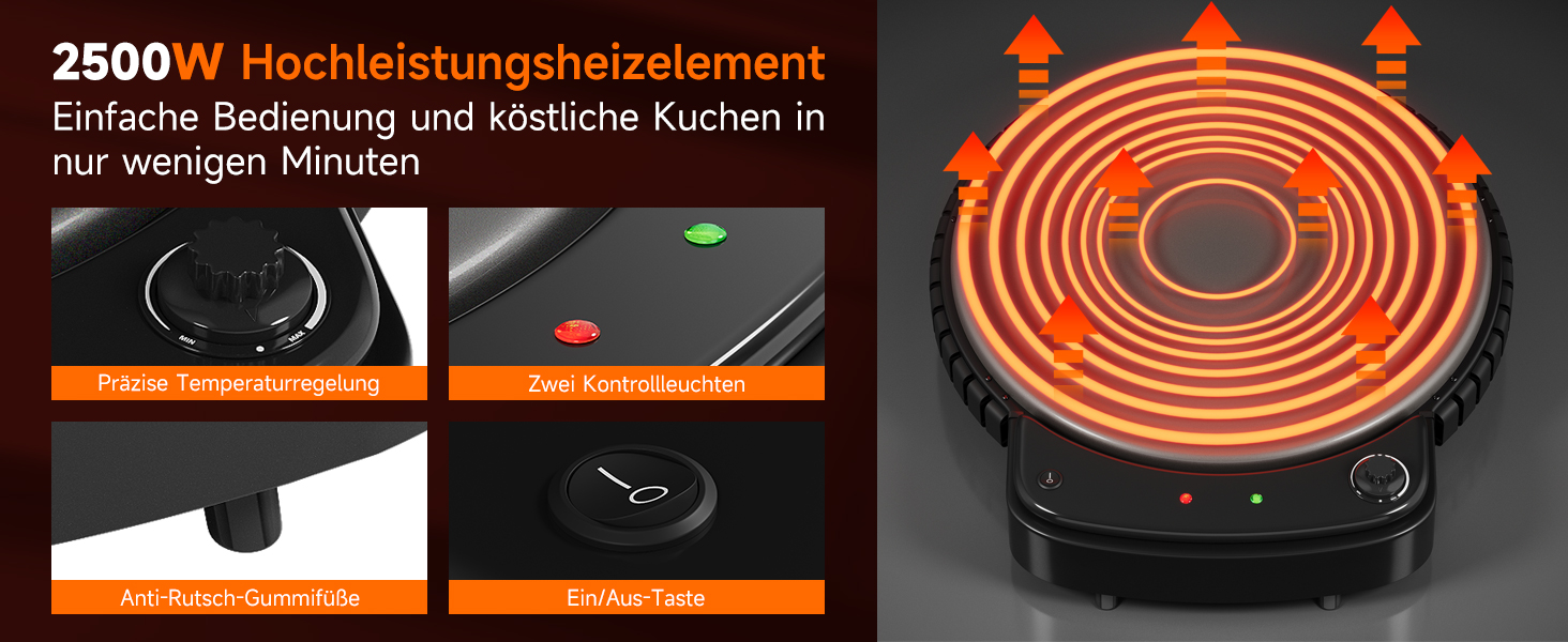 HOMELUX Ø50 cm Crêpes Maker 2500W Elektrische Crepesmaker Fladenbrot Bäcker mit Antihaftbeschichtung Stufenlose Temperatureinstellung für Crepe Pancake Yufka Katmer Sac Galettes Burritos Taccos