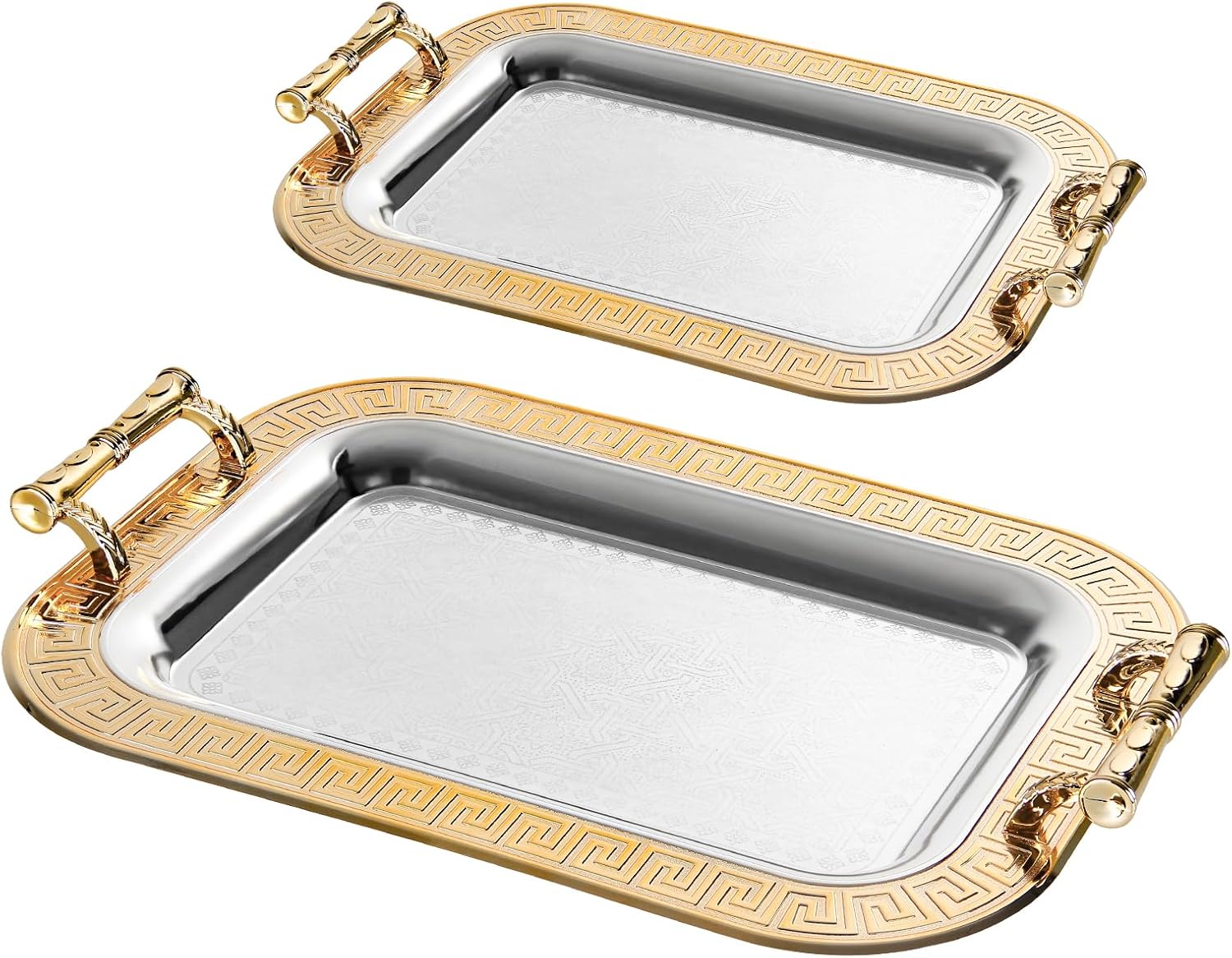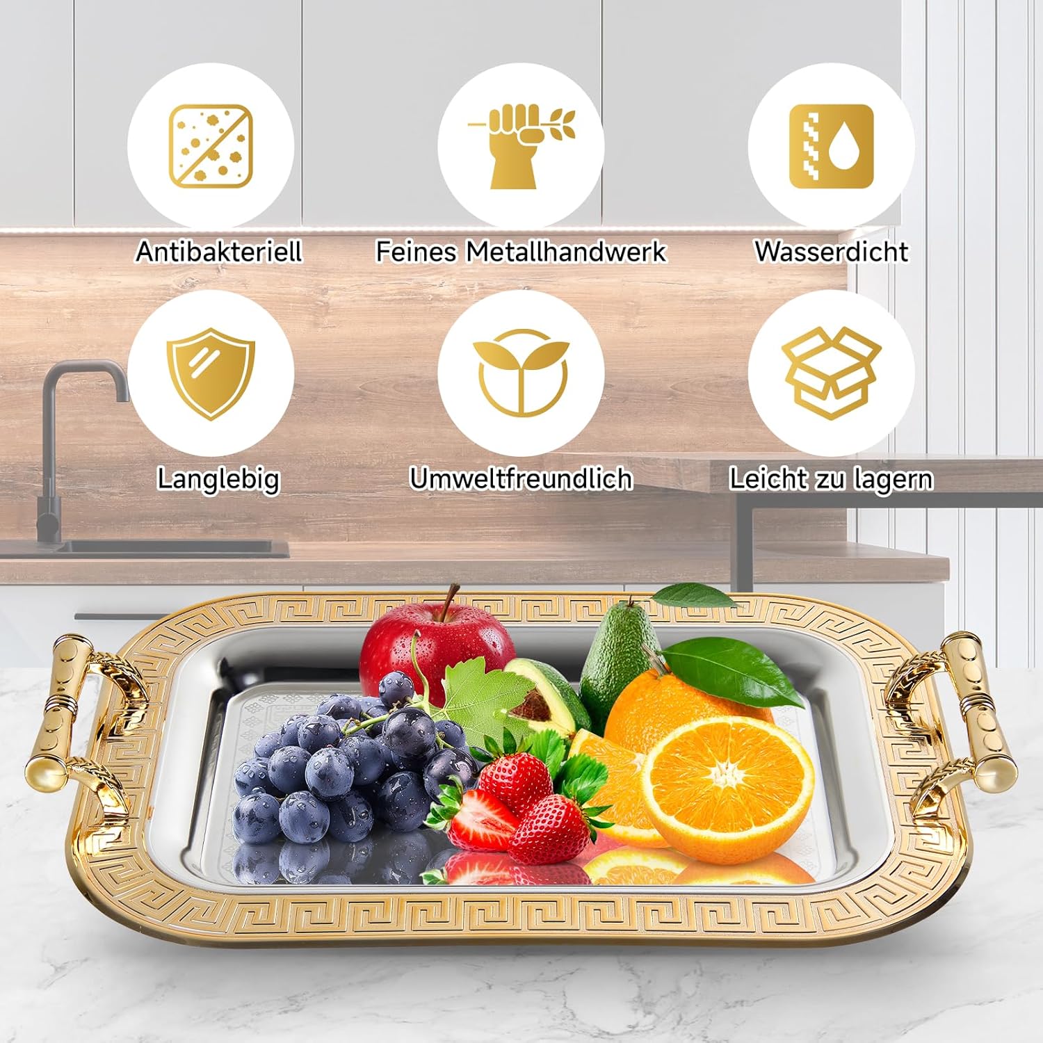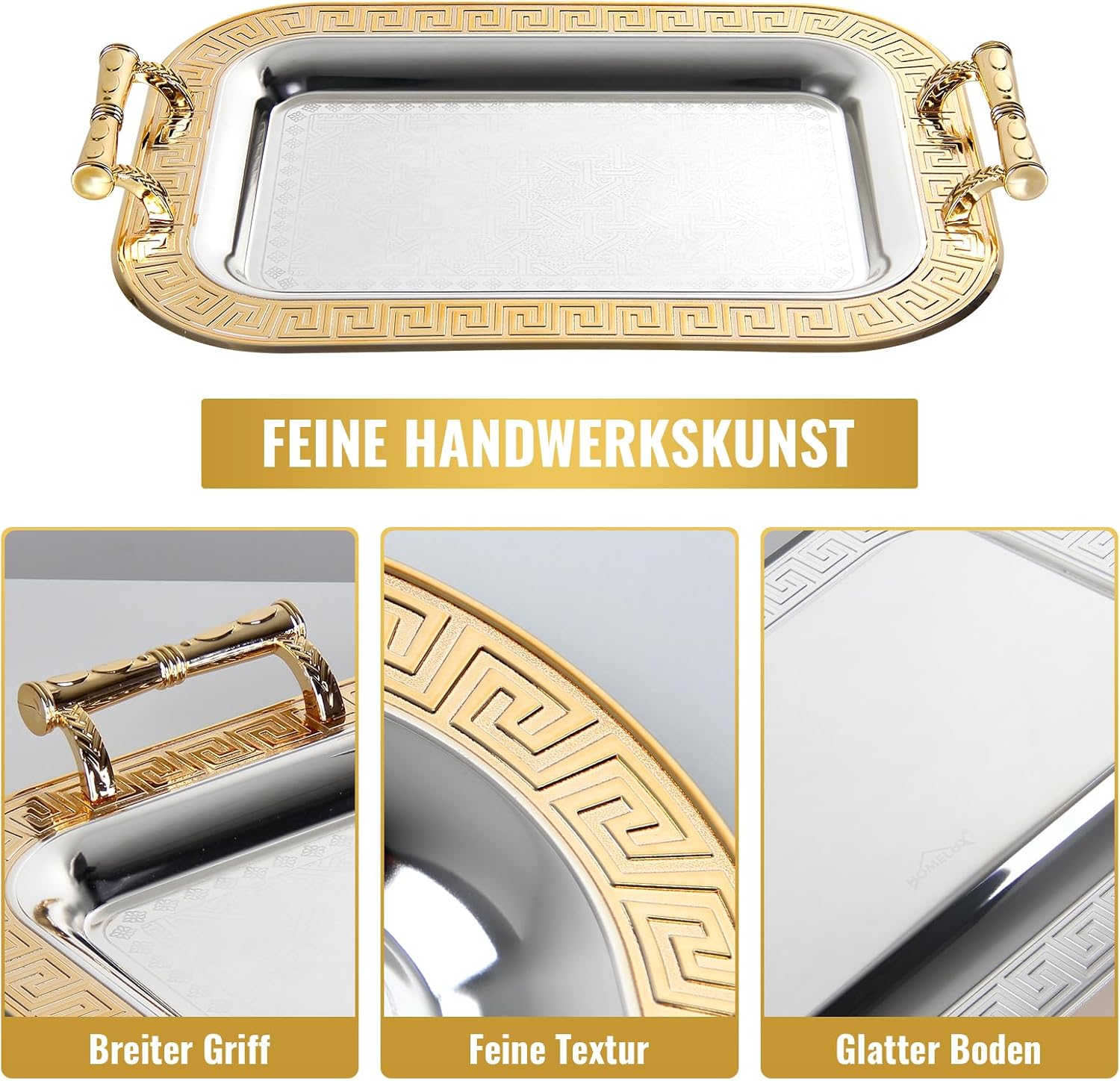Tablett Homelux Servierplatte Set 2 Stück Deko Tablett mit Grif, Praktisches Tablett für Küche, Wohnzimmer, Bad, Bankett(HL-TS2320M)