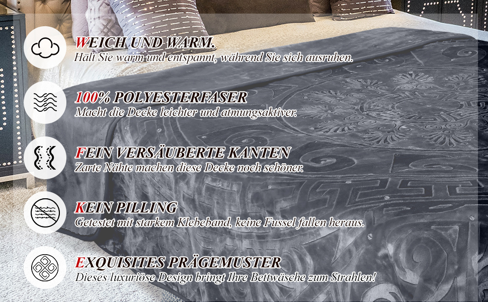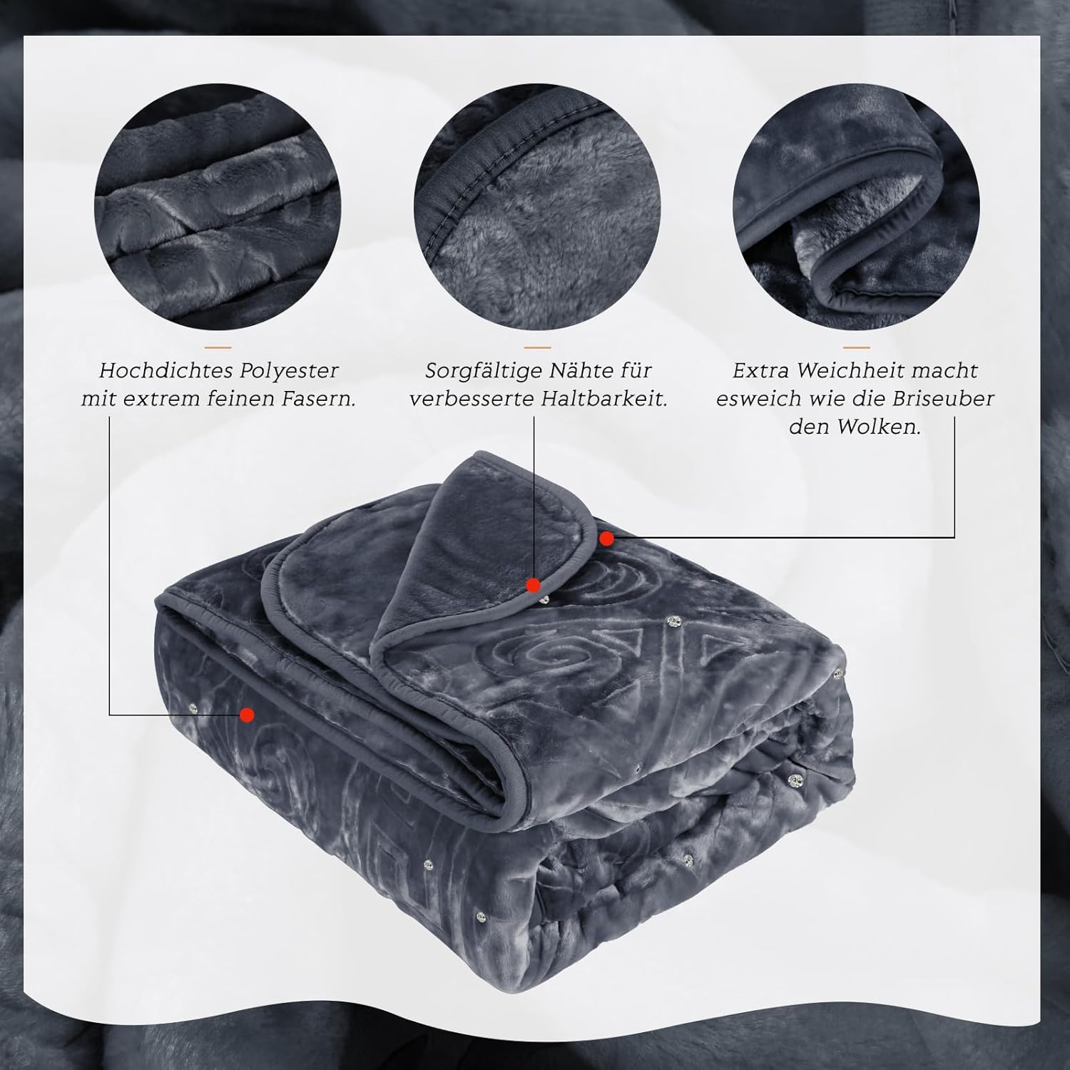 HOMELUX Kuscheldecke Flauschig Wohndecke 200x240 cm Warm & Weich Decke für 4 Jahreszeiten Sofadecke Raschel Decken Wohn- & Kuscheldecken Winter Blanket Couchdecke für Bett, Sofa Überwurfdecke Grau(HL-B2SSGR)