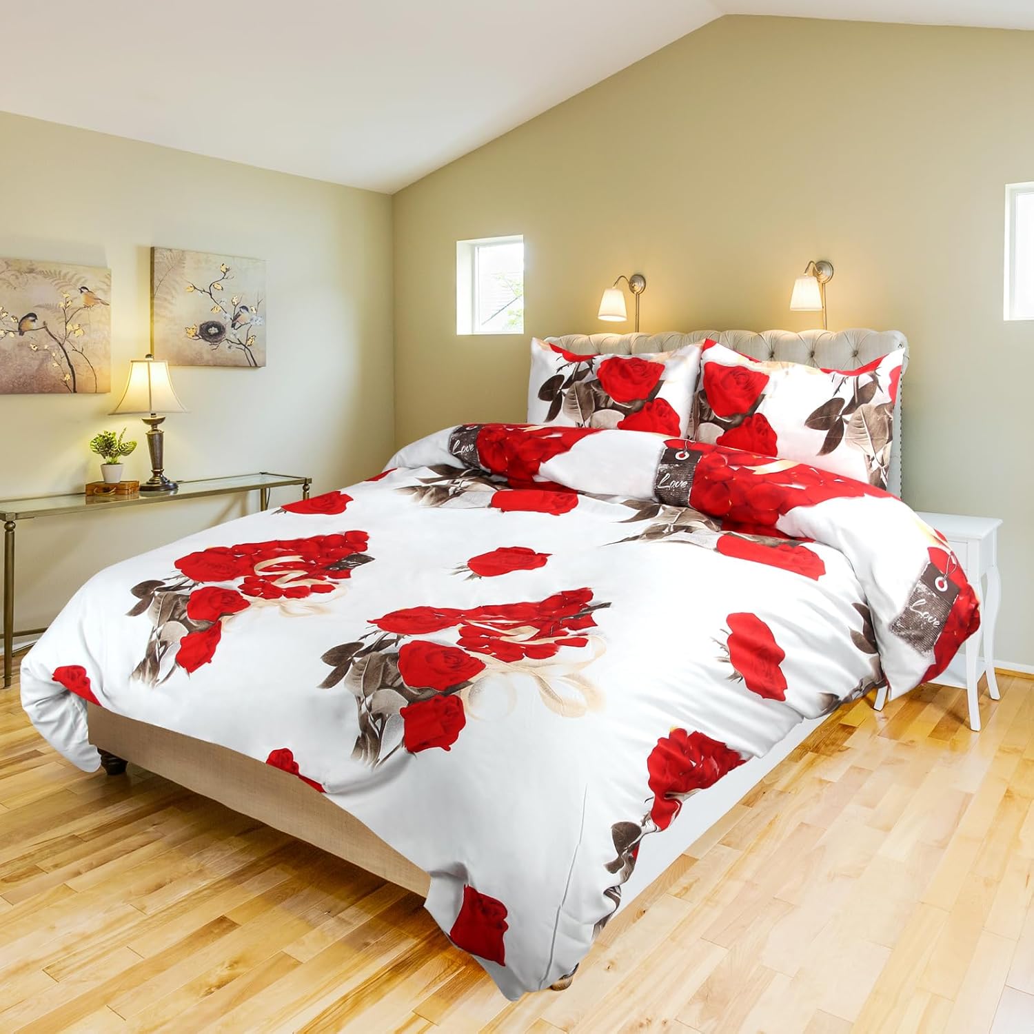HOMELUX Bettwäsche-Sets 220x240 4teilig - 1 Bettbezüge 200x220 cm + 1 Bettwäsche 220x240 cm + 2 Kissenbezüge 50x70cm, aus Polyester Mikrofaser mit Reißverschluss Weich und Bügelfrei, Rose Flower2(HL-4CSD072)