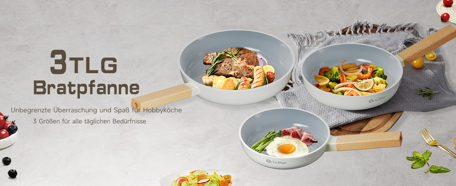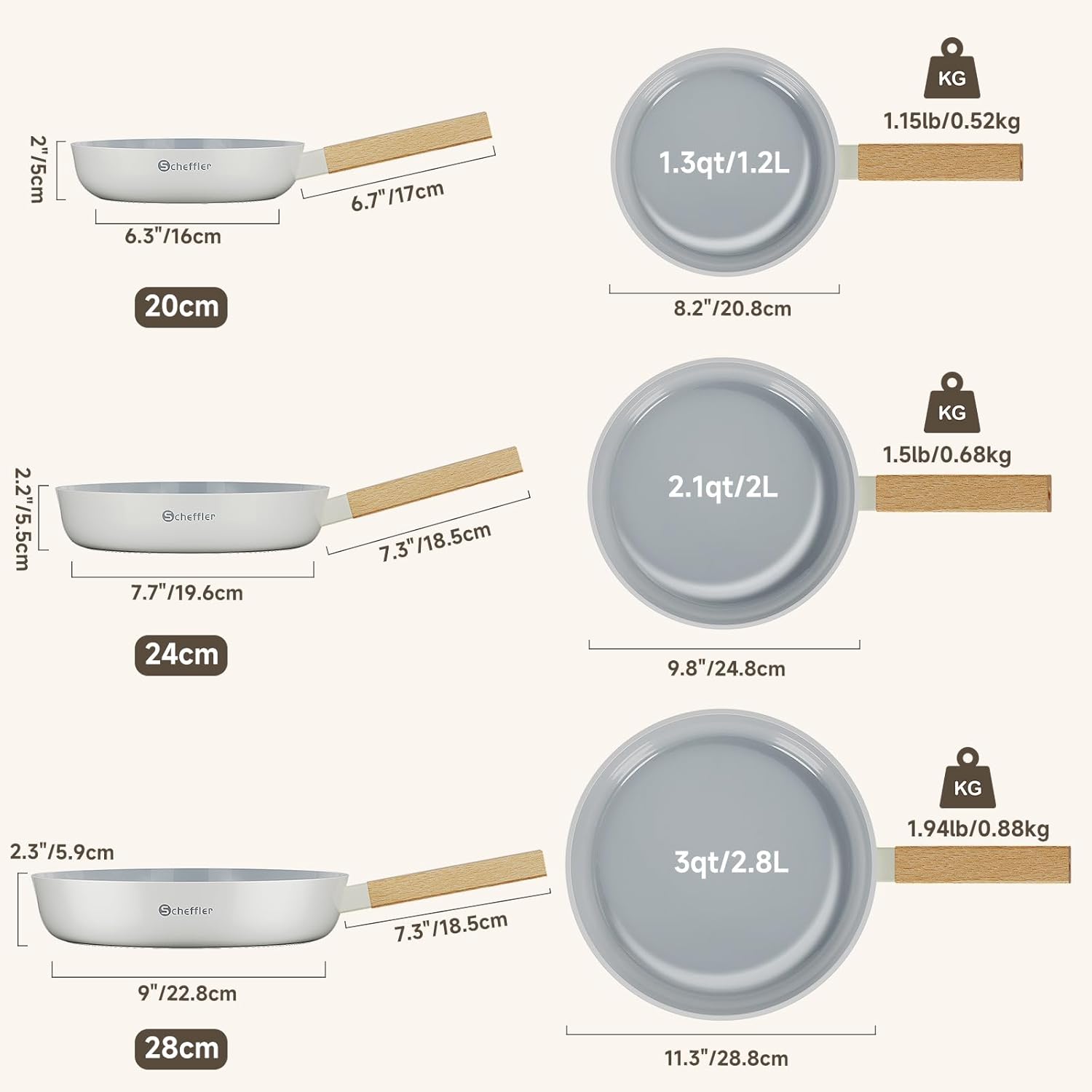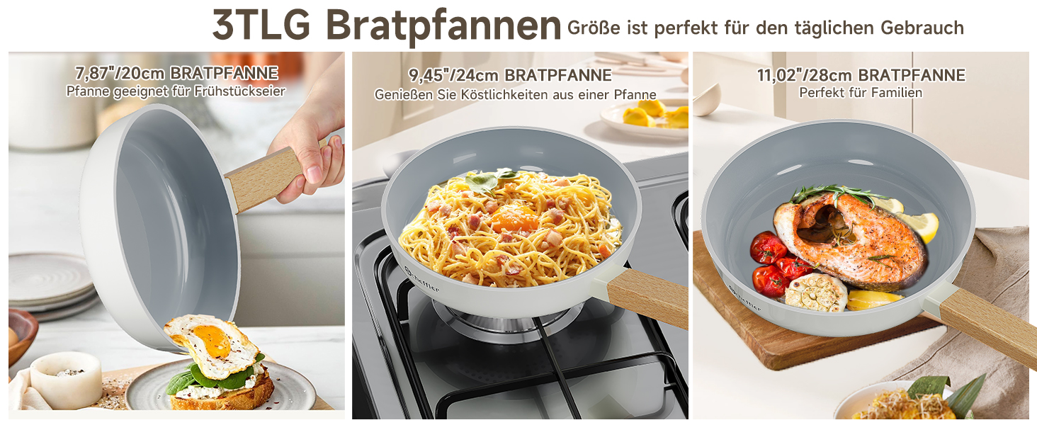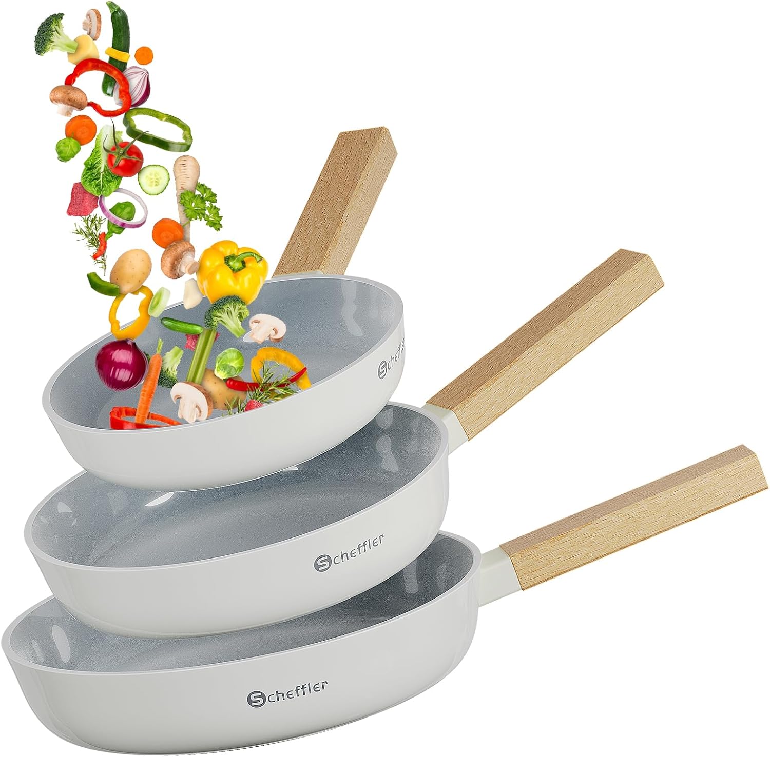 Scheffler Pfannenset Pfanne 20/24/28cm,Bratpfanne Pfannen,beschichtete Pfanne,Pfanne Induktion mit Antihaft-Beschichtung,geeignet für alle Herdarten(Weiß-1)