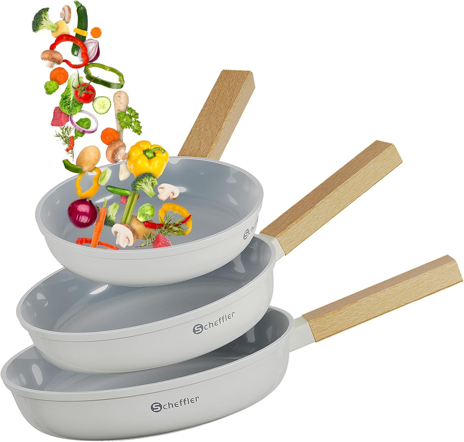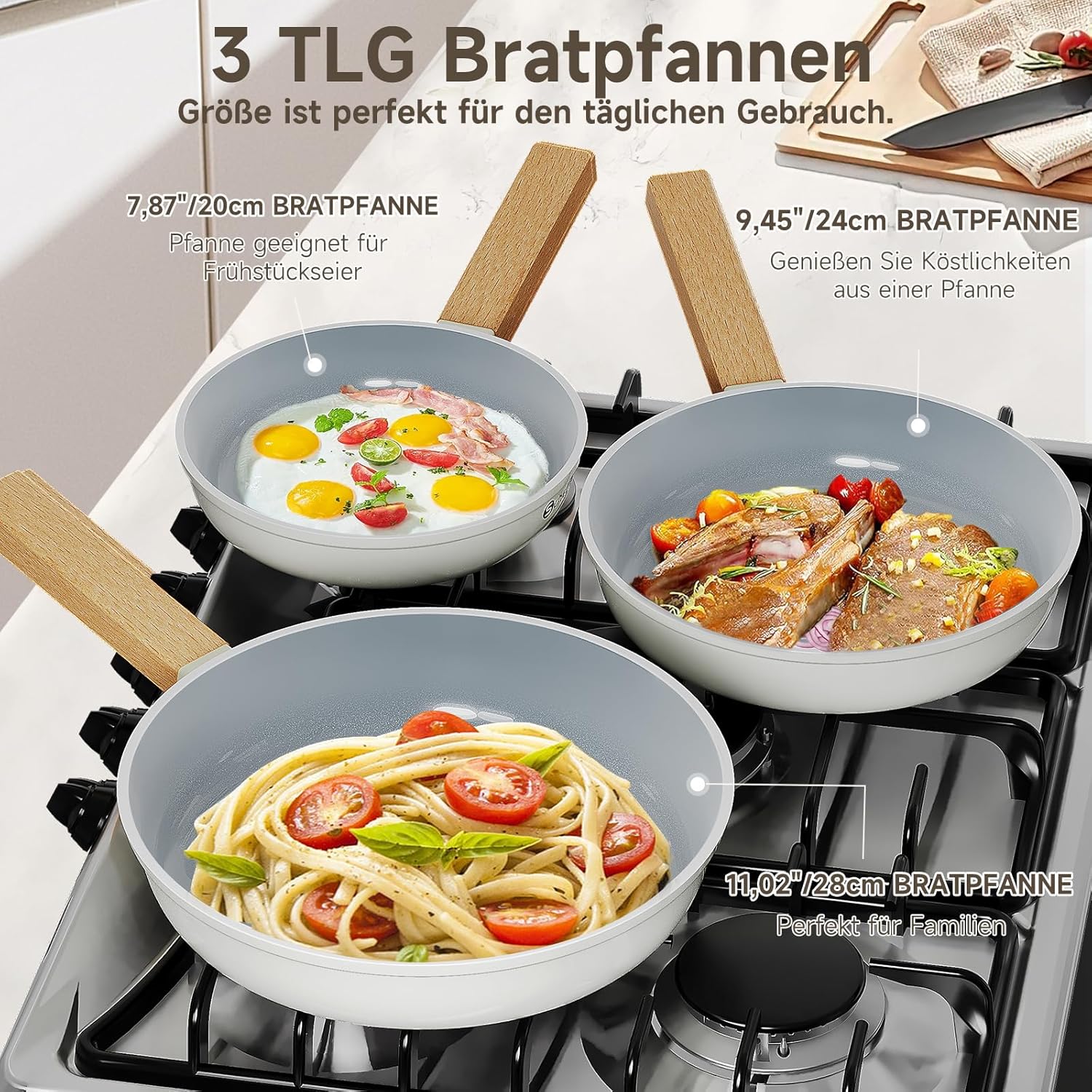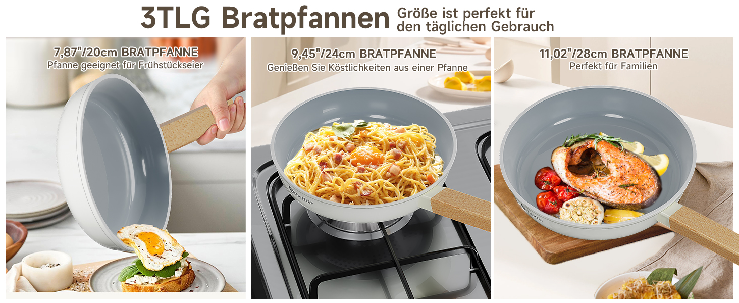 Scheffler Pfannenset Pfanne 20/24/28cm,Bratpfanne Pfannen,beschichtete Pfanne,Pfanne Induktion mit Antihaft-Beschichtung,geeignet für alle Herdarten(Weiß-2)