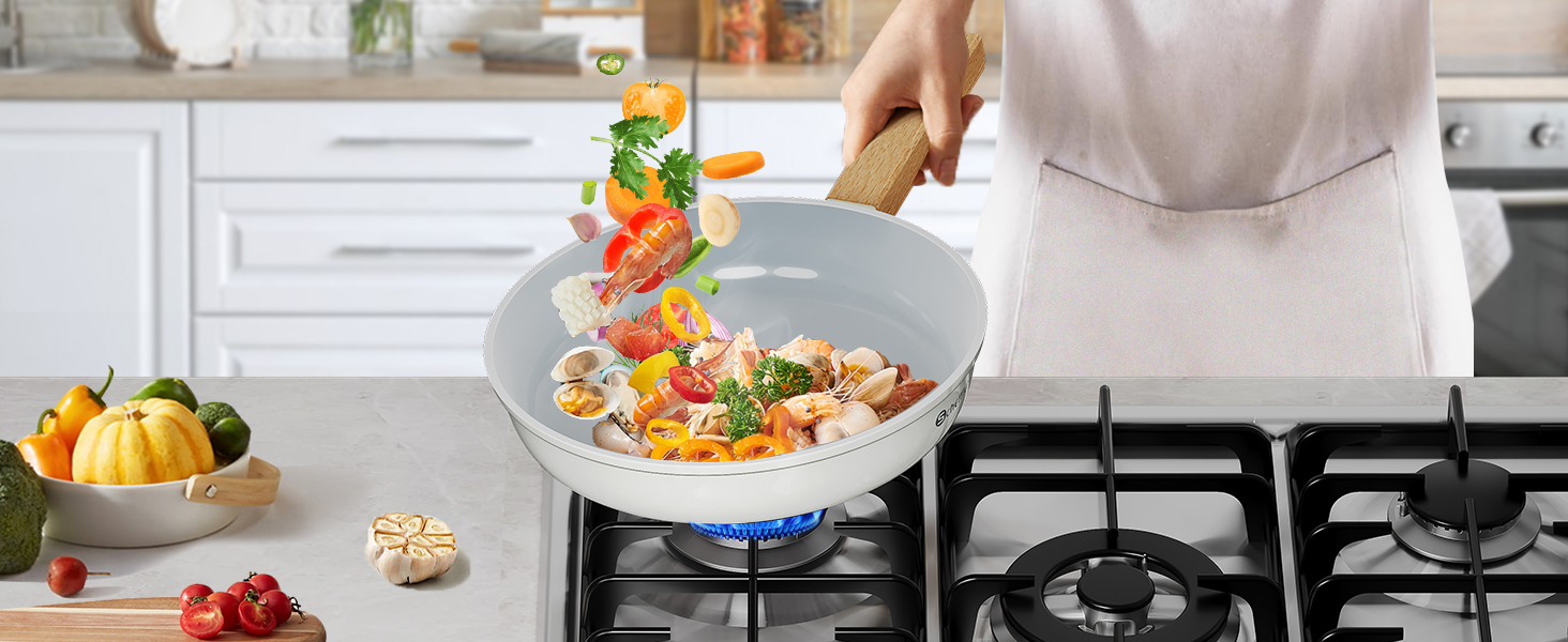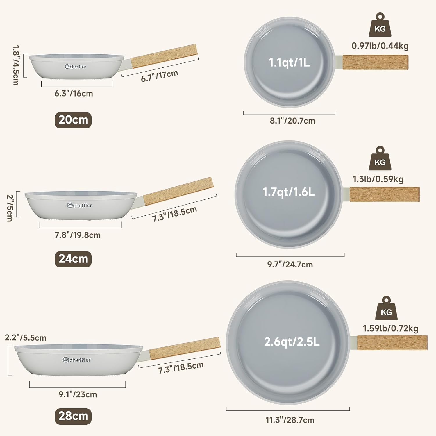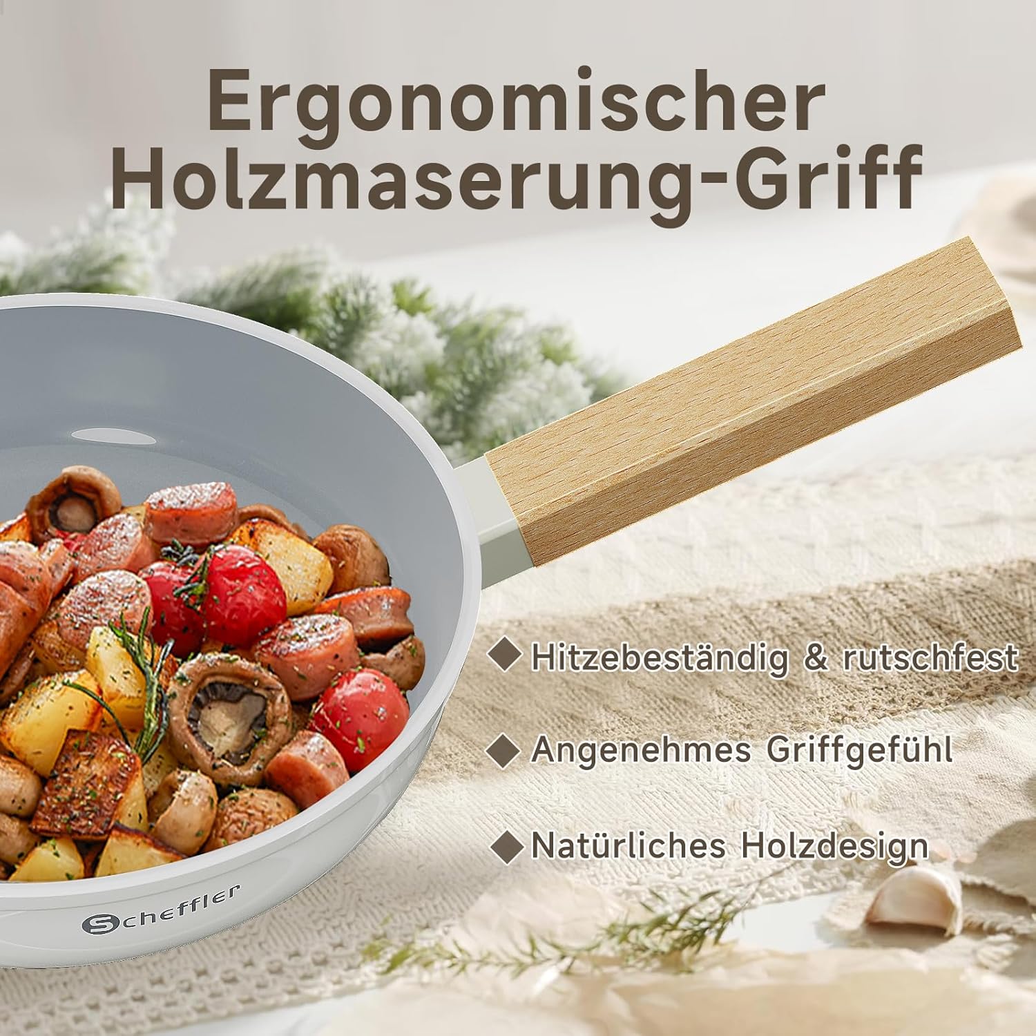 Scheffler Pfannenset Pfanne 20/24/28cm,Bratpfanne Pfannen,beschichtete Pfanne,Pfanne Induktion mit Antihaft-Beschichtung,geeignet für alle Herdarten(Weiß-2)