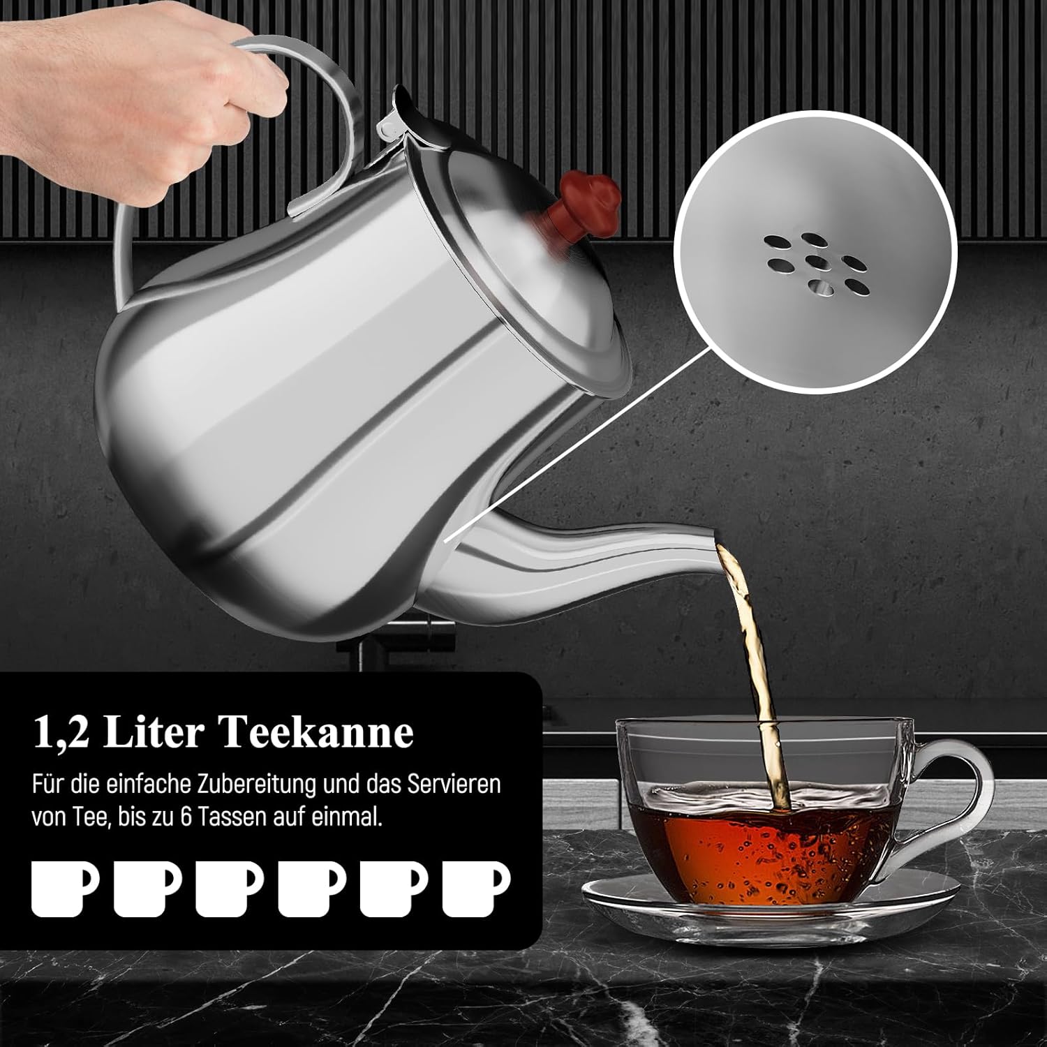 GROSSE KAPAZITÄT DES ELEKTRISCHEN TEEKOCHERS: Ausgestattet mit einem 2.5-Liter-Wasserbehälter und einer 1,2-Liter-Edelstahl-Teekanne für die Zubereitung von Tee, zum Erhitzen und Aufbewahren von Wasser. Hochwertiger 304-Edelstahl ist langlebig, kratzfest und gut für die menschliche Gesundheit. Einfach zu bedienen, präzise Dosierung ist möglich durch die Anti-Verbrühung Ablasshahn. Das große Fassungsvermögen erfüllt die Trinkbedürfnisse aller Gäste.