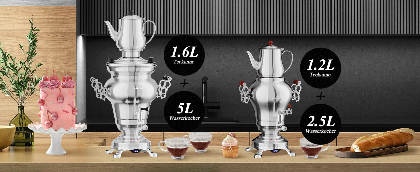 VIELSEITIGER EINSATZ: Im Gegensatz zu herkömmlichen Teekochern ist unser elektrischer Teekocher für russische Teekenner konzipiert, um Ihnen das beste Teetrinkerlebnis zu bieten. Hochwertiges Edelstahlgehäuse mit bräunlich roten oder schwarzen Akzenten, das elegante Design ist eine Augenweide. Ideal für große Teepartys und Familienfeiern. Perfekt für den täglichen Gebrauch und die gewerbliche Nutzung.