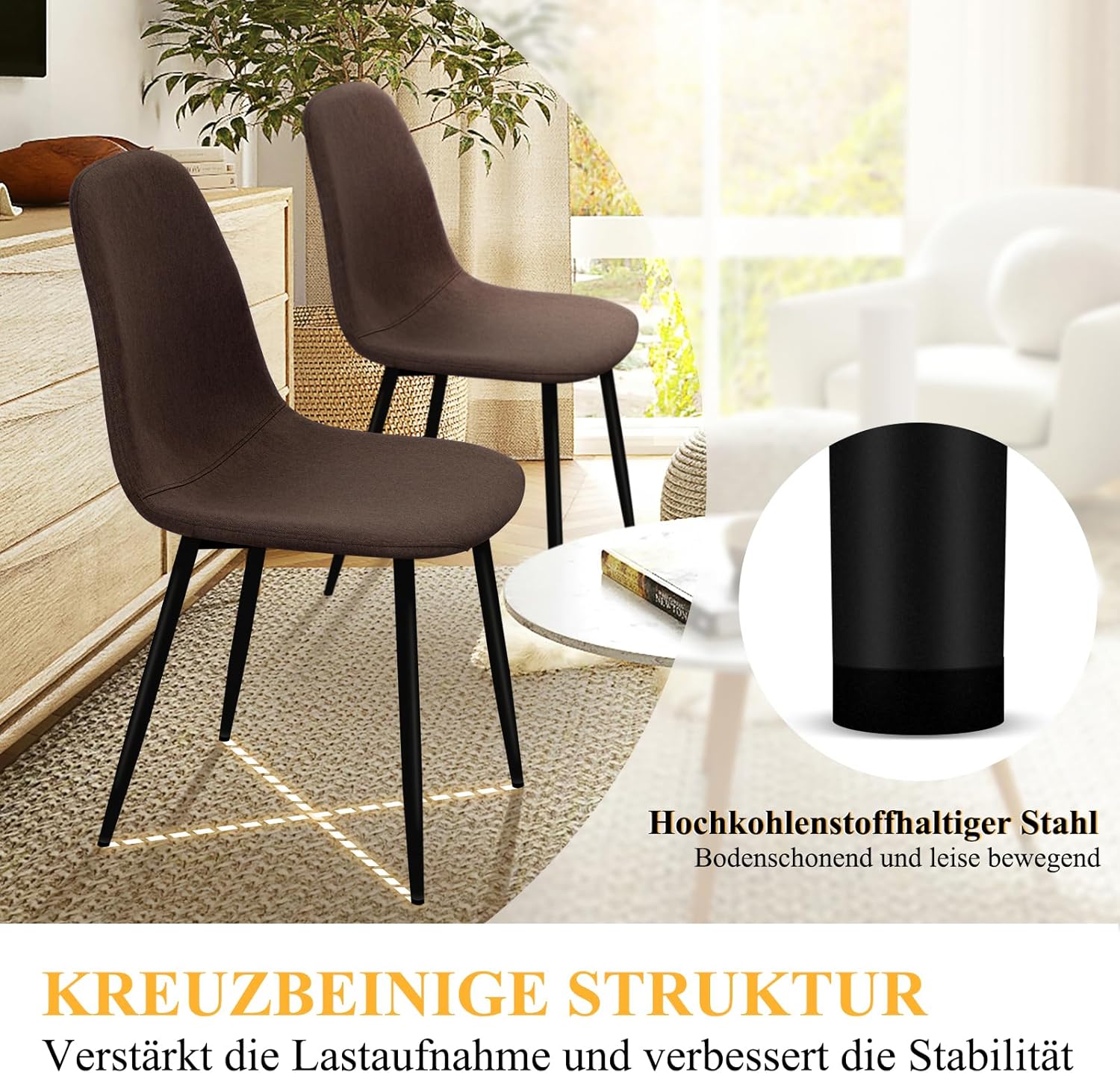 HOMELUX Esszimmerstühle 4er Set, Stühle Esszimmer, Polsterstuhl,Küchenstuhl mit Rückenlehne & Metallbeinen, Design Stuhl für Schlafzimmer Wohnzimmer, Braun(HL-58BR)