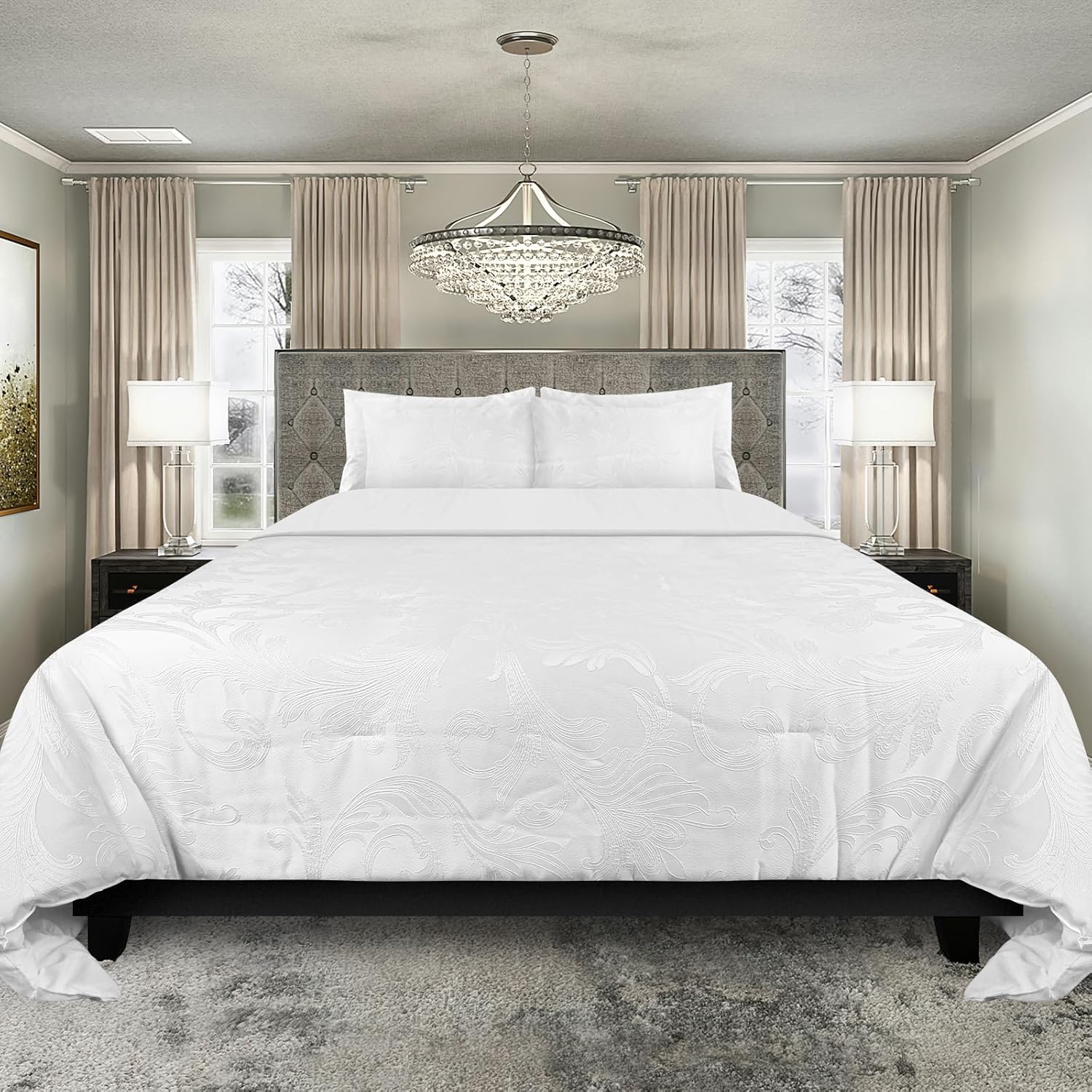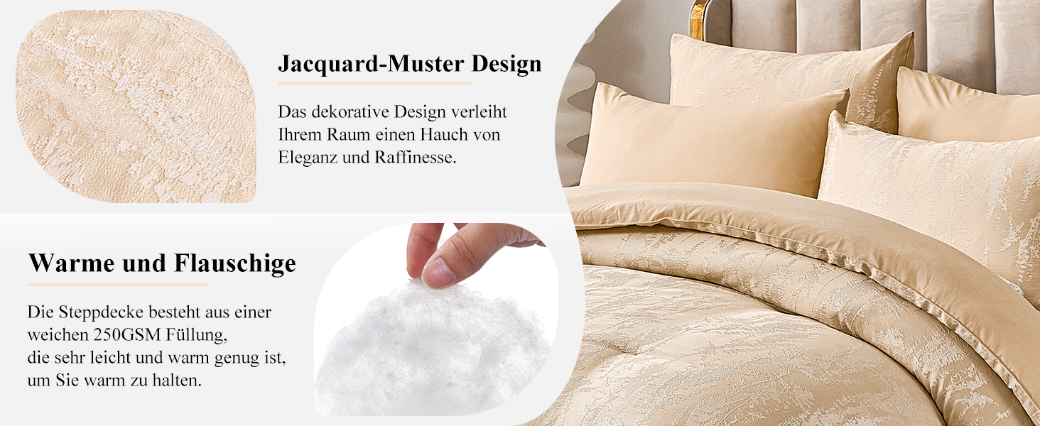 HOMELUX Bettwäsche 180x200 6teilig, 220x240 Steppdecke mit 4 Kissenbezüge 50x70 cm, Bettwäsche Set mit Pailletten-Akzente, Aus Mikrofaser Bügelfrei & Knitterfrei,HL-6CSJ650