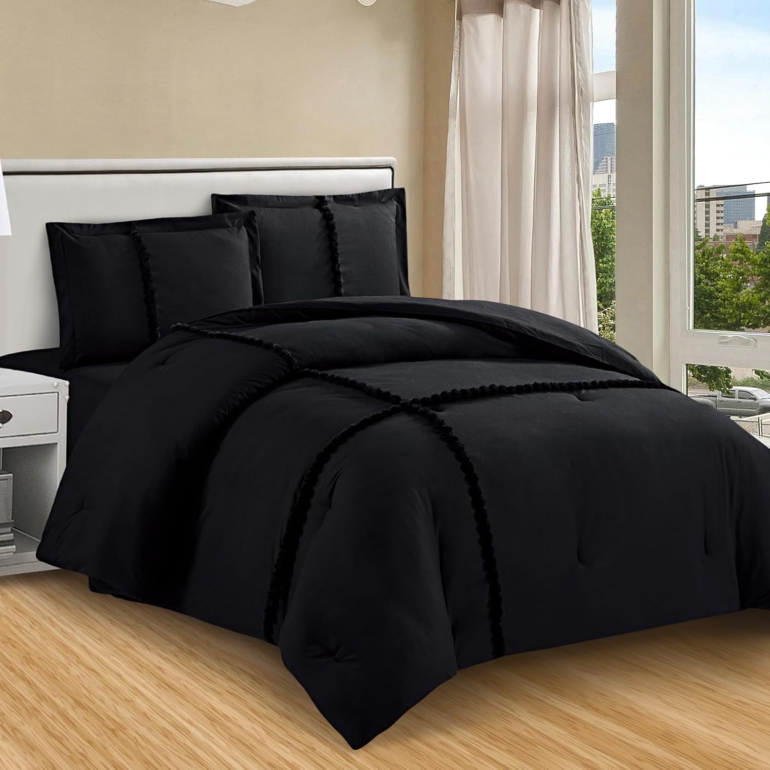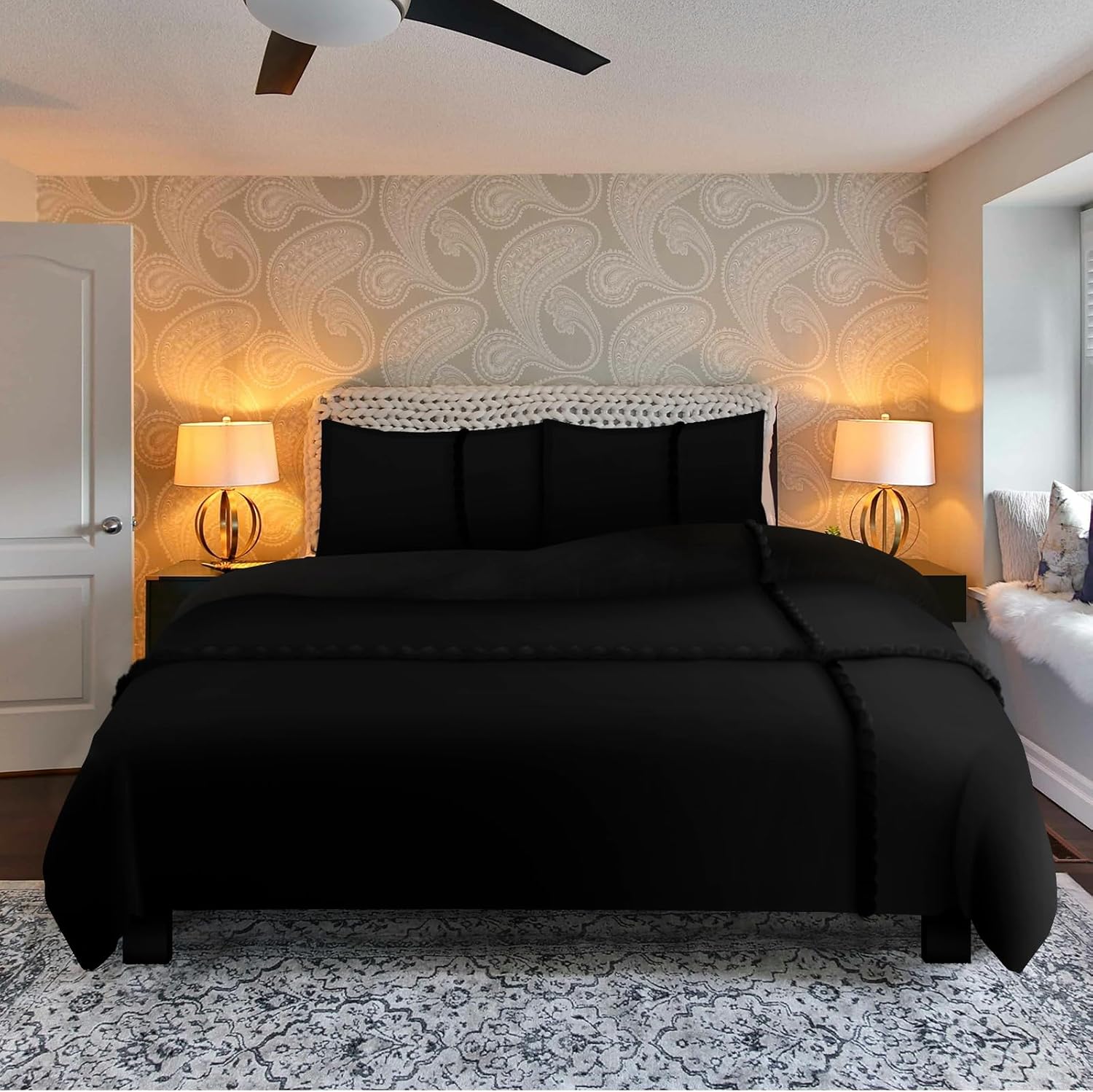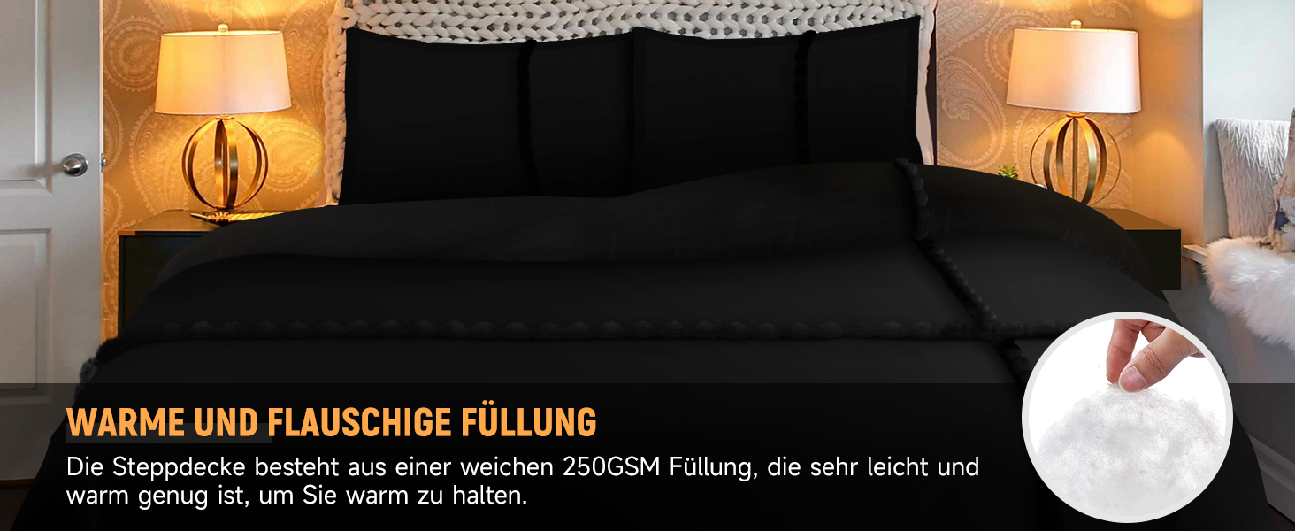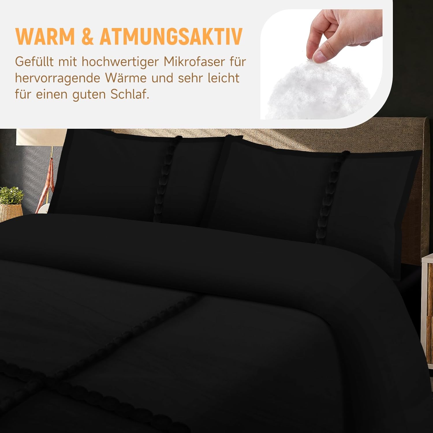 HOMELUX Bettwäsche 180x200 4teilig Schwarz, 240x260 Steppdecke mit 2 Kissenbezüge 50x70 cm, Bettwäsche Set mit Haarballen-Akzente, Aus Mikrofaser Bügelfrei & Knitterfrei(HL-4PCS08BS)