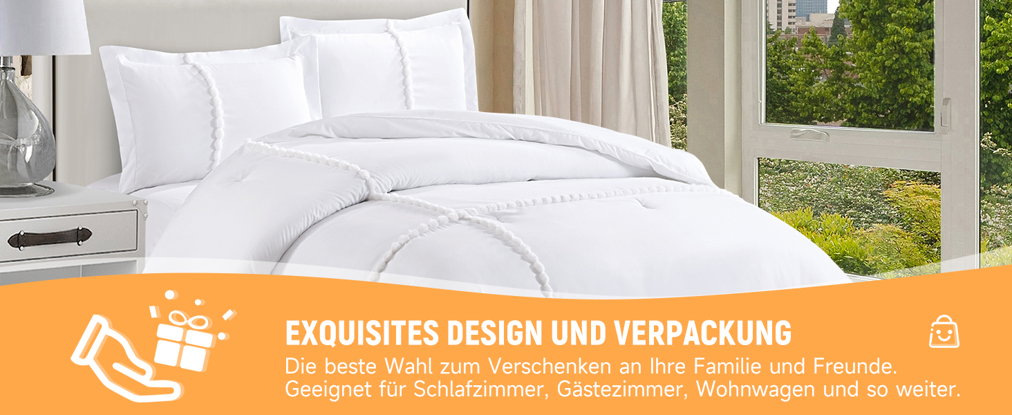 KOMPLETTES BETTWÄSCHESET: Dieses 4-teiliges Bettwäscheset enthält alles, was Sie für ein kuscheliges Bett brauchen: 1 x 250GSM Bettdecke (240x260cm), 2 x Kissenbezüge (50x70cm+ 5cm), 1 x Laken (180x200 + 30cm). Sie eignen sich perfekt als Weihnachtsgeschenk. Wenn Sie irgendwelche Fragen zu unseren Produkten haben, kontaktieren Sie uns bitte. Wir werden das Problem so schnell wie möglich für Sie lösen.