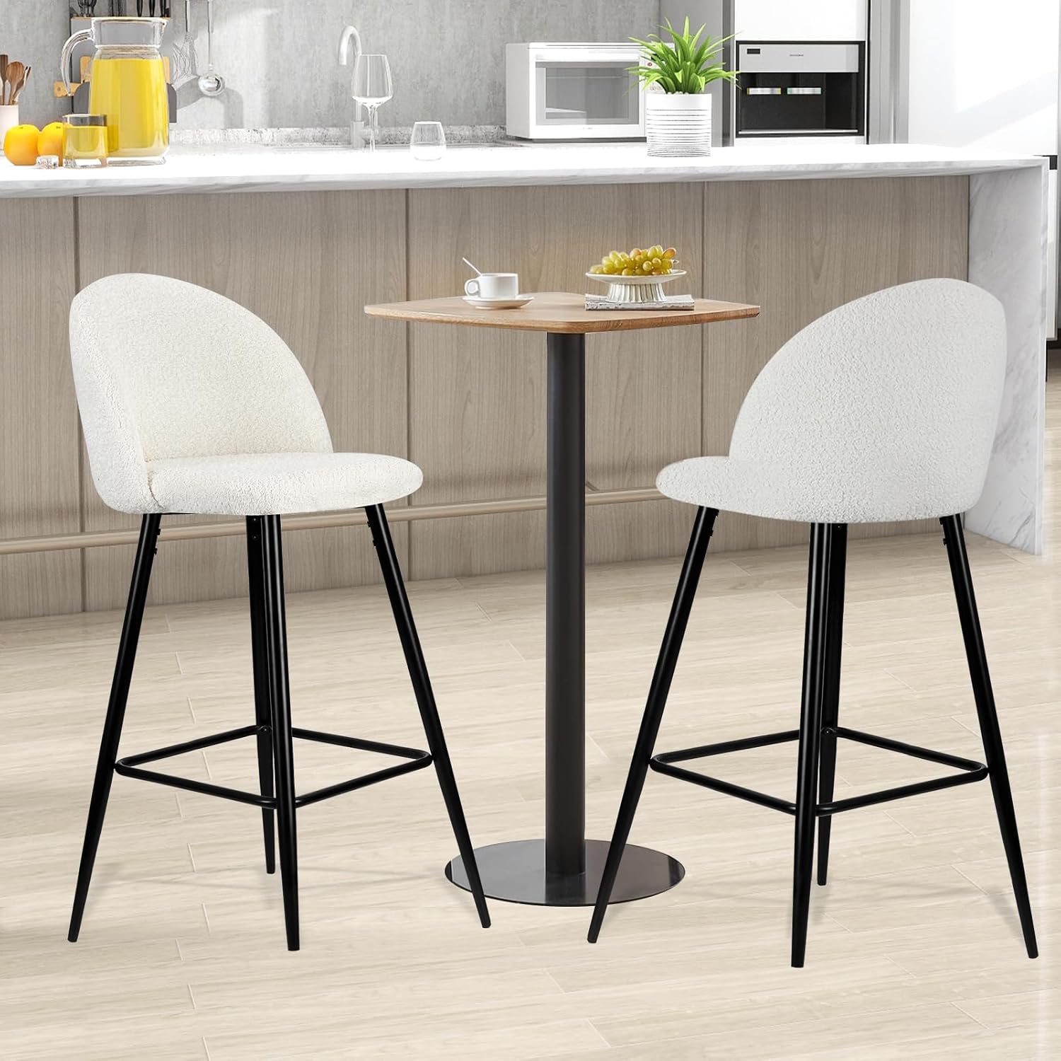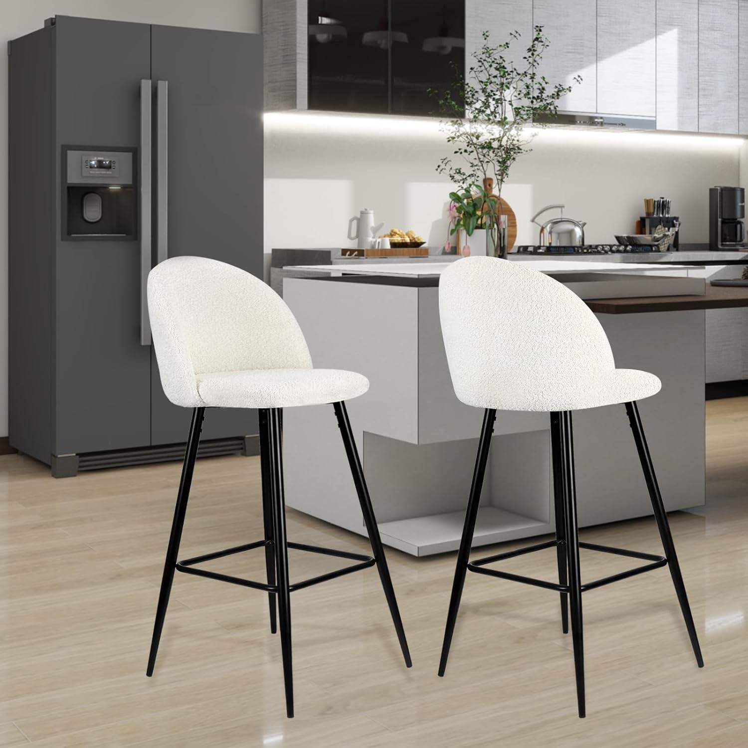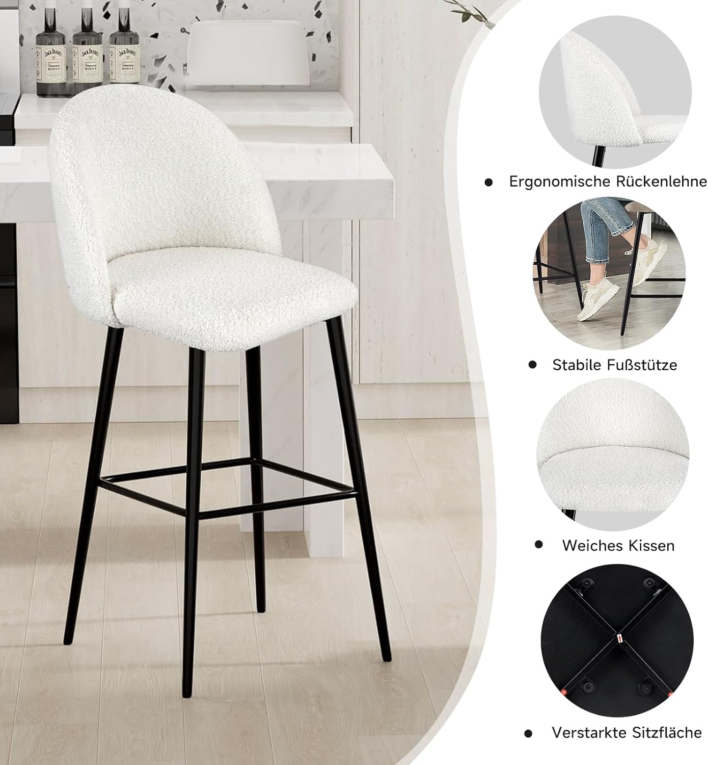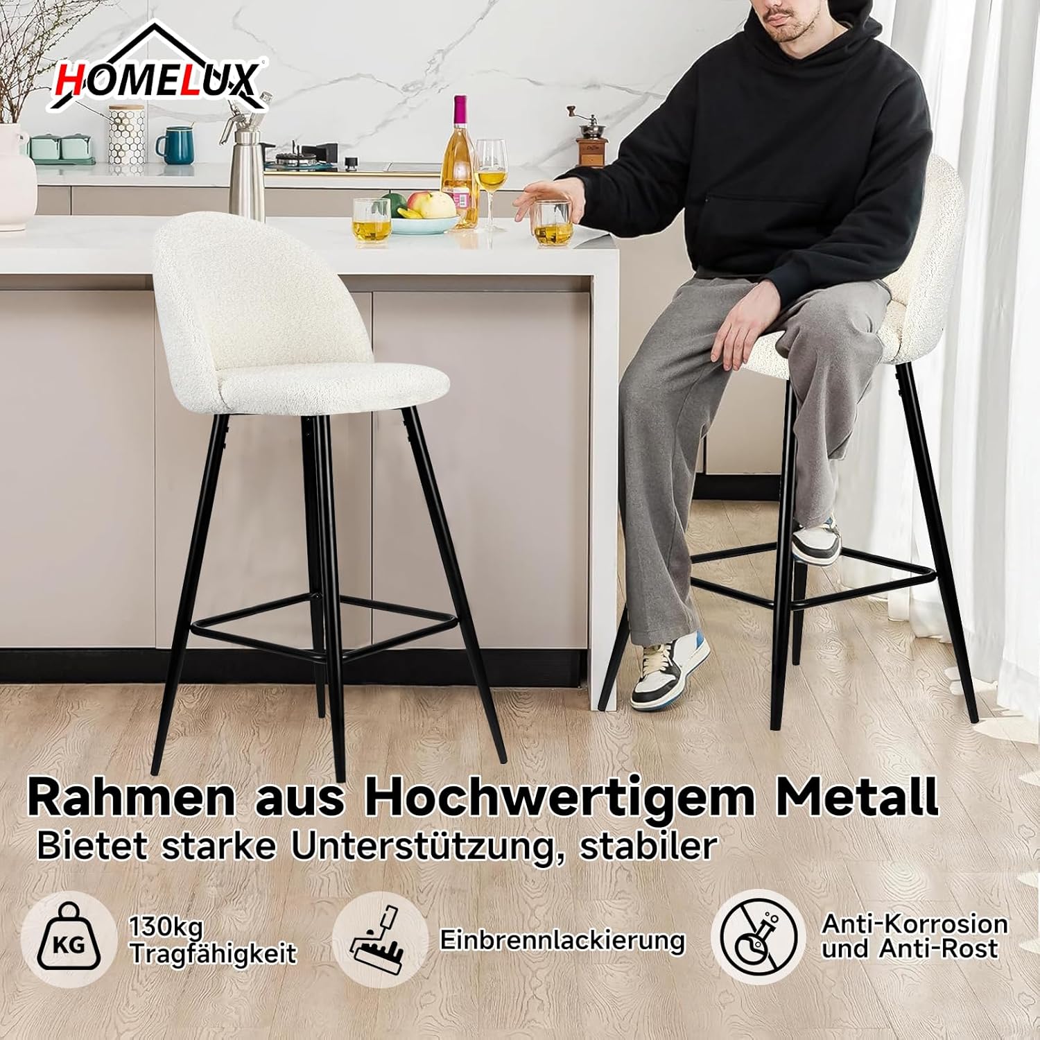 HOMELUX Barhocker 2er Set, Weiß Barstuhl Küchenstühle mit Rückenlehne und Fußstütze, Robuster Metallrahmen, gemütliche Stoff Weiche Sitzfläche, Thekenstü für Küche/Hausbar, Sitzhöhe 73 cm(HL-918WT)