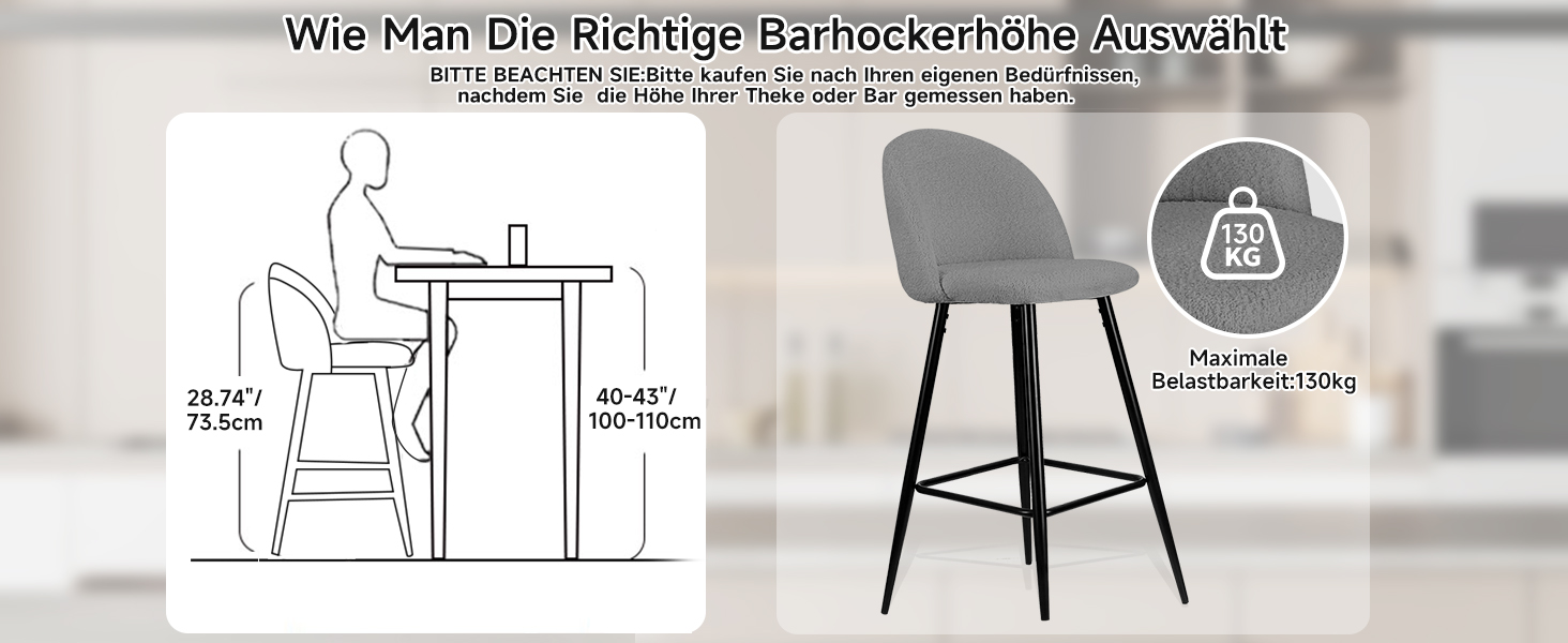 Stark, Stabil & Sicher: Der Rahmen des Tresenhocker ist aus stabilem und hochwertigem Metall gefertigt, das sich nicht leicht verformt. Die Gewichtskapazität beträgt bis zu 130kg, was für die meisten Menschen mit einem hohen Gewicht geeignet ist. Die trapezförmige Fußstruktur sorgt für eine stärkere Unterstützung und gewährleistet Stabilität für langes Sitzen. Der Metallrahmen ist mit einer schwarzen Pulverbeschichtung versehen, flecken- und rostbeständig, korrosionsbeständig.