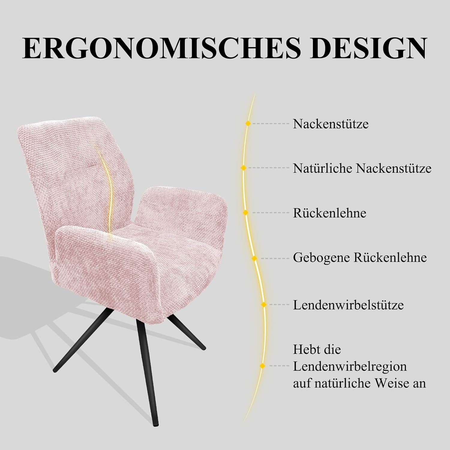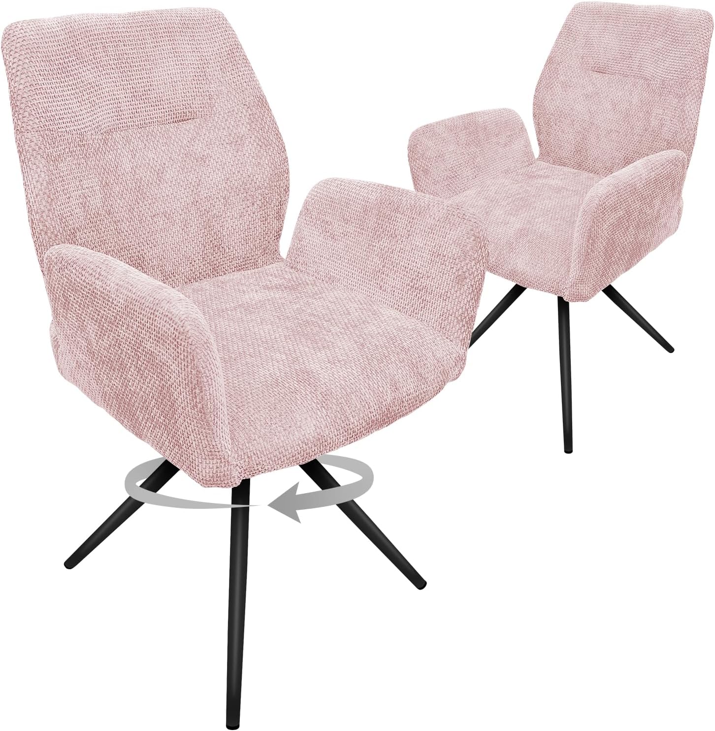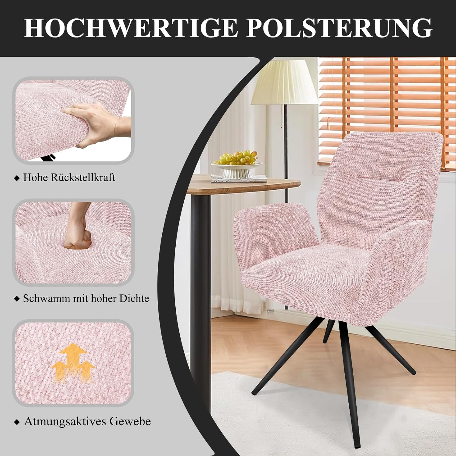HOMELUX Esszimmerstühle Drehbar 2er Set, Stühle Esszimmer, Küchenstuhl, bis 110 kg Belastbar, Polsterstuhl mit Metallbeine und Rückenlehne für Esszimmer Küche, Rosa(HL-802410)