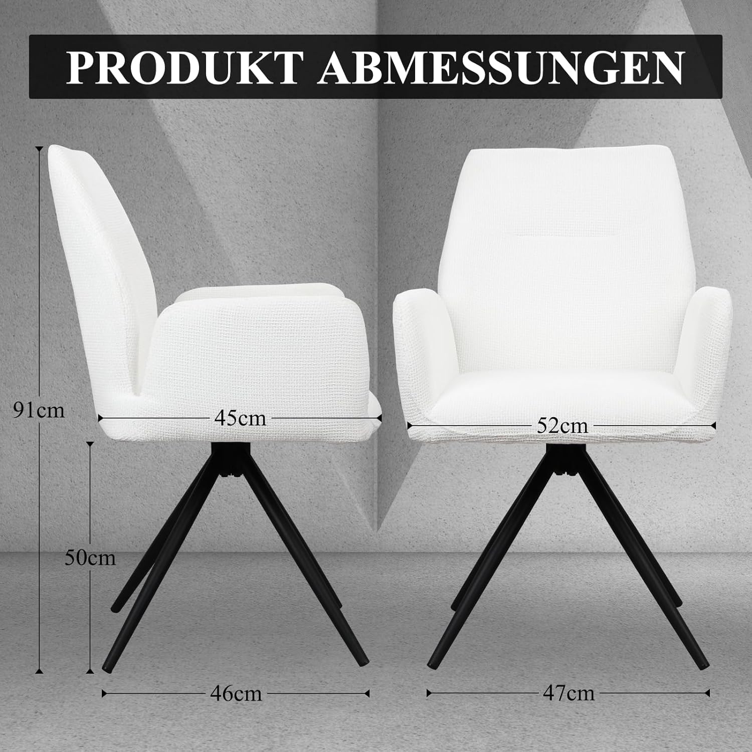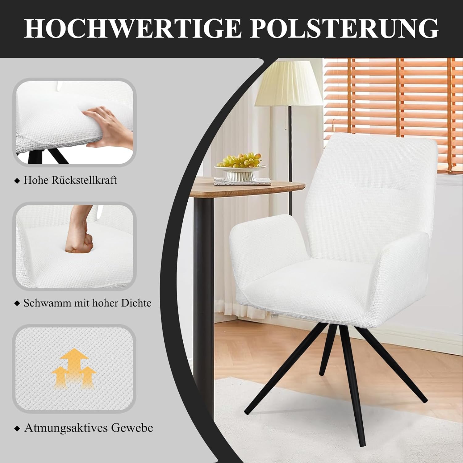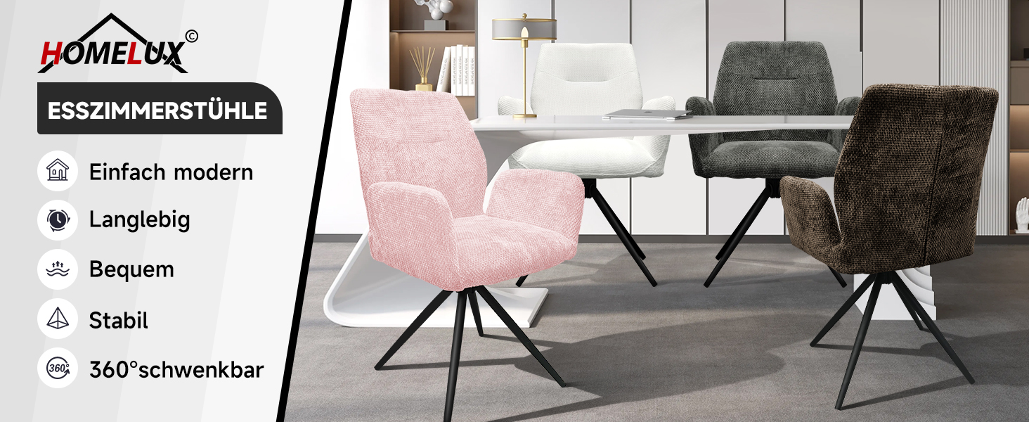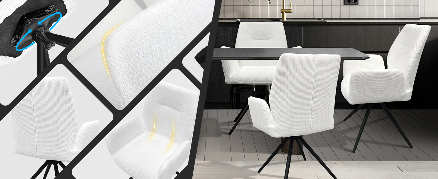 HOMELUX Esszimmerstühle Drehbar 2er Set, Stühle Esszimmer, Küchenstuhl, bis 110 kg Belastbar, Polsterstuhl mit Metallbeine und Rückenlehne für Esszimmer Küche, Weiß(HL-802411)