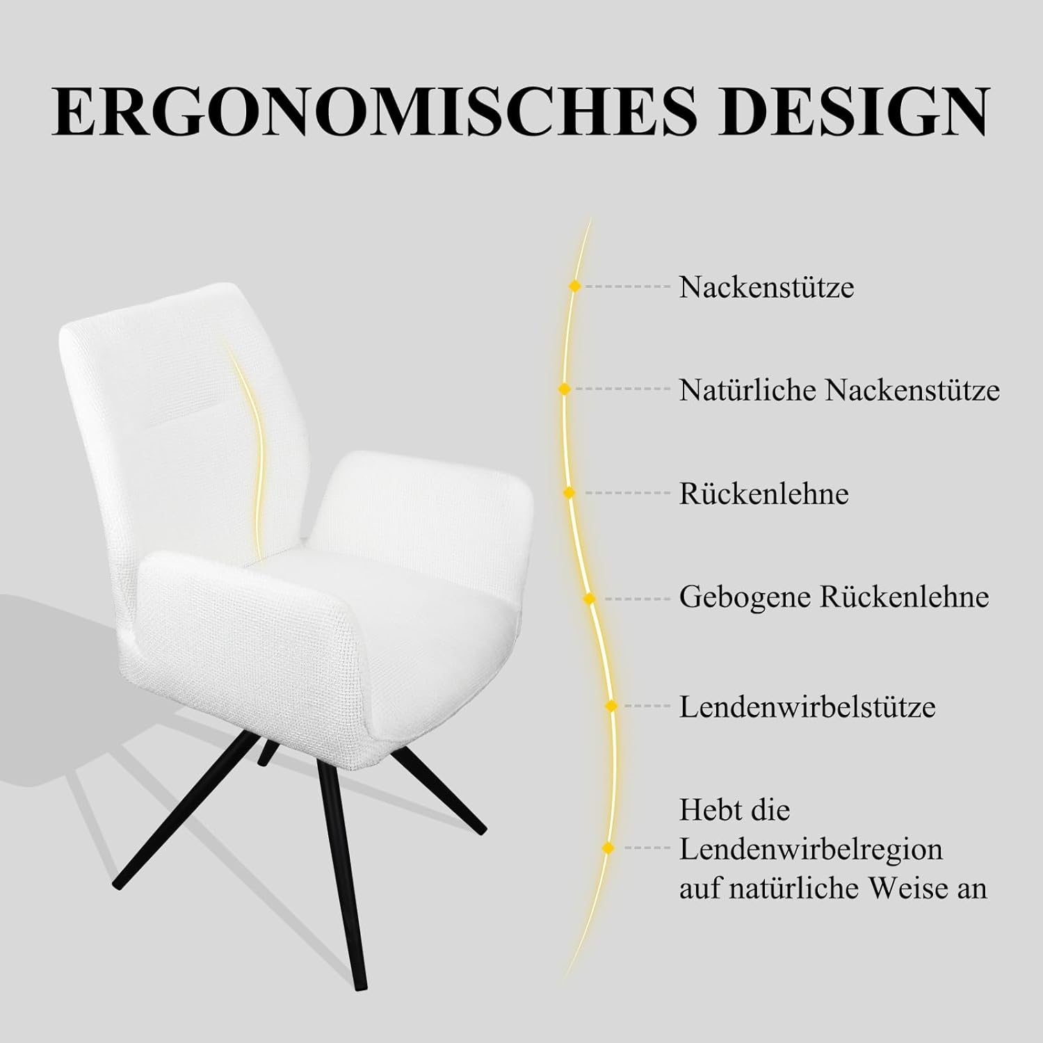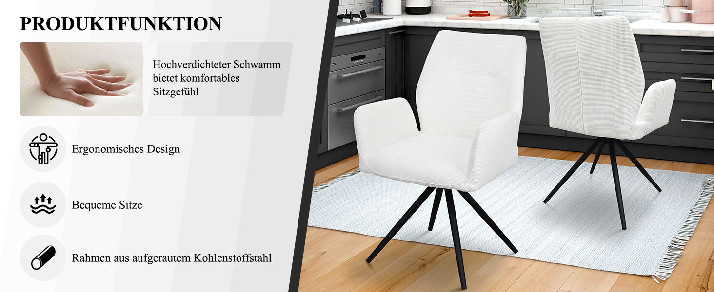 Ergonomisches Rückenlehnendesign: Der Esszimmerstuhl verfügt über ein ergonomisches Design, passt sich den Linien des menschlichen Körpers an und baut Ihren Stress perfekt ab. Sitz und Rückenlehne des Küchenstuhls sind mit hochdichtem Schaumstoff und Stoff gefüllt, was atmungsaktiver und bequemer ist.