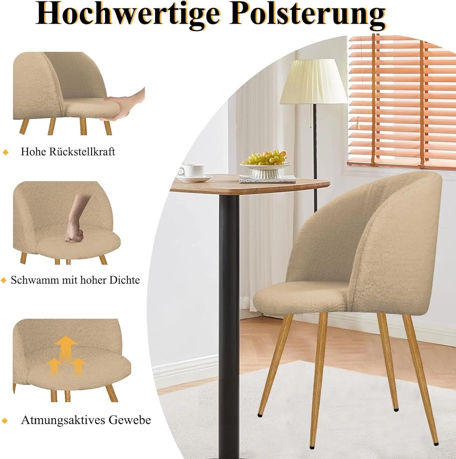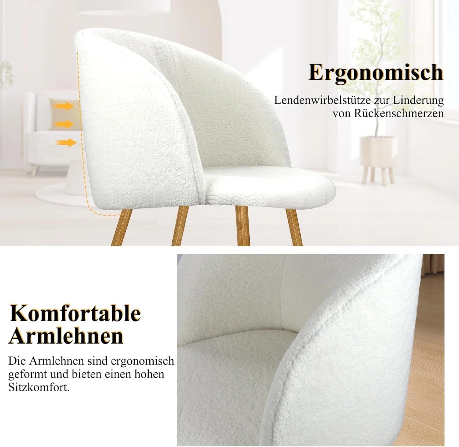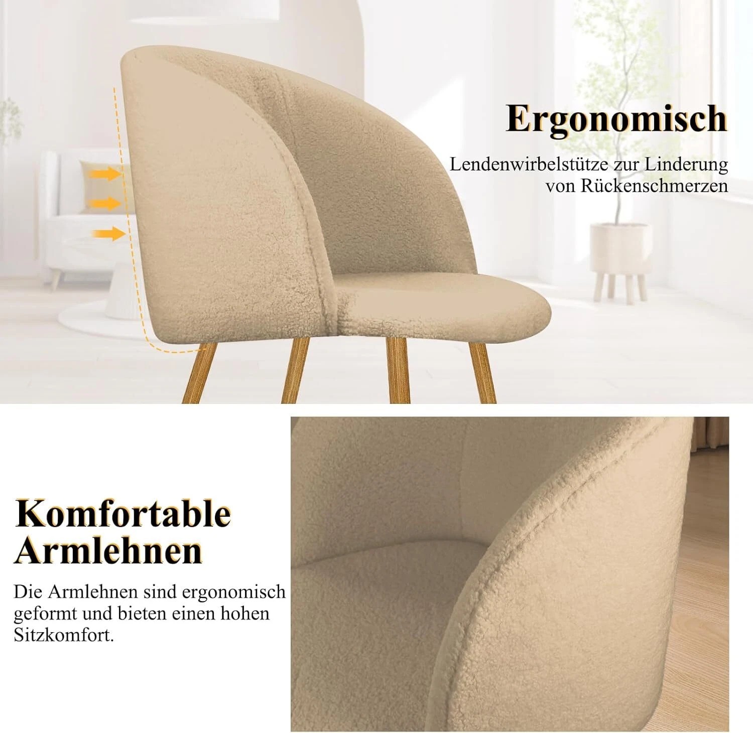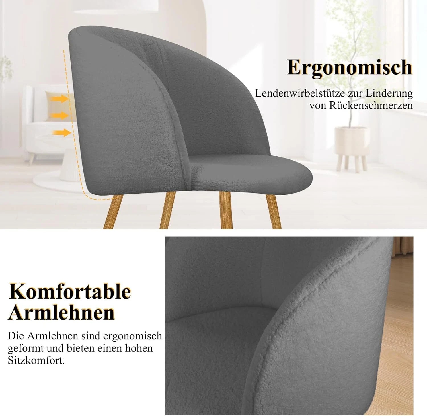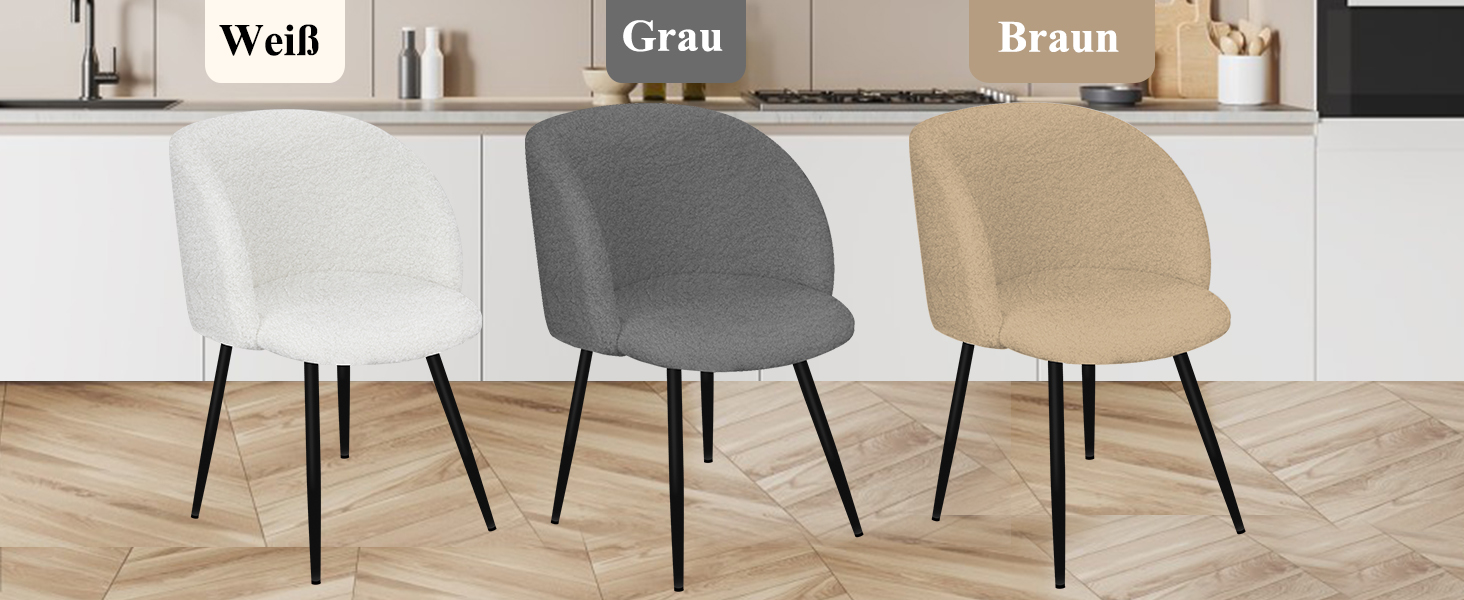 2er Set Esszimmerstühle Wohnzimmerstuhl Metallbeine Polsterstühle mit Armlehnen(Grau / Weiß / Braun)