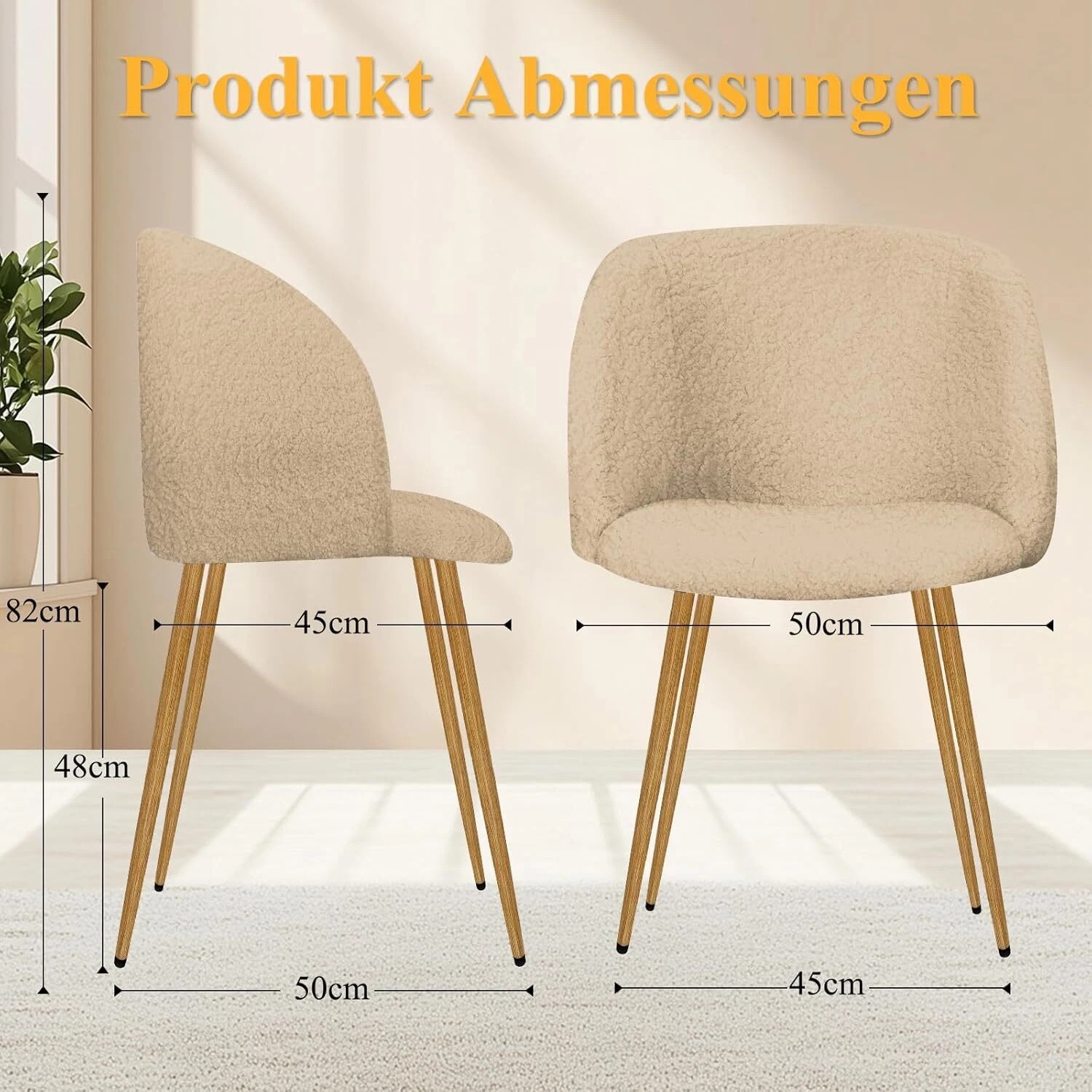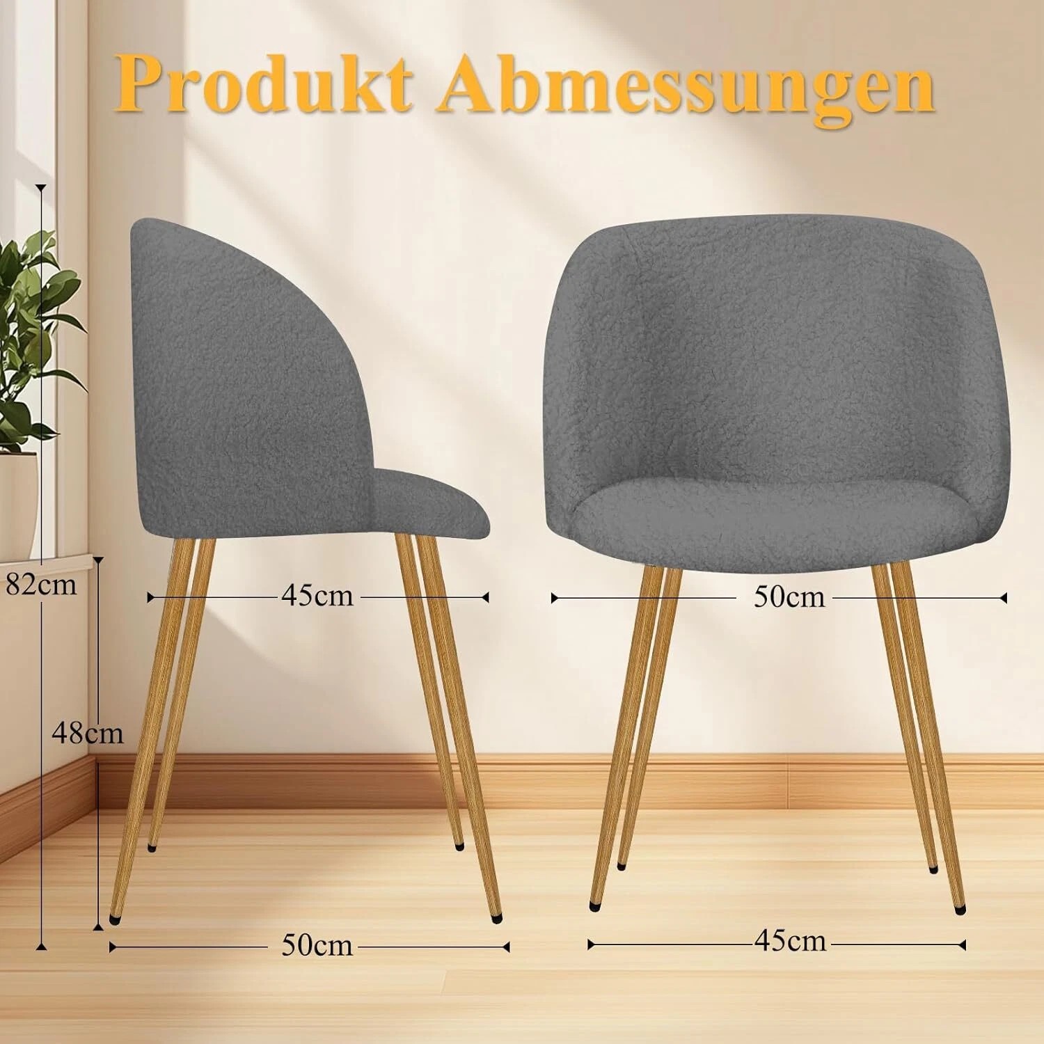 Gesamtmaße: 45 x 39 x 86 cm (L x B x H) Maße der Sitzfläche: 40 x 44 cm (B x T) Höhe der Rückenlehne: 40 cm Sitzhöhe: 46 cm