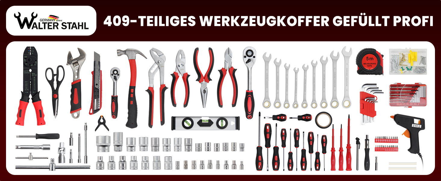 Unser Walter Stahl Werkzeugkoffer ist universell einsetzbar und eignet sich für Heimwerker, Handwerker, Bastler und Profis gleichermaßen. Egal, ob Sie Reparaturen in Ihrem Zuhause durchführen oder ein umfangreiches Bauprojekt angehen - dieser Koffer hat alles, was Sie brauchen.