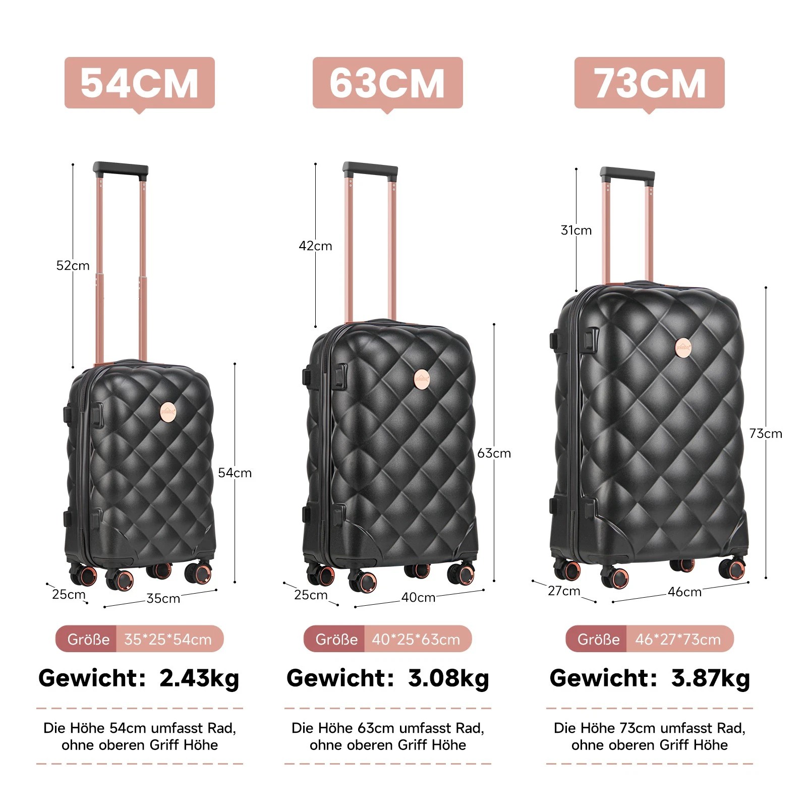 Das 3-teilige Kofferset lässt sich ganz nach Ihren Bedürfnissen und der Dauer Ihrer Reise frei kombinieren und eignet sich somit ideal für Reisen, Wochenendausflüge und kurze Geschäftsreisen. Das Kofferset kann platzsparend gestapelt und zusammen aufbewahrt werden.