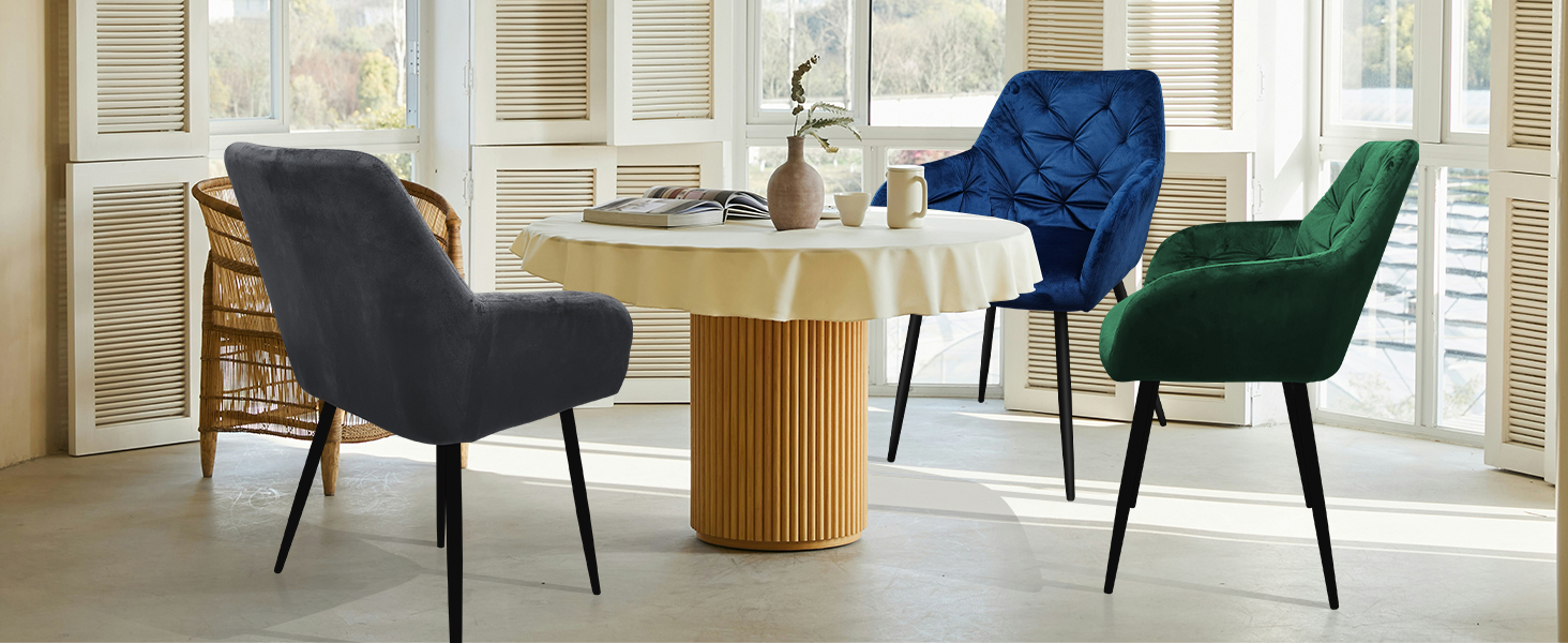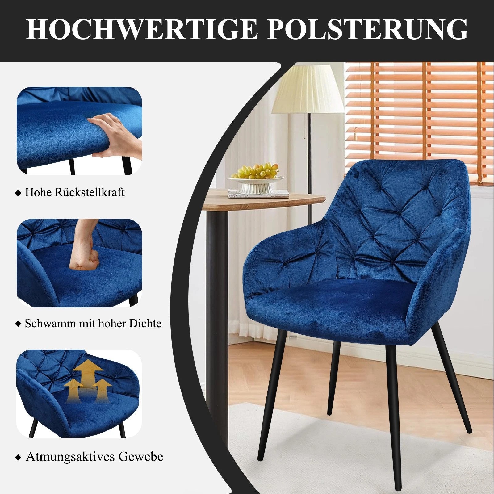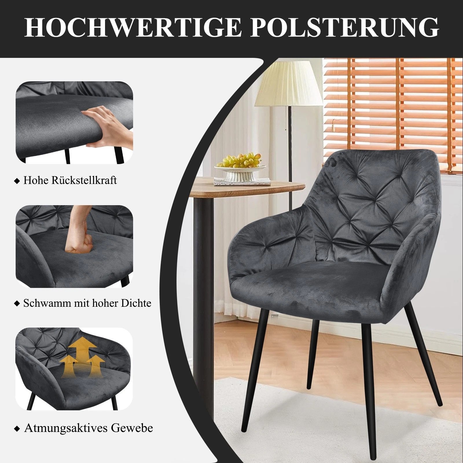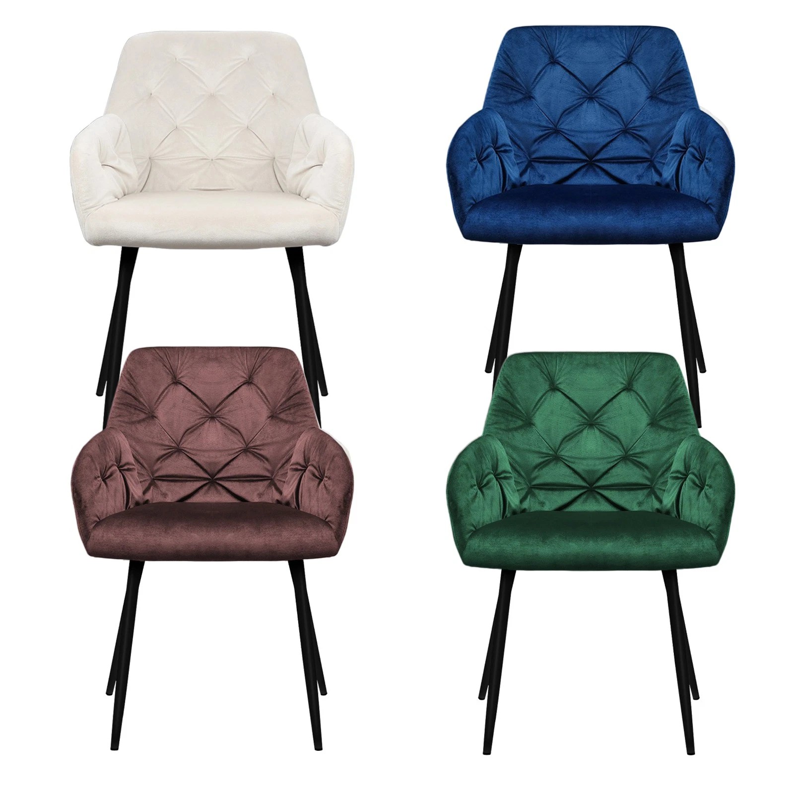 Klassisches Rautenmuster in edlem Veloursstoff – passt zu jedem Einrichtungsstil. Ideal als Küchenstuhl, Bürostuhl oder gemütlicher Lesesessel für Wohnzimmer und Schlafzimmer.