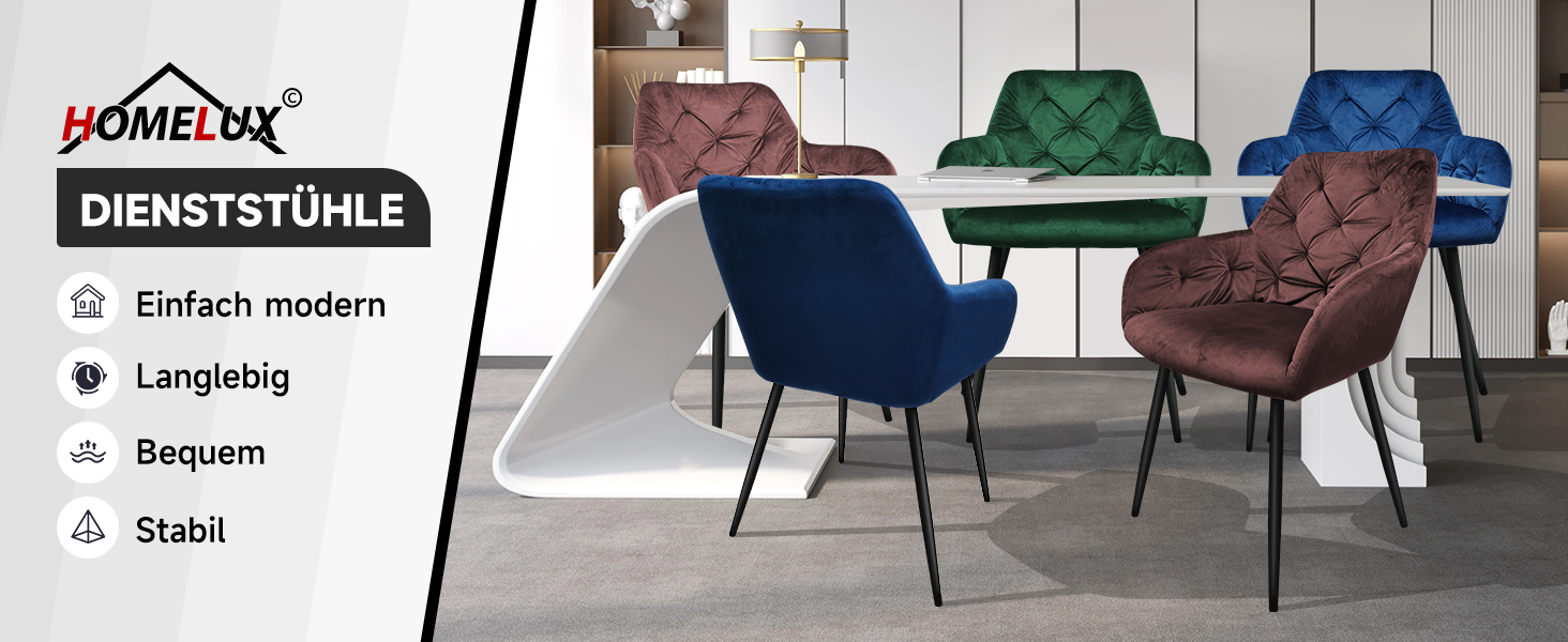 Die Homelux-Esszimmerstühle zeichnen sich durch ein modernes Design und eine perfekte Form aus, die für jede Umgebung in Ihrem Zuhause geeignet ist. Die Stühle können im Esszimmer, in der Küche, im Wohnzimmer, im Schlafzimmer, als Tee-/Lese-Eckstuhl oder als Schreibtischstuhl verwendet werden.
