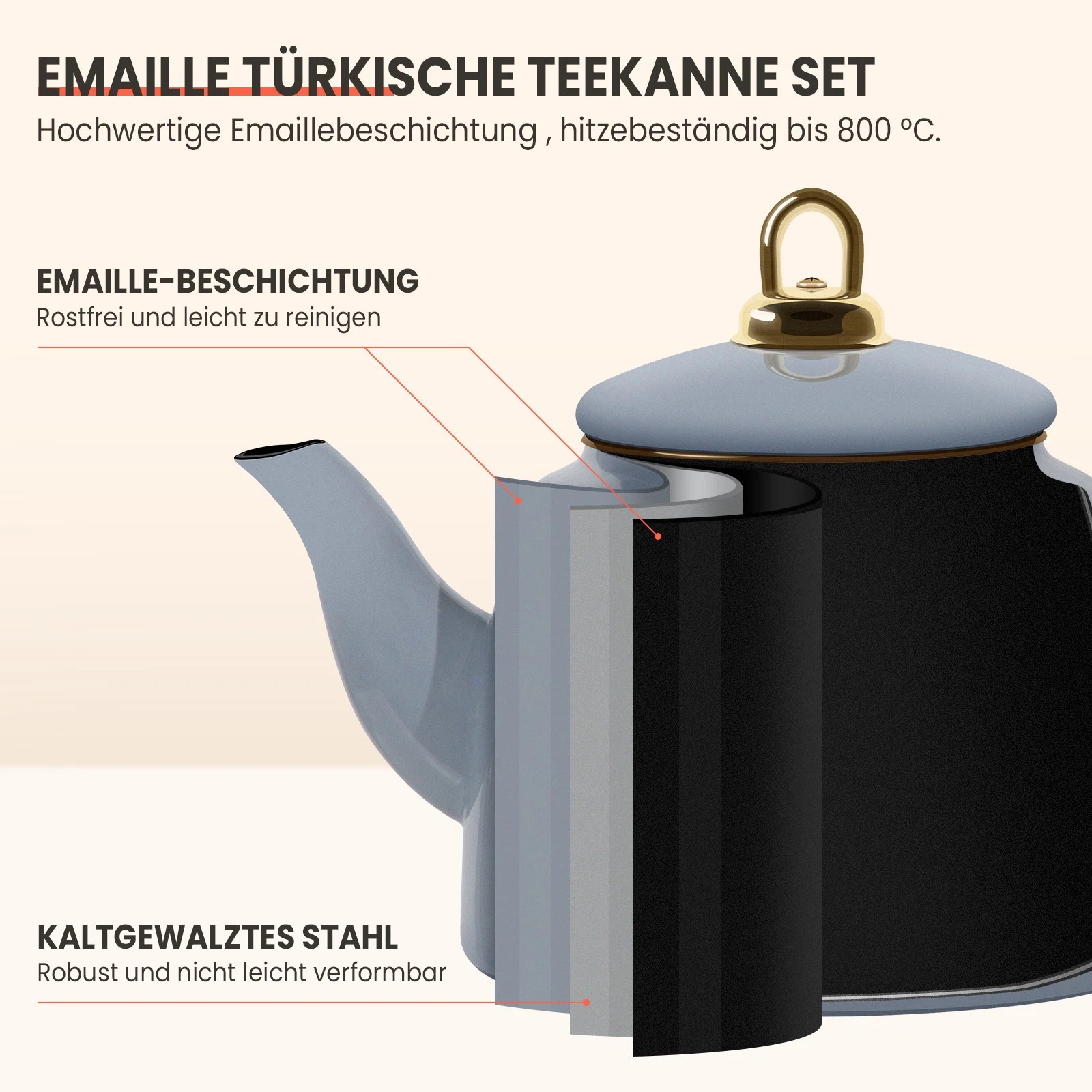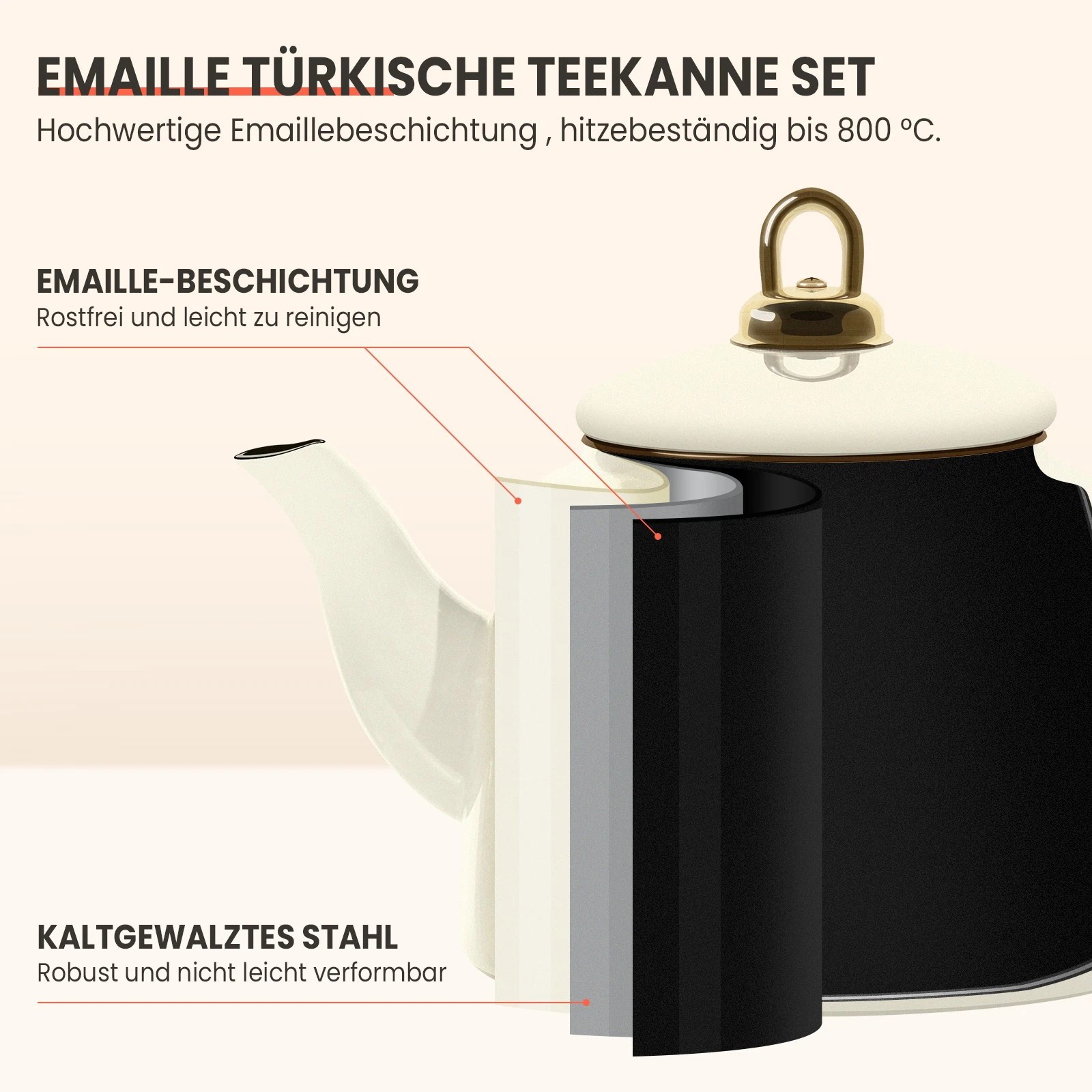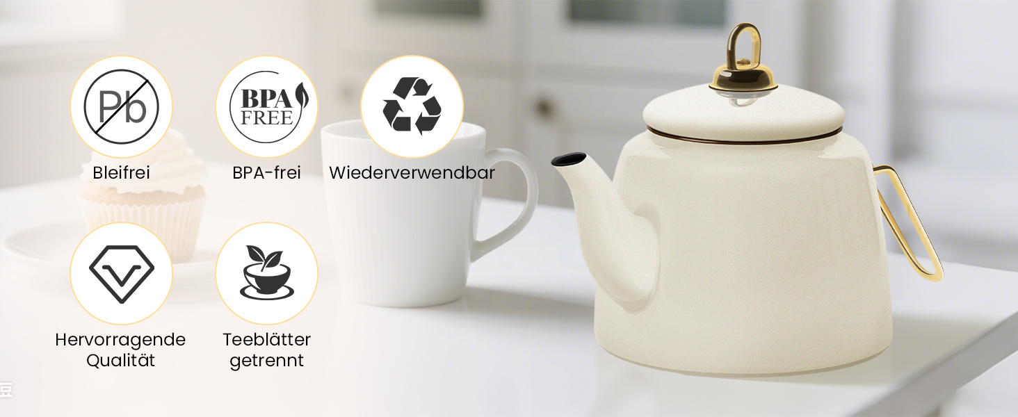 Dieses Set enthält eine Teekanne (1 Liter) und einen Teekessel (2 Liter) und bietet Ihnen alles, was Sie zum Aufbrühen Ihres Lieblings-Losetees benötigen. Der ergonomische Griff und der gut gestaltete Ausguss der Teekanne sorgen für müheloses Ausgießen, während der Teekessel das Wasser schnell erhitzt, sodass Sie Ihren Losetee oder jede andere Teesorte aufgießen können.