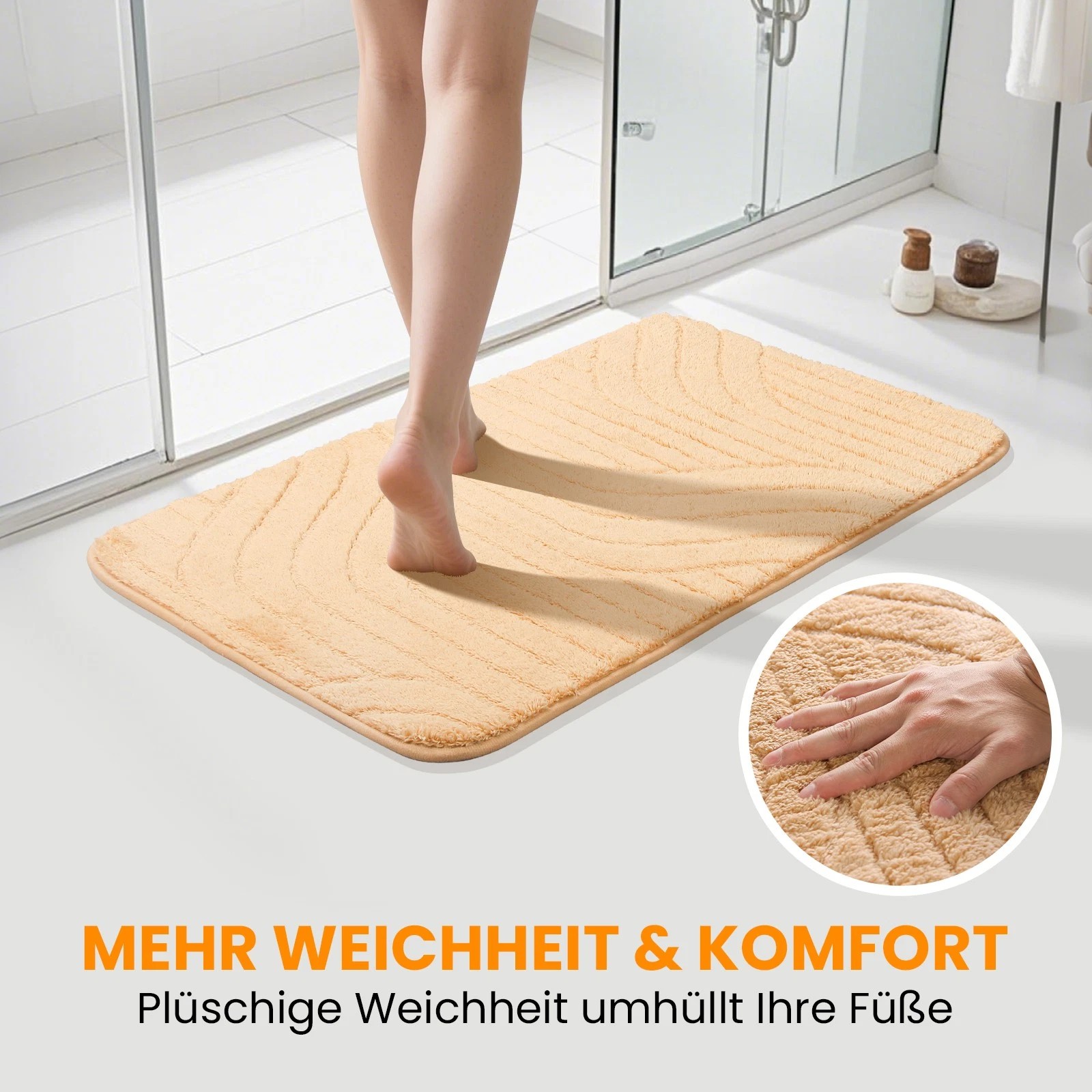 Der zottelige Badteppich aus Mikrofaser ist saugfähiger als Badteppiche aus Baumwolle. 8 mm hohe Flore helfen, Ihre Böden vor Tropfwasser zu bewahren, während Sie aus der Badewanne, Dusche oder dem Spa steigen oder sich am Waschbecken fertig machen. Die Feuchtigkeit wird im tiefen Flor der Badematte eingeschlossen, so dass Ihr Badezimmerboden sauber und trocken bleibt.