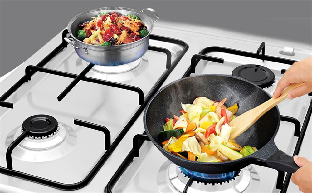 Hochenergie-Steuerschalter für bequemen Betrieb. Der Gasherd hat vier separate Schalter. Die Flamme kann durch Drehen des Schalters am Zünder während des Kochens eingestellt werden. Brenner verteilen die Hitze gleichmäßig in der Mitte und an den Rändern des Topfes und sorgen so für ein perfektes Garen.