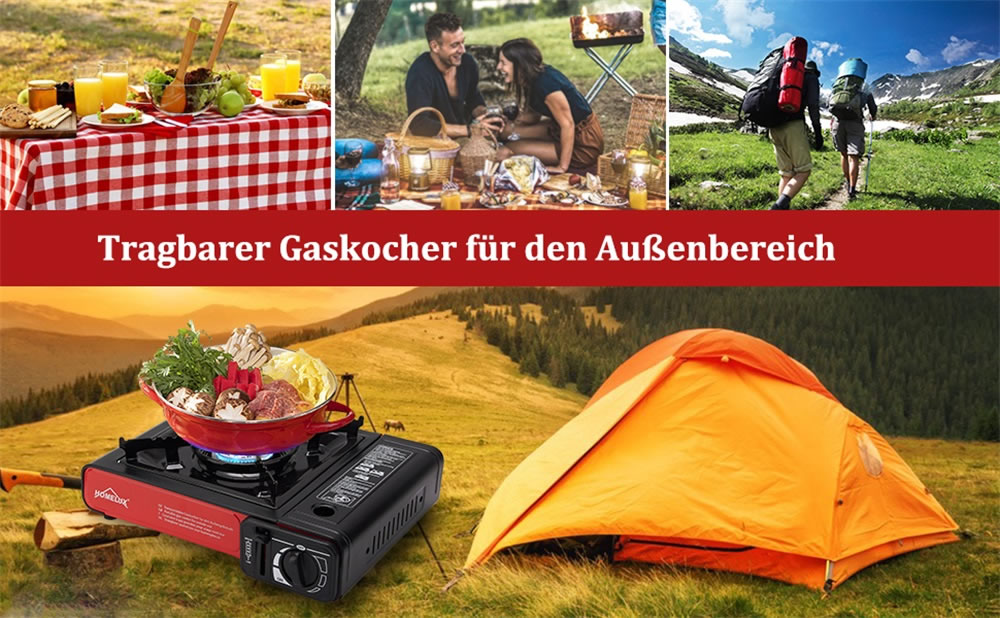 Der tragbare Butan-Campingkocher ist für jeden Camping- oder Rucksackausflug unerlässlich. Die Größe unseres tragbaren Gaskochers beträgt 34 * 27 * 7 cm, sodass Sie ihn überall hin mitnehmen können. Dieser Butankocher hat eine Hartschalen-Tragetasche, was bedeutet, dass dieses Gerät besonders tragbar ist! Der Kocher ist klein genug, um diesen Kocher problemlos auf jeden Camping- oder Wanderausflug mitzunehmen.