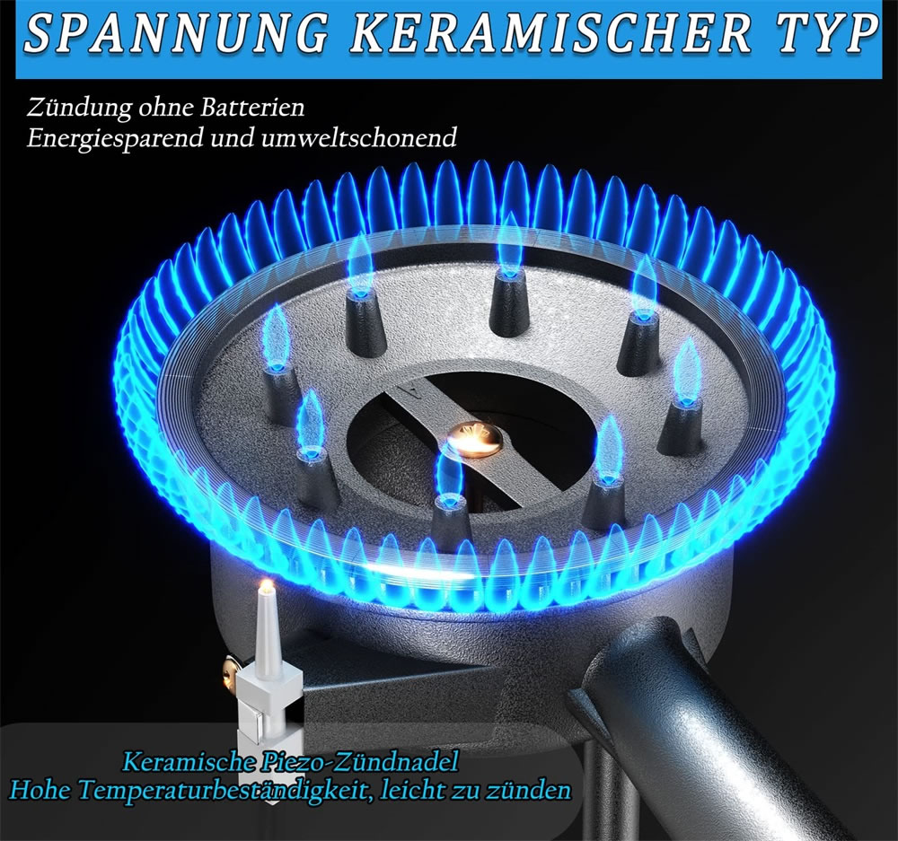 Die sichere Flameout-Einstellung verfügt über ein externes Dichtungssystem, um ein Austreten von Gas zu verhindern. Das winddichte Design und der explosionssichere Ofenkern haben eine gute Wärmeableitungsleistung und die Flamme ist stabiler. Bitte seien Sie versichert, unser Produkt zu verwenden. Piezo-Zündungsdesign mit Sicherheitsverschluss für einfache Verwendung.