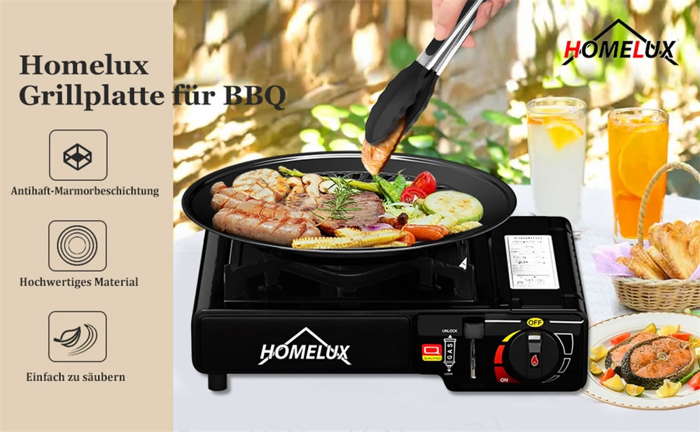 Gas- oder Propangasherden verwendet werden; Geeignet zum Braten verschiedener Fleisch- und Gemüsesorten; Ideal für Grillbraten im Innen- und Außenbereich, Picknick, Party und andere.