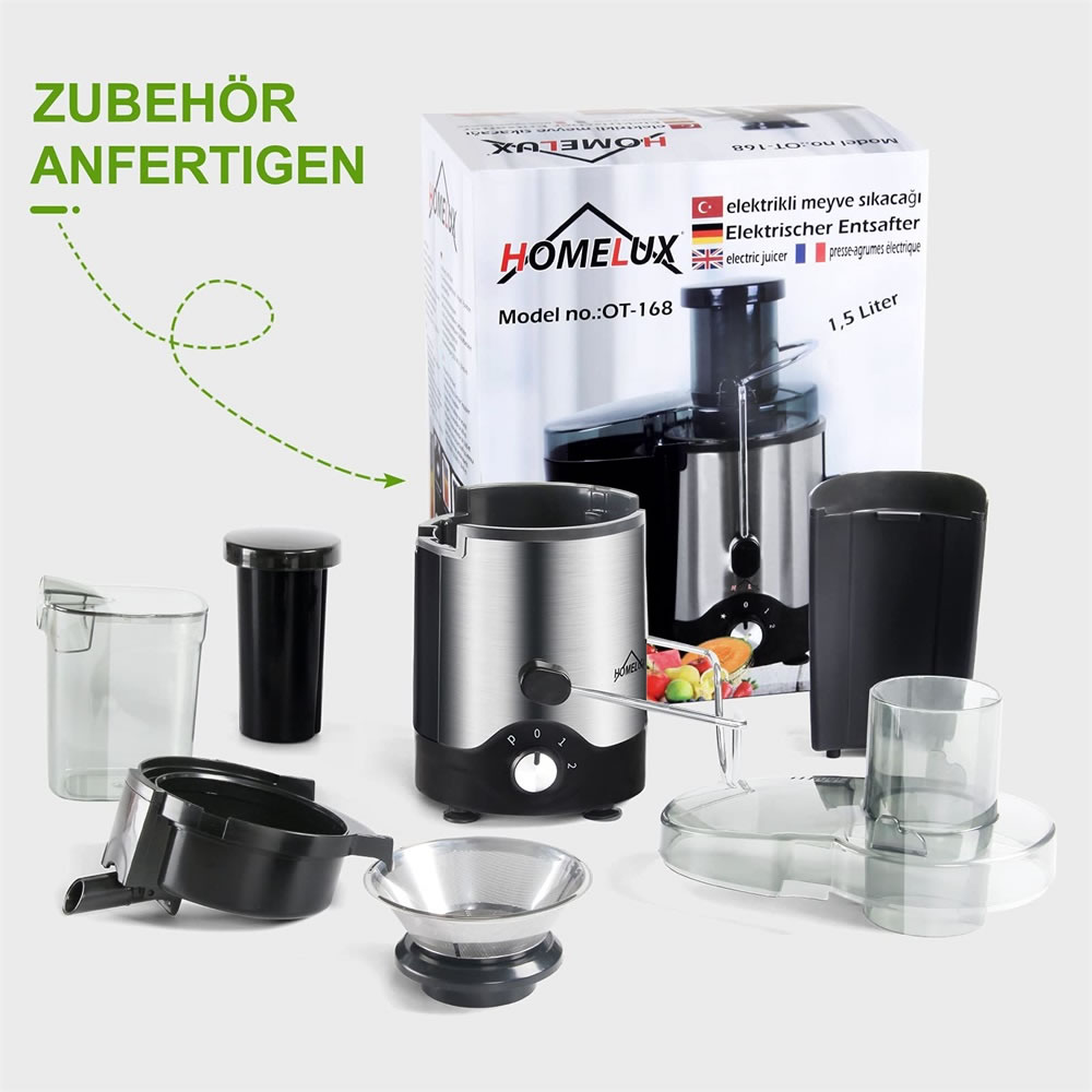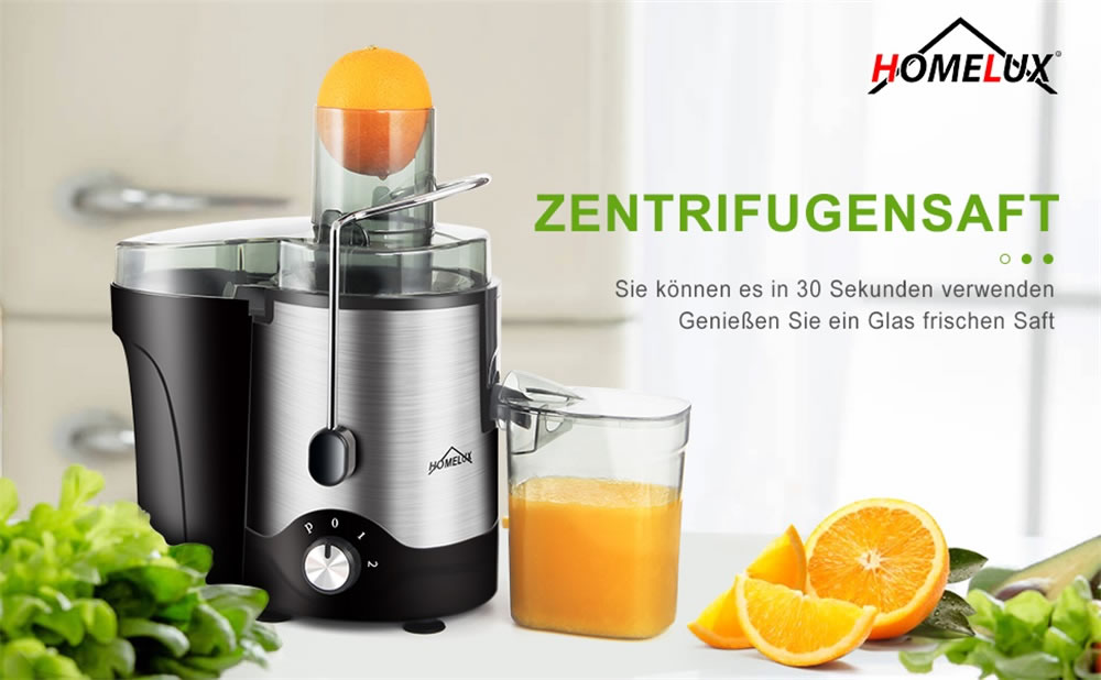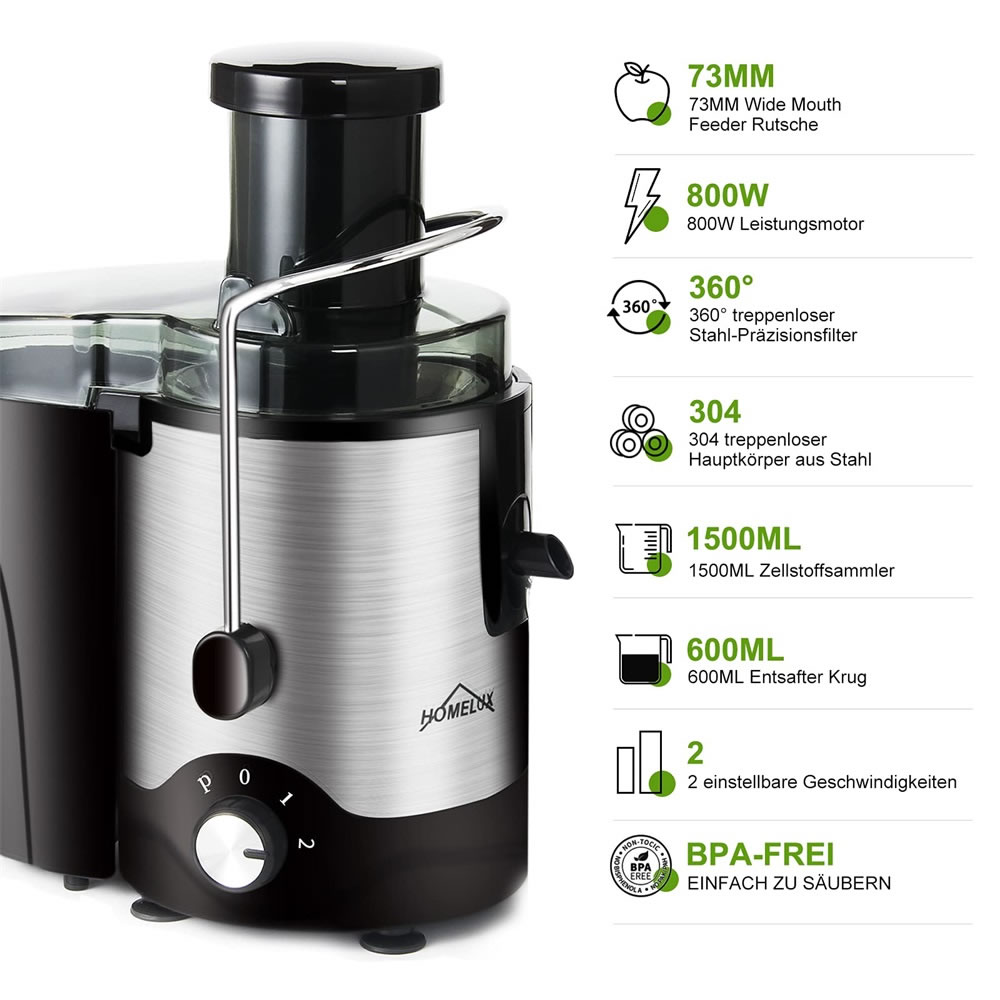 Der HOMELUX Entsafter mit einer Klinge aus lebensmittelechtem Edelstahl 304 und einem dreilagigen Siebfilter, Saftausbeute bis zu 80 % und Fruchtvitamine und Mineralien bis zu 85 %, ohne natürliche Aromen und Nährstoffe zu zerstören. 800 W Saftpresse hohe Leistung,Sie können in Sekunden eine 600 ml Tasse Saft mit weniger Verstopfung und weniger Schaum herstellen