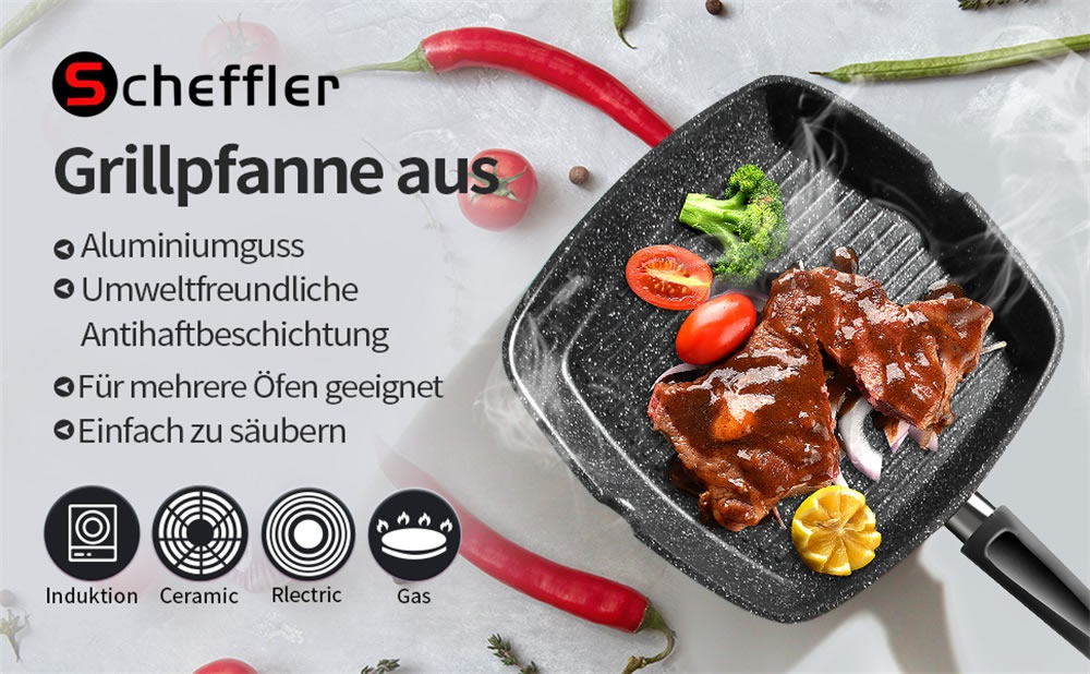 Die hochwertige Scheffler Antihaftbeschichtung ist sicher und gesund, 100% frei von APEO und PFOA, was Ihnen bei der Lösung des Reinigungsproblems helfen kann. Sie brauchen nur einen weichen Schwamm oder Lappen, um Öl leicht zu entfernen. Oder spülen Sie es mit Wasser ab, um es zu reinigen.