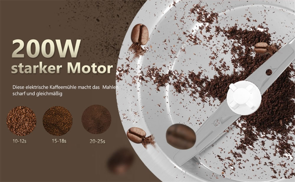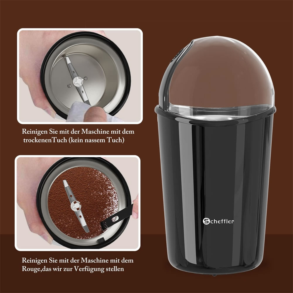Scheffler Kaffeemühle 200W Elektrische Kaffeemühle für Bohnen, Nüsse und Getreidemühle mit 304 Edelstahlmesser 50g Kapazität, R-14
