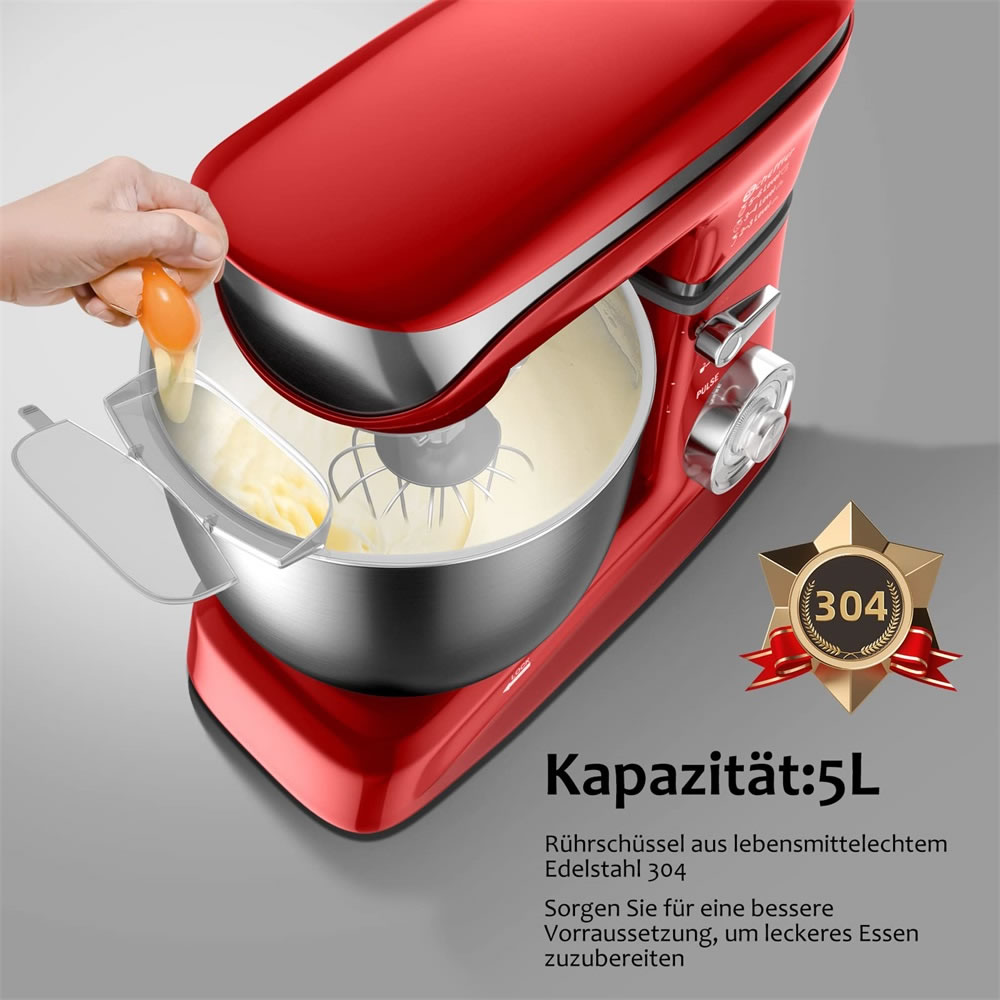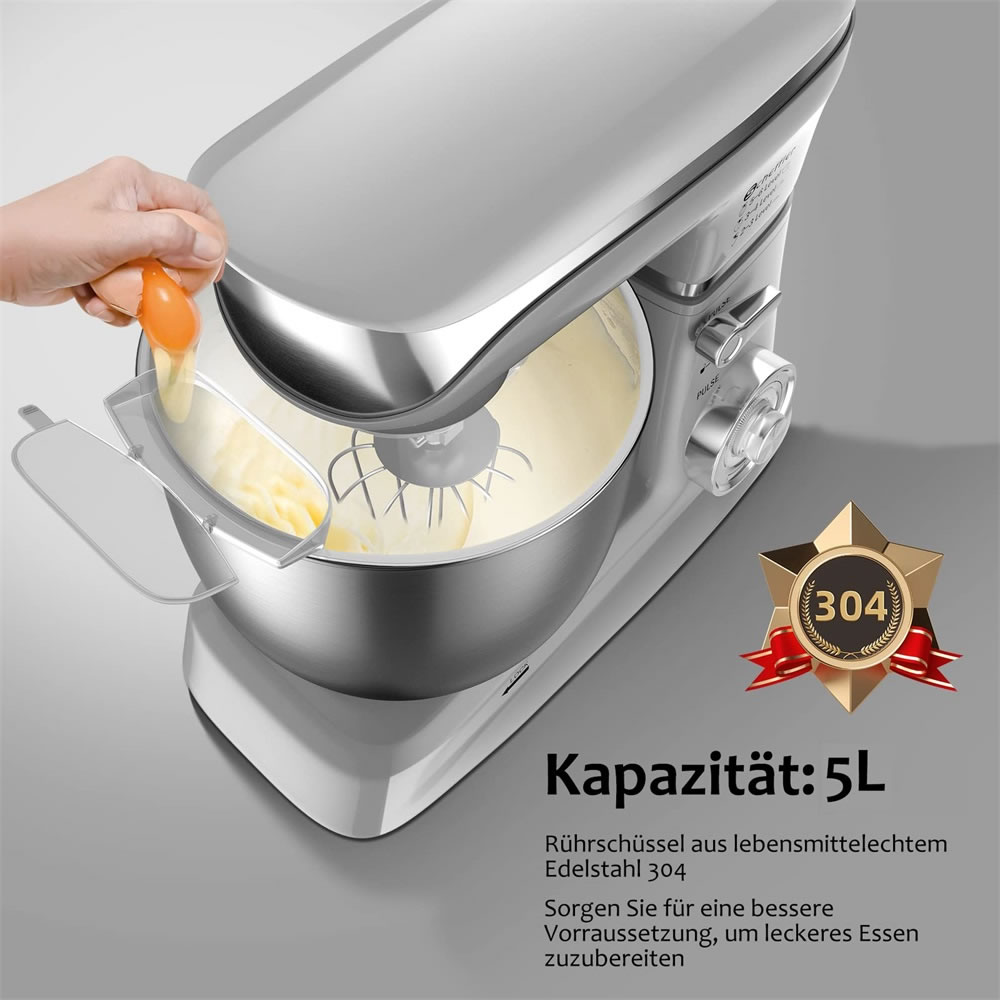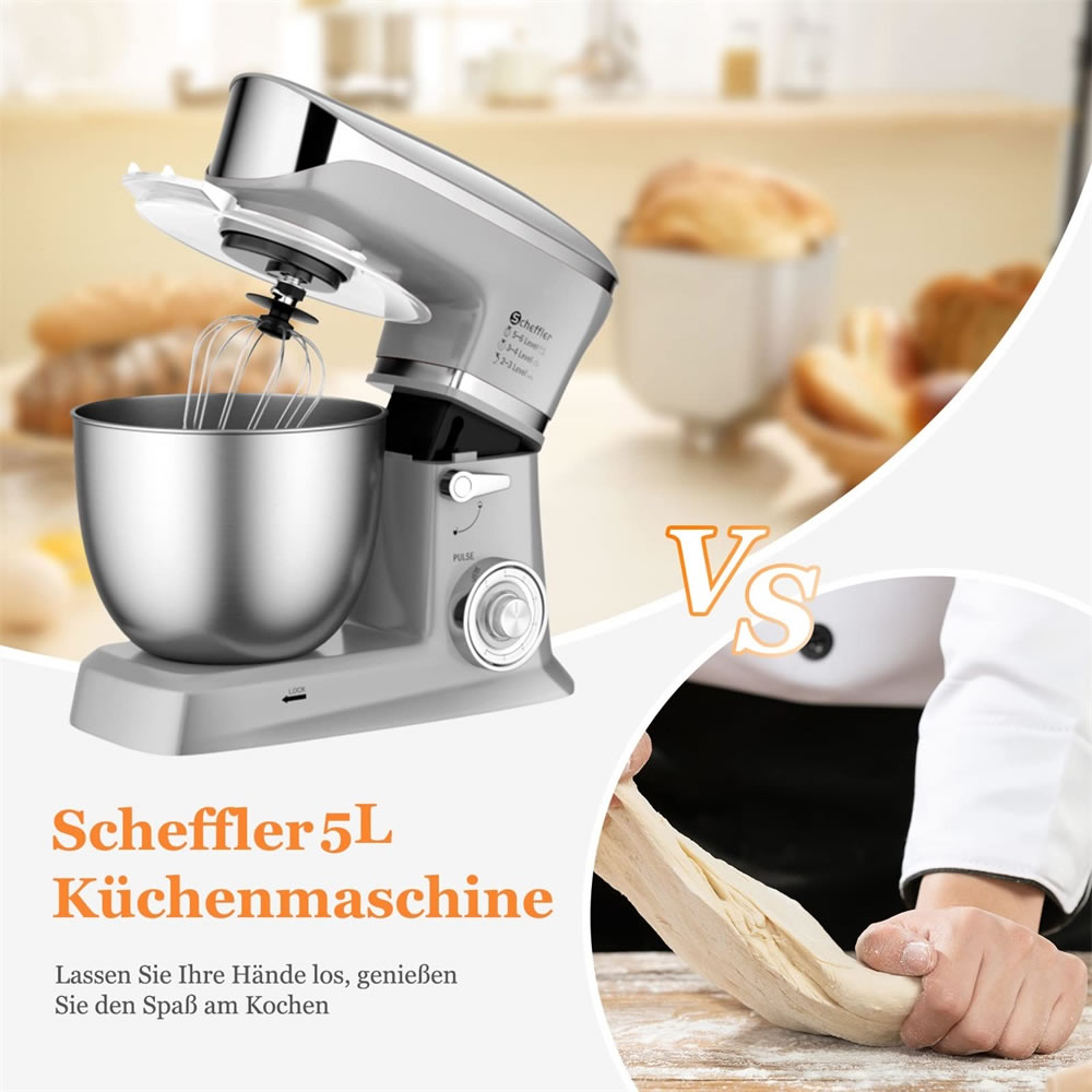 5L Rührmaschine ist aus lebensmittelechtem 304 Edelstahl, der für Materialsicherheit sorgt. Die Scheffler Küchenmaschine multifunktional bietet genügend Kapazität für Familien. Erfüllen Sie alle Ihre Küchenbedürfnisse und sparen Sie Platz auf der Arbeitsplatte.