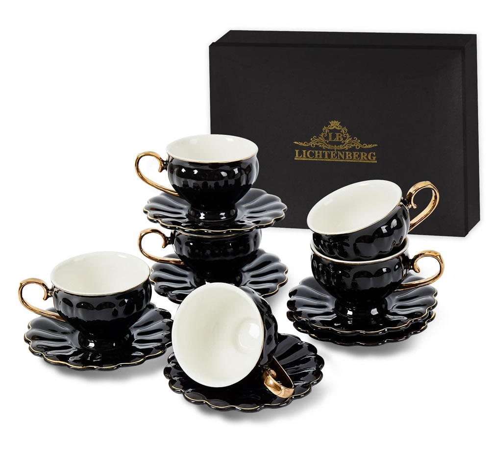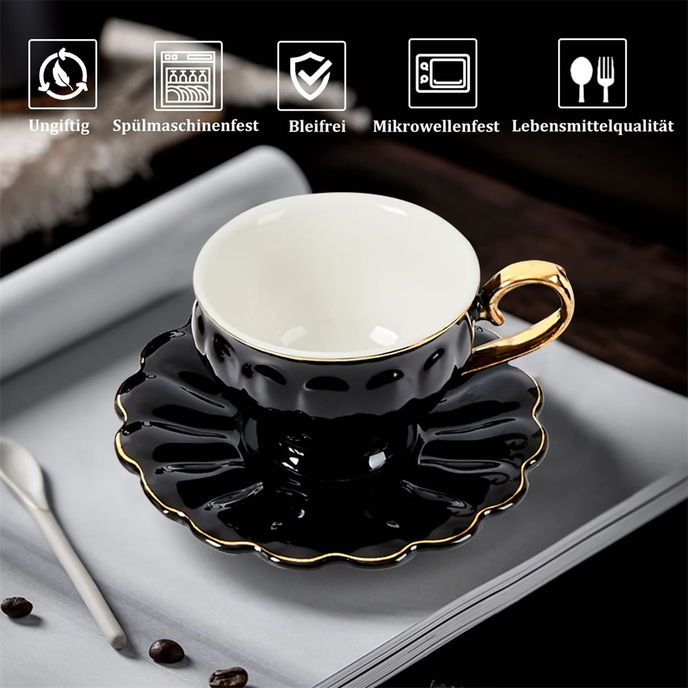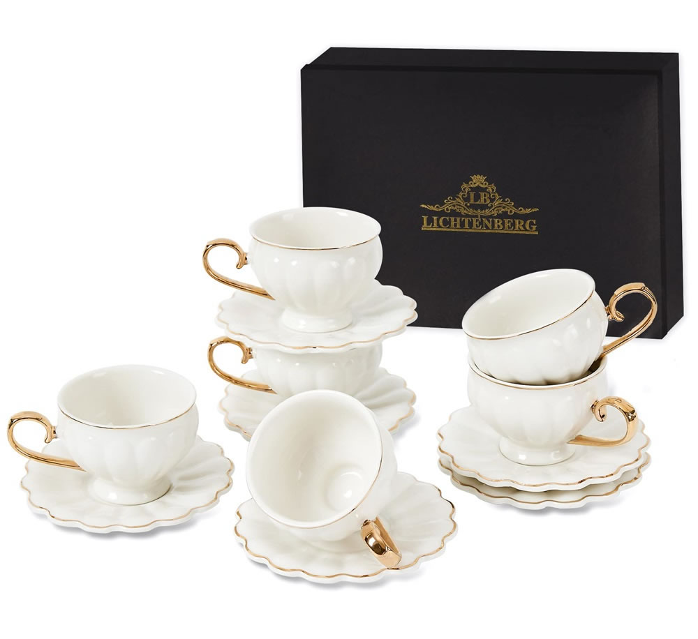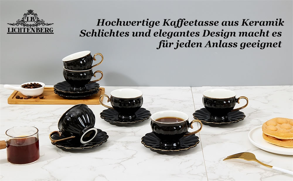 LB Espressotassen, 12-teilig Espressotassen Set, 90 ml Dickwandige Kaffeetassen mit Untertasse