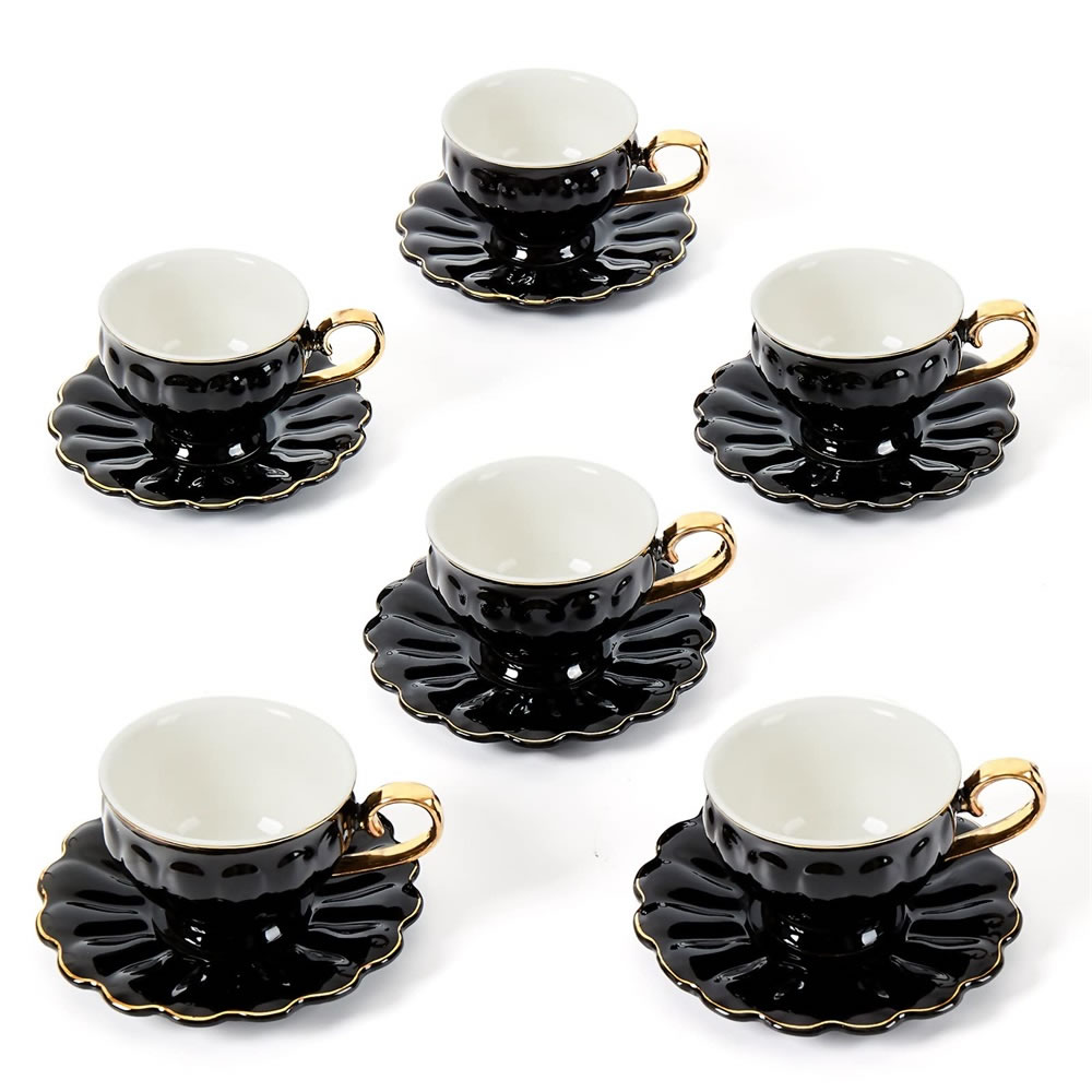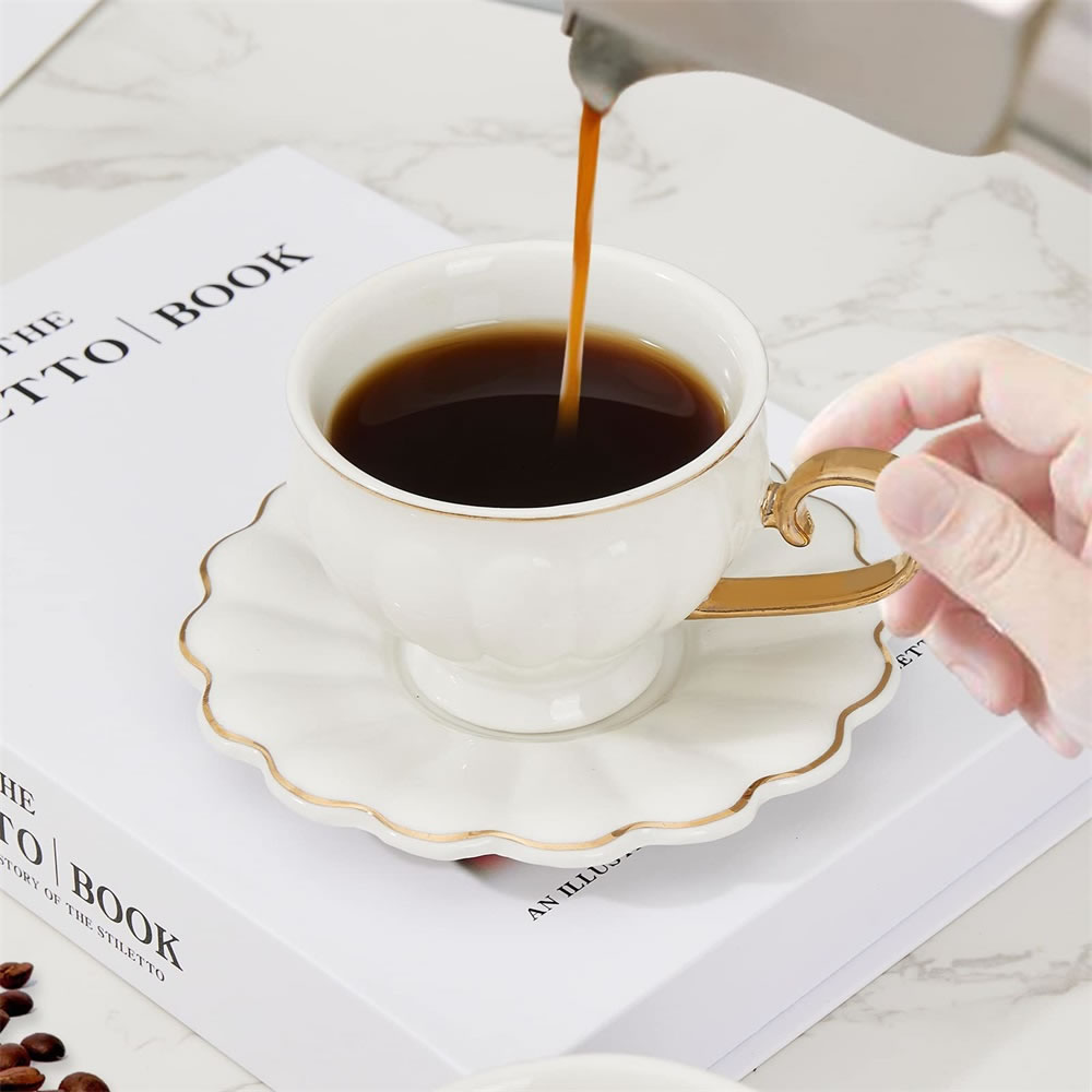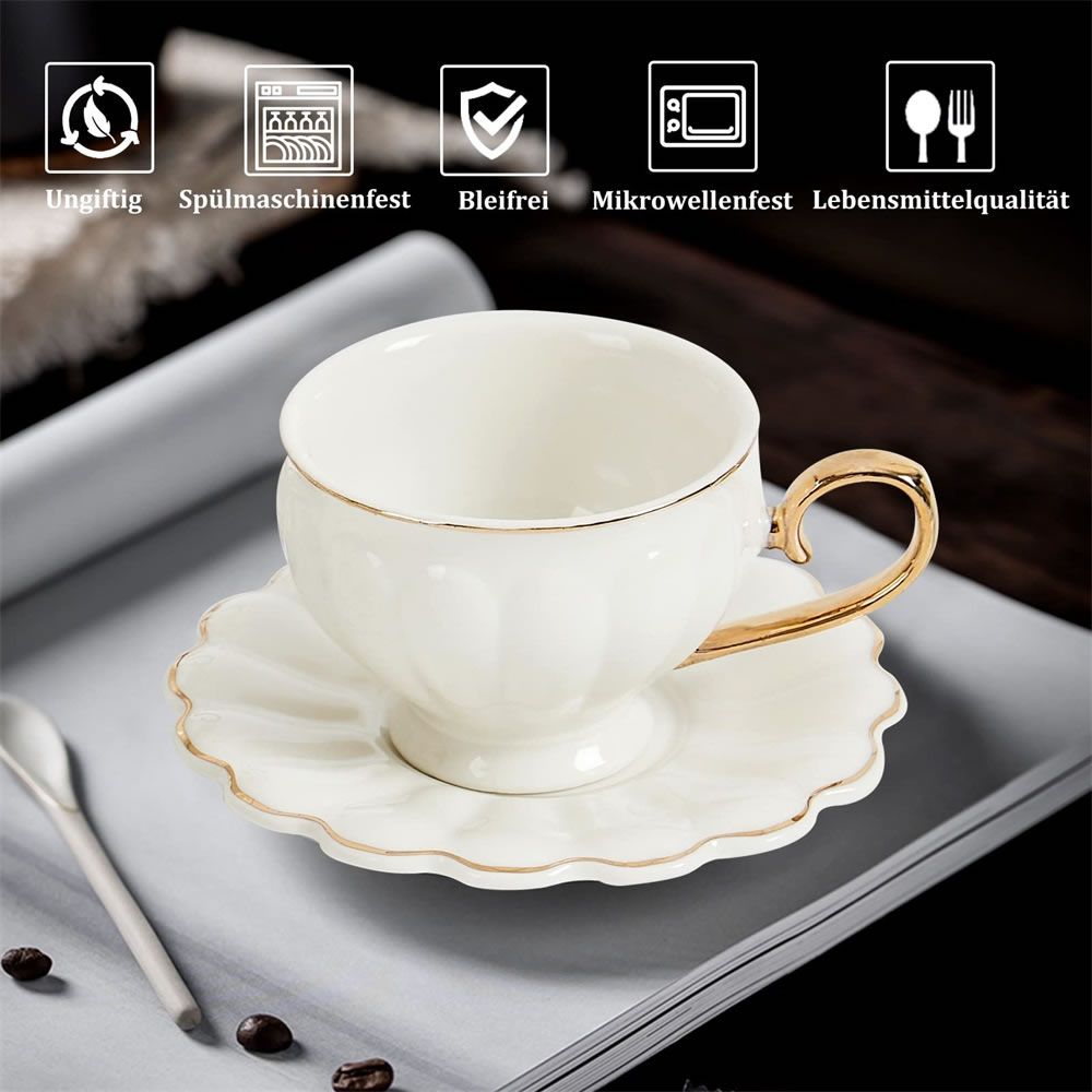 LB Espressotassen, 12-teilig Espressotassen Set, 90 ml Dickwandige Kaffeetassen mit Untertasse