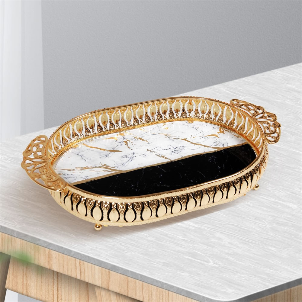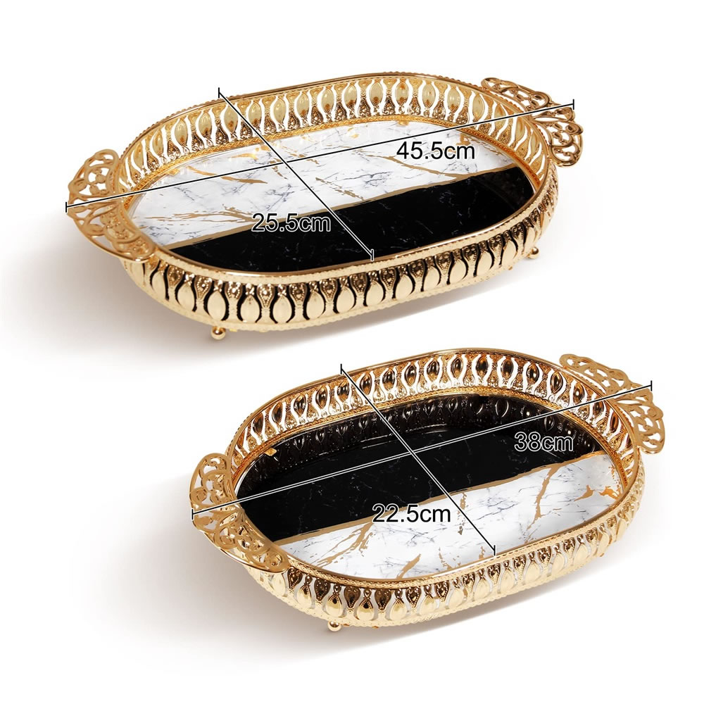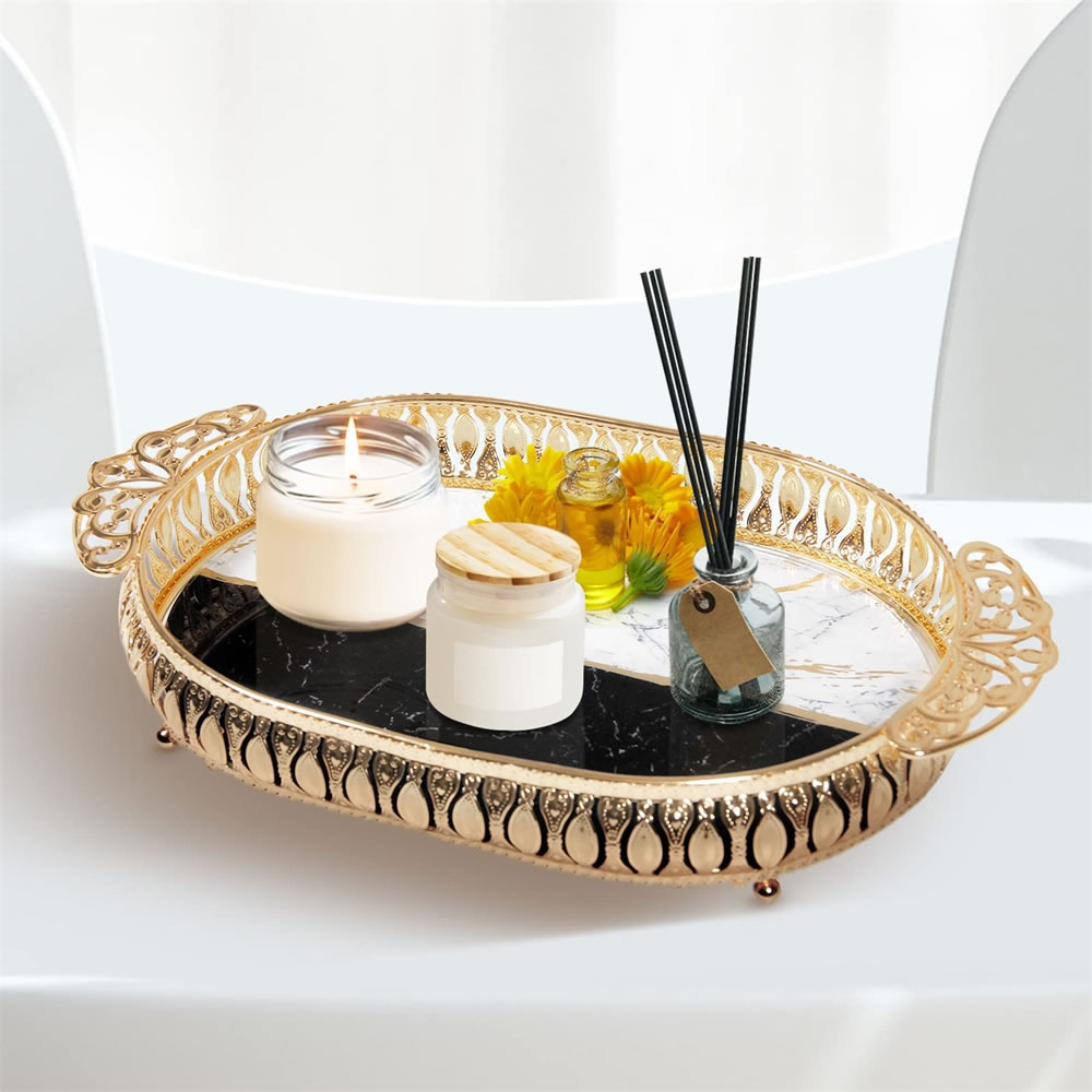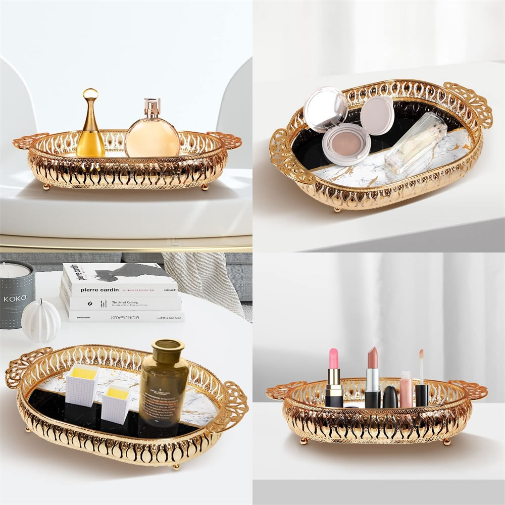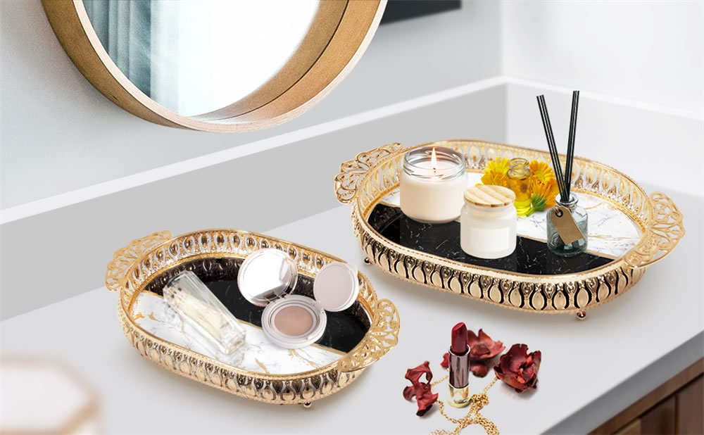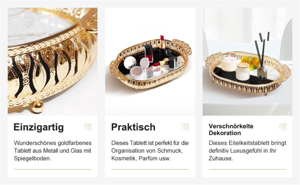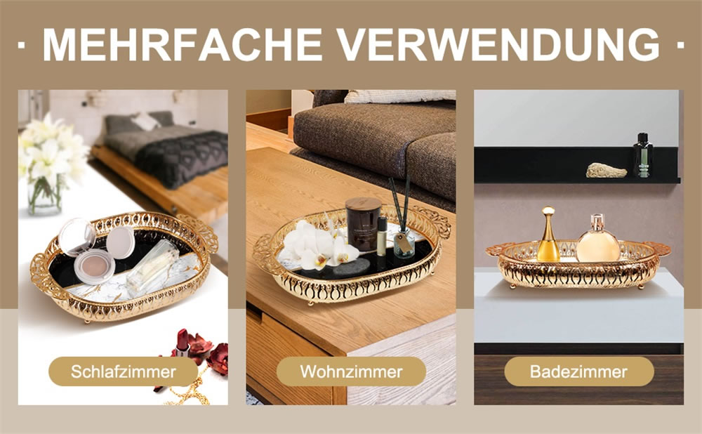 Sorgen Sie sich oft um den unordentlichen Tisch? Mit diesem schönen Tablett Set wird Ihr Desktop sauber und ordentlich sein. Seine große Kapazität macht es zu einer ausgezeichneten Wahl für Schminktisch Organizer, Parfüm Organizer oder Wohnzimmer Süßigkeiten Tabletts.
