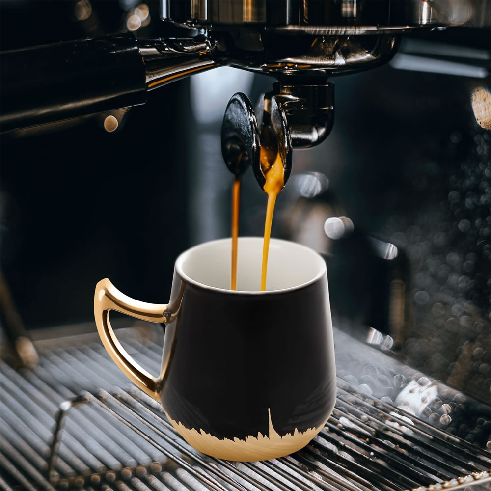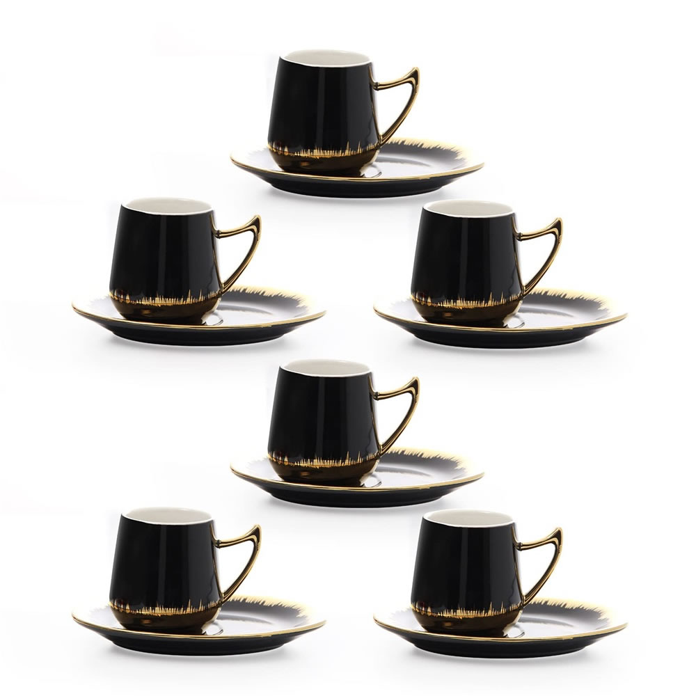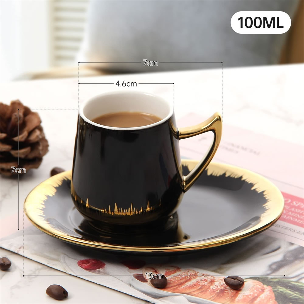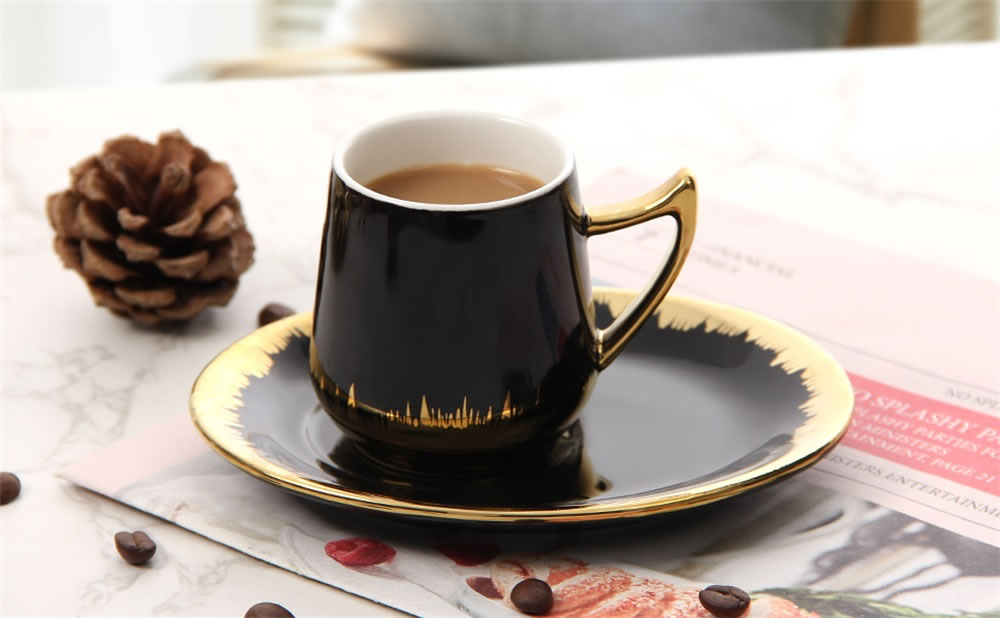 Das Espressotassen Set hat eine schöne Form, mit einem runden Tablett mit goldenem fließendem Rand; Die Farbkombination von Schwarz und Gold ist hell und stark, was Luxus und edles Aussehen in die Tasse bringt und Ihren Tisch erhellen kann. Dieses Set von Espressotassen ist für alle Gelegenheiten geeignet und kann jeder Party oder Küchenschrank eine schöne Farbe hinzufügen. Mit der Einstellung, raffiniertes Leben zu umarmen, wird dies definitiv eine Überraschung in Ihrem Leben sein!