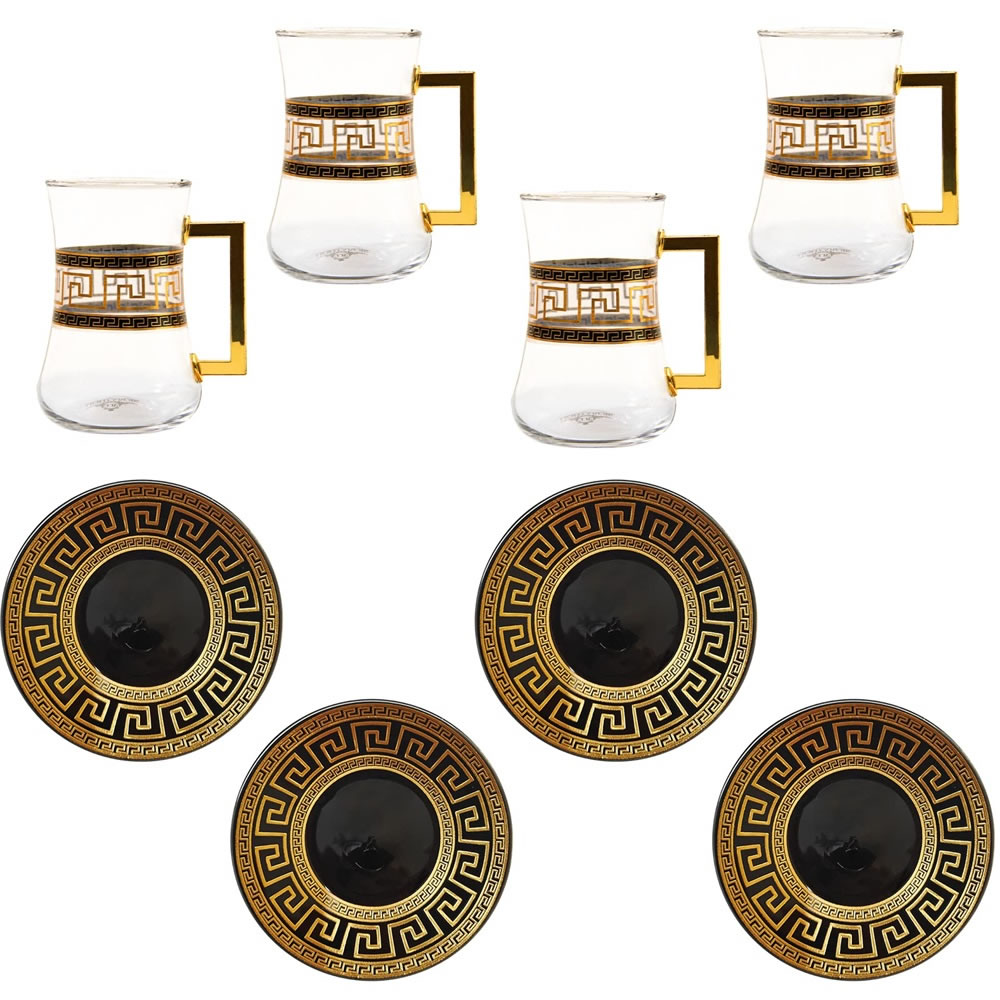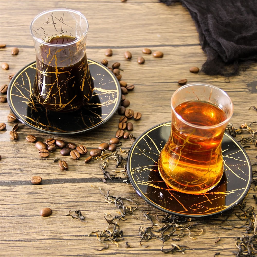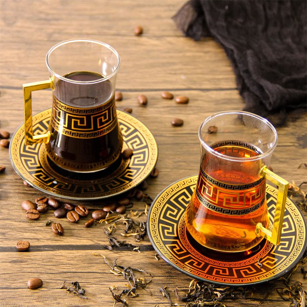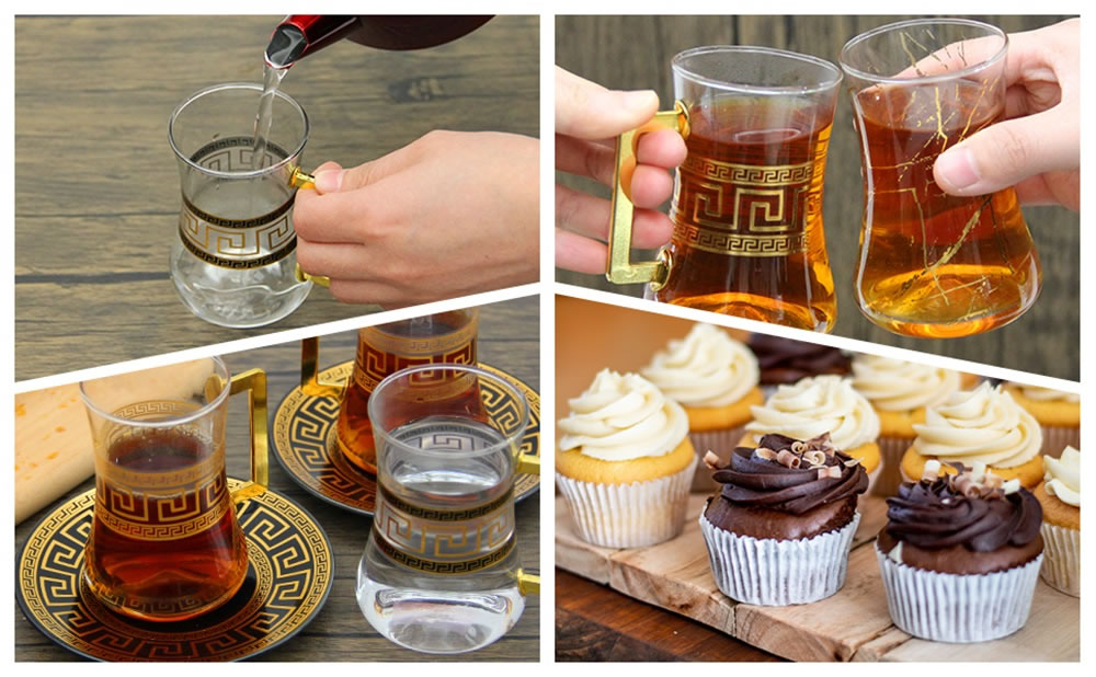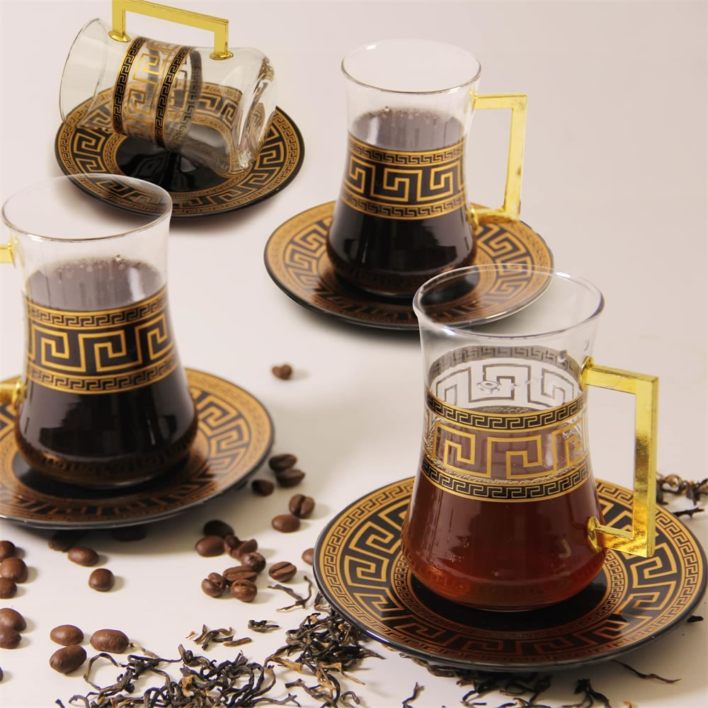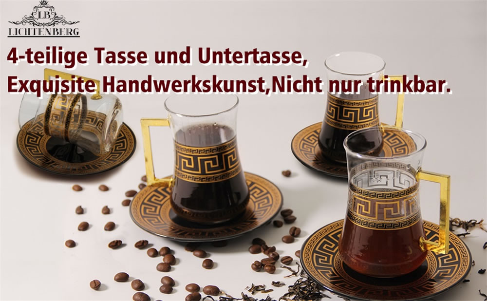 LB 8 Teiliges Türkisches Tee Set, Glas türkische teegläser set mit Untertasse Für 4 Personen, 4 Teegläser, 4 Untersetzer,Komplett-Set,LB27GCH