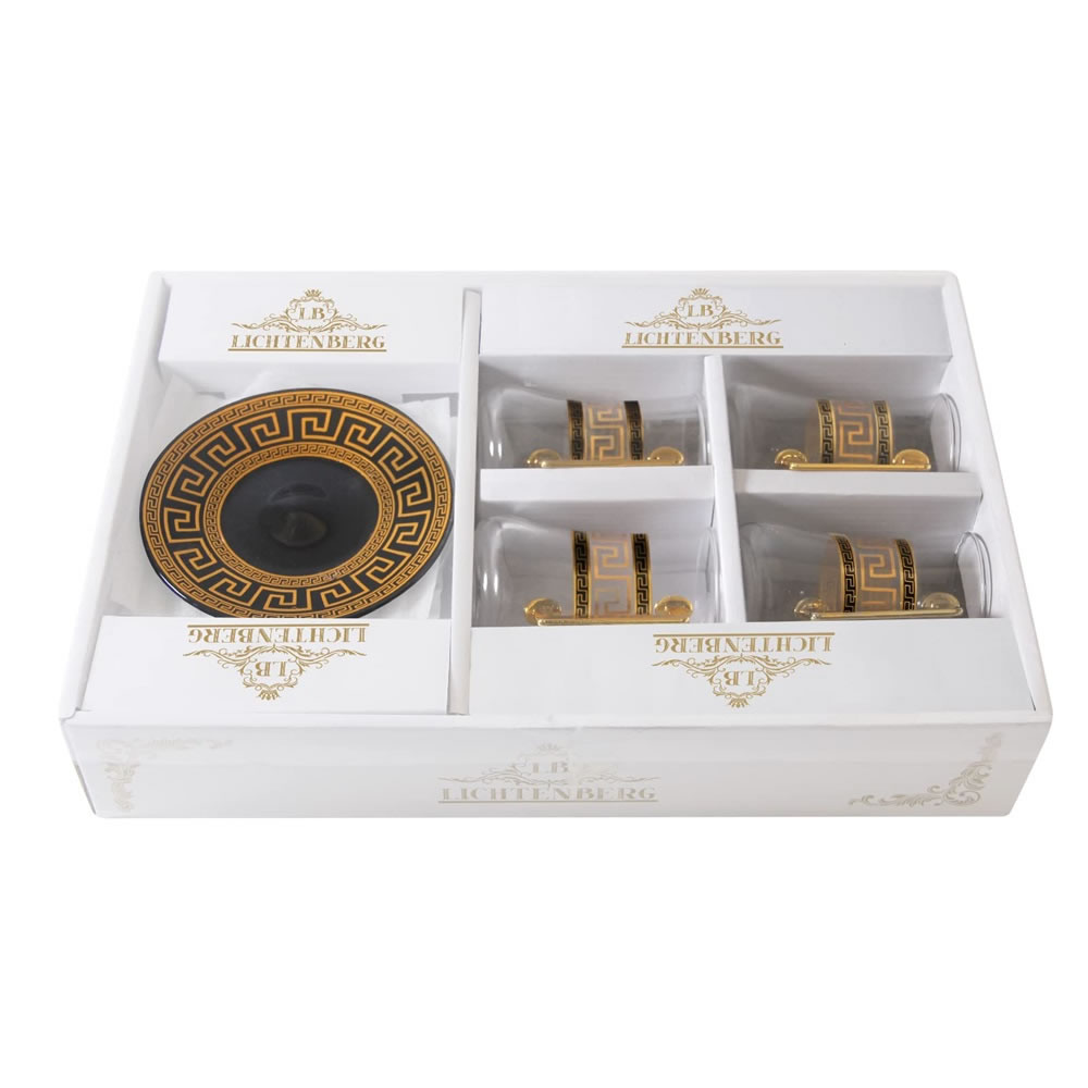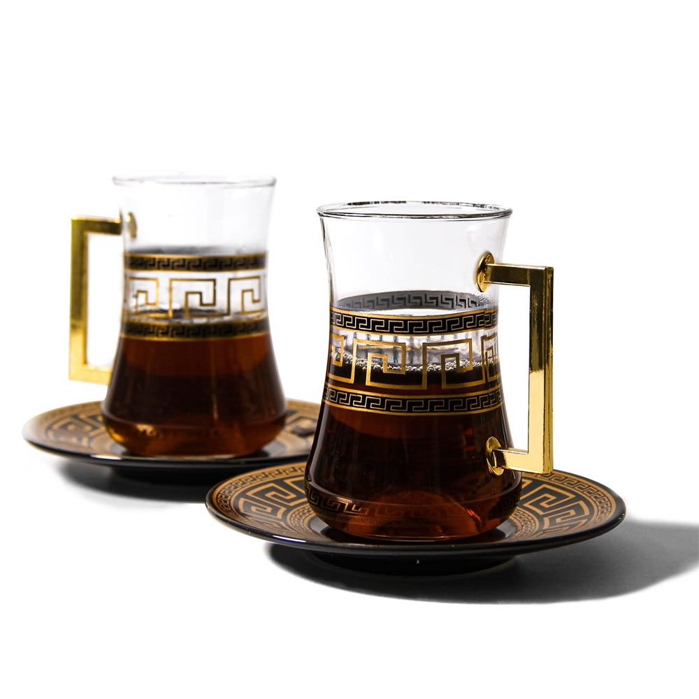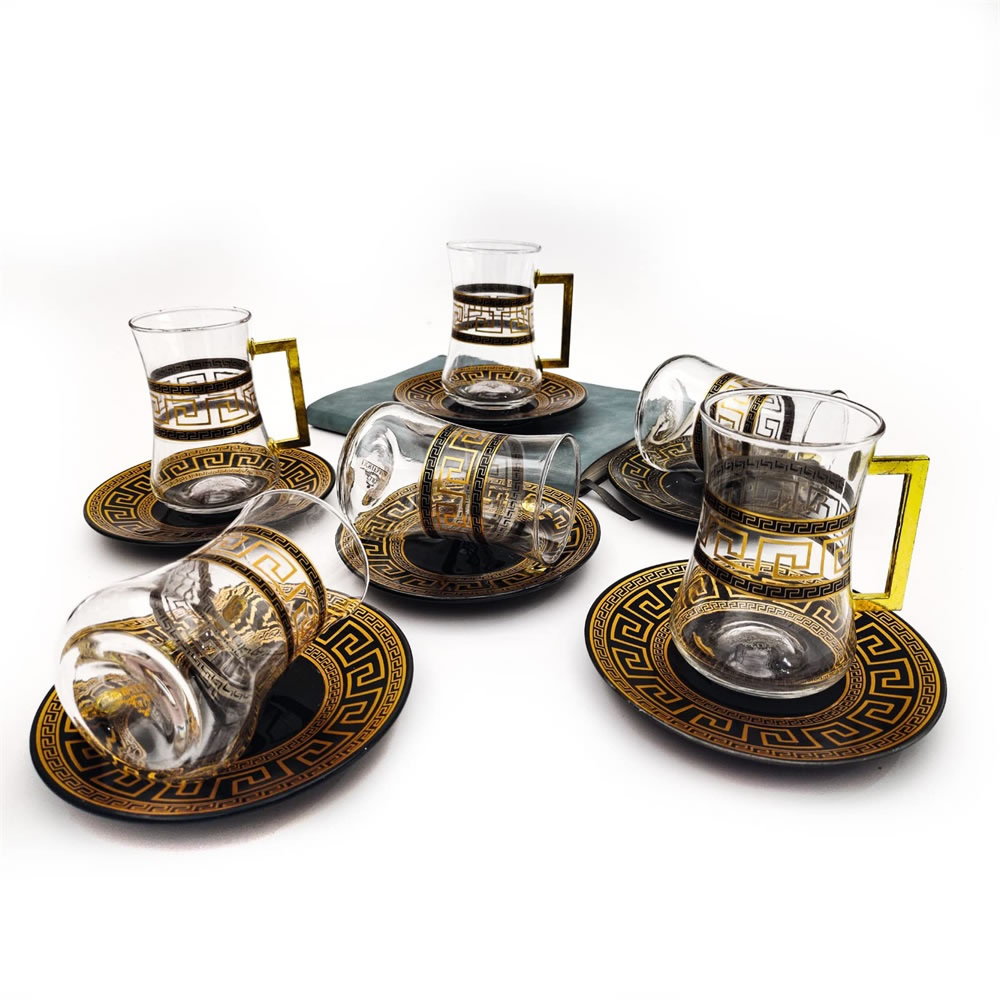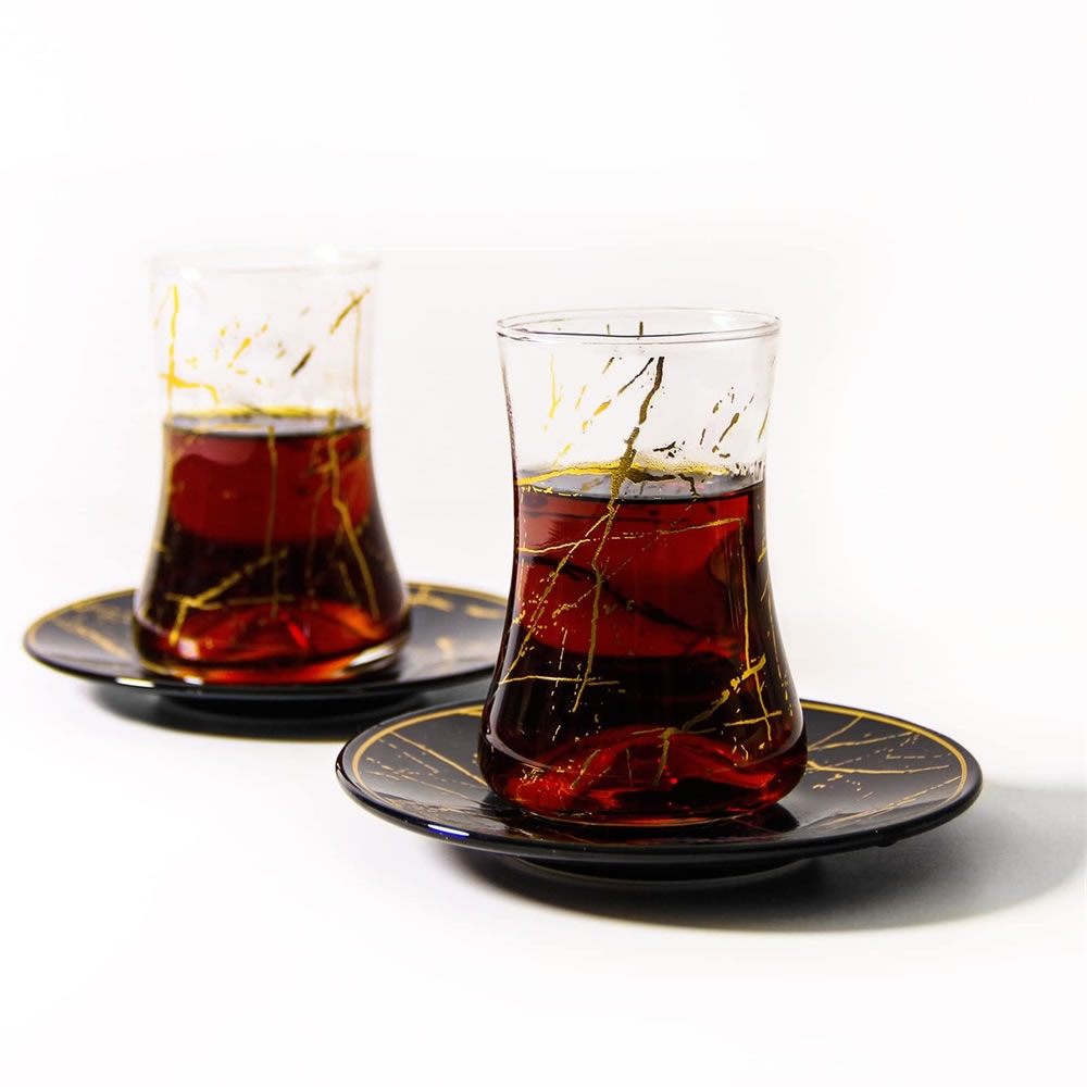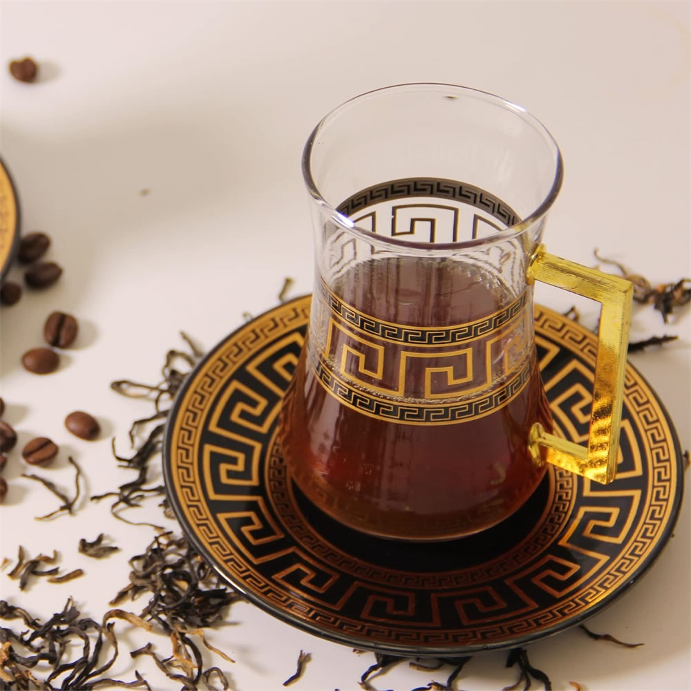 LB 8 Teiliges Türkisches Tee Set, Glas türkische teegläser set mit Untertasse Für 4 Personen, 4 Teegläser, 4 Untersetzer,Komplett-Set,LB27GCH