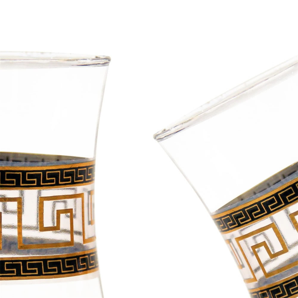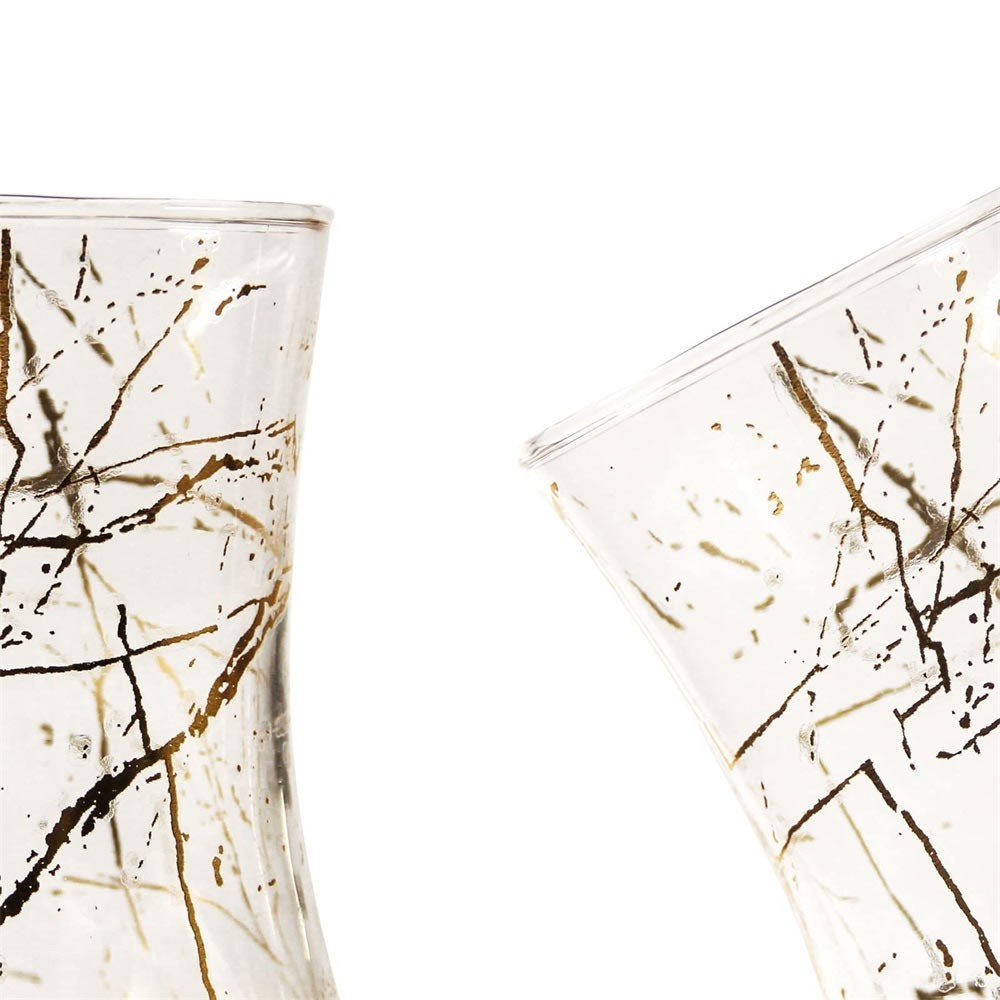 Die eleganten Golddetails verbinden sich mit den schönen tulpenförmigen Konturen, um Ihnen eine fantastische Tasse zu bieten, die ein kulinarisches Erlebnis bietet, das Ihre Gäste nicht so schnell vergessen werden. Die traditionell geformte arabische Teetasse ist genau richtig für einen bequemen Halt. Kristallklares, transparentes Glas lässt Sie den Inhalt Ihrer Tasse sehen, sodass Sie den Tee genau nach Ihrem Geschmack aufbrühen können.