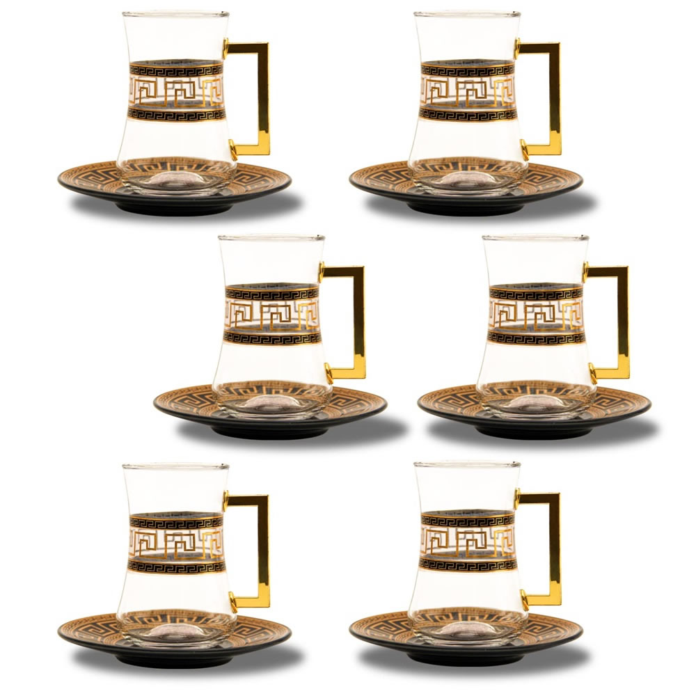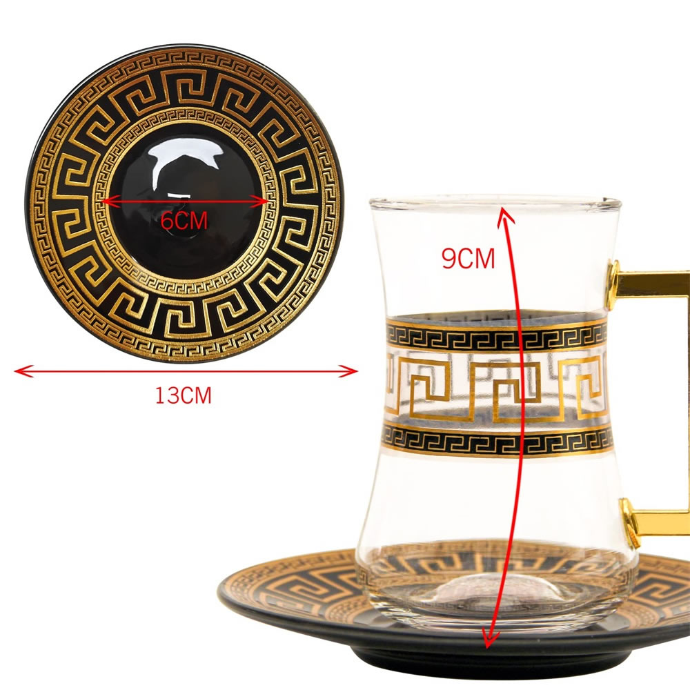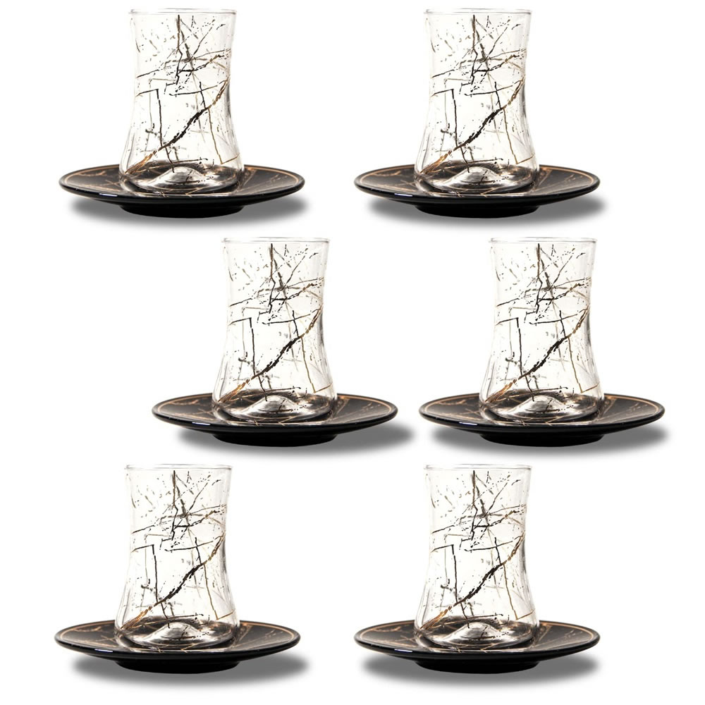 Sie erhalten ein Set aus 6 Teegläsern und 6 Untertassen. Insgesamt 12 Stück. Die Höhe der Tasse beträgt 9.4 cm. Untertassen haben einen Durchmesser von 12 cm. Die Aufbewahrung beträgt 200 ml. Vintage marokkanische persische Teegläser sind perfekt für Tee, Wein, Espresso, Champagner usw. Laden Sie einige Freunde ein und genießen Sie gemeinsam eine authentische
