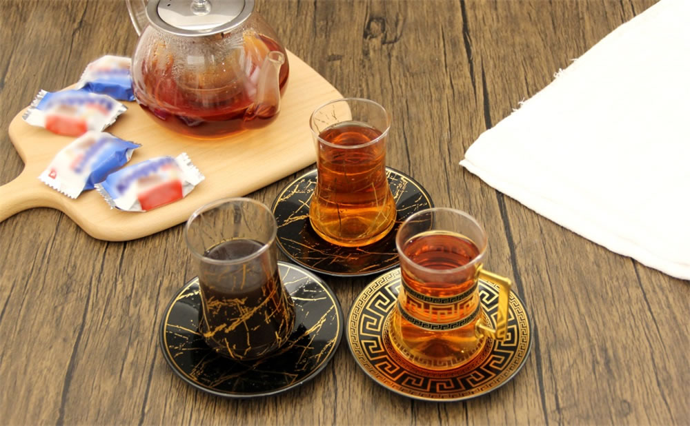 Teetassen bestehen aus hochwertigem Rohglasmaterial und sind frei von Schadstoffen wie Blei und Cadmium. Der Untersetzer besteht aus hochwertiger, BPA-freier Keramik. So können Sie Ihren Lieben das Beste servieren, ohne sich Sorgen machen zu müssen.
