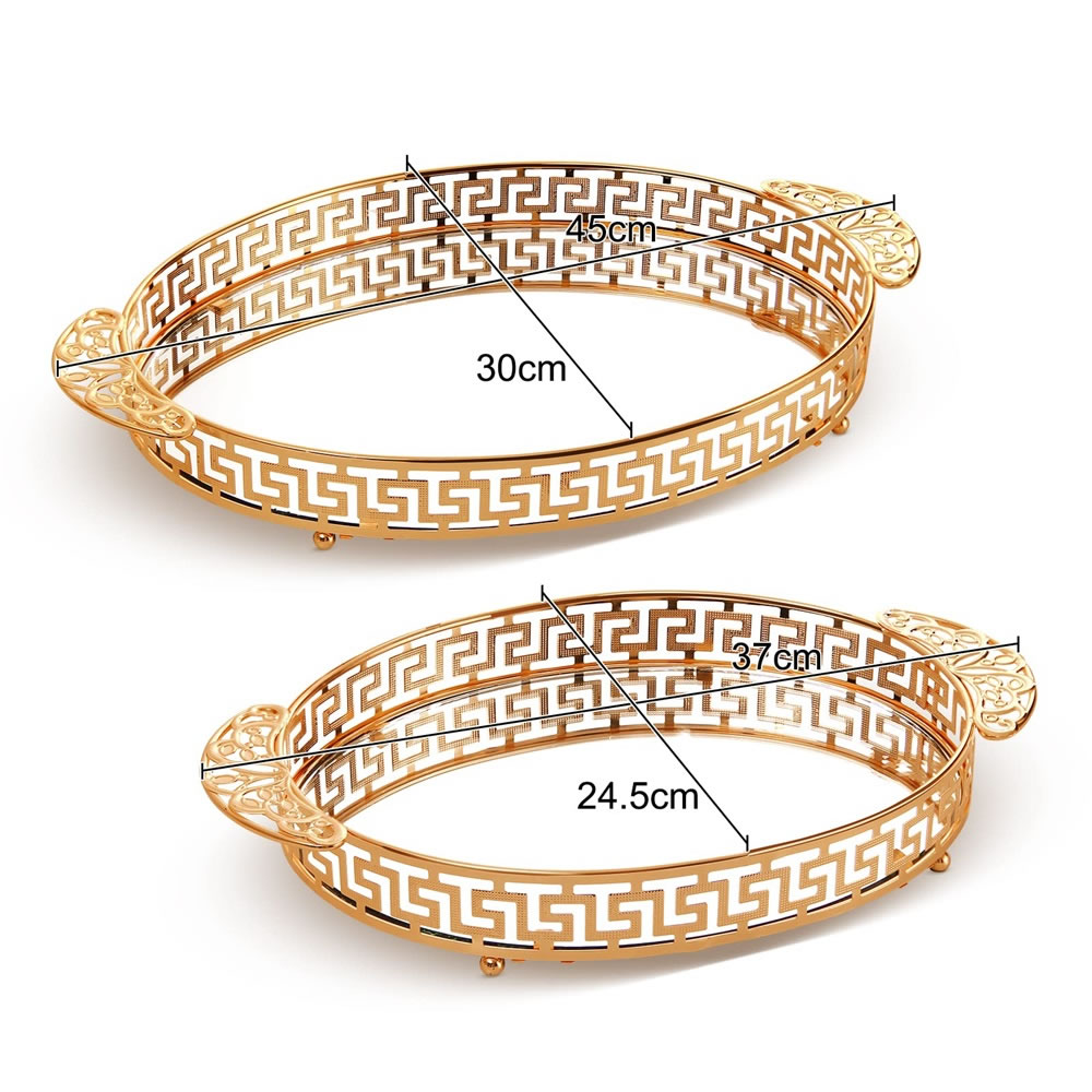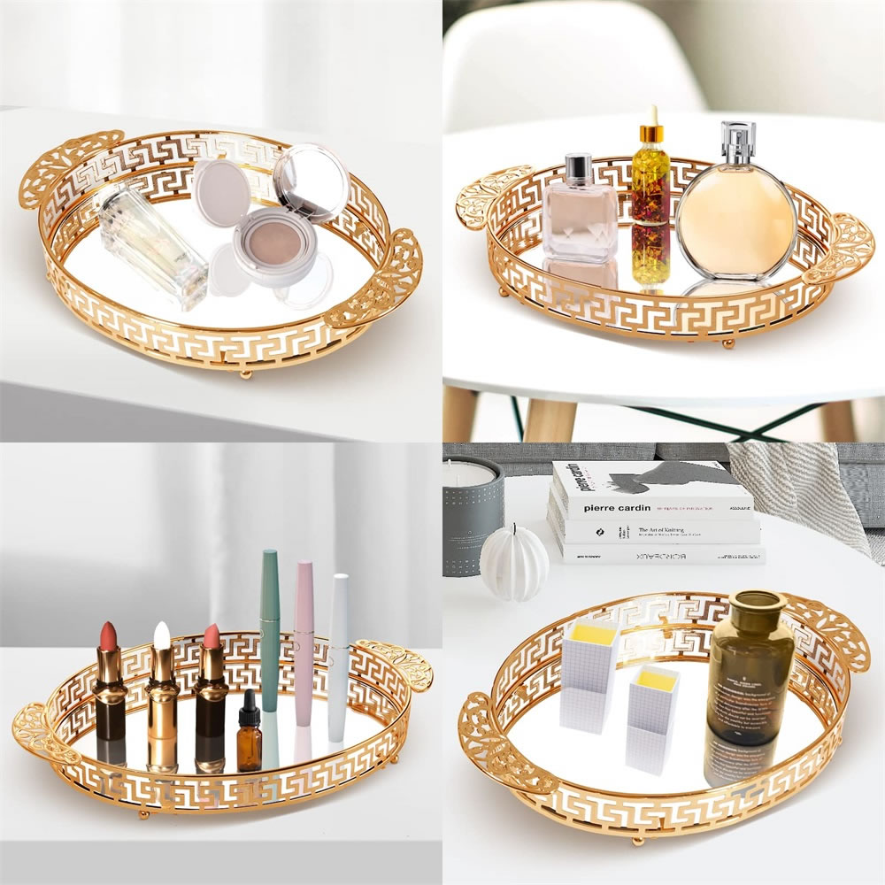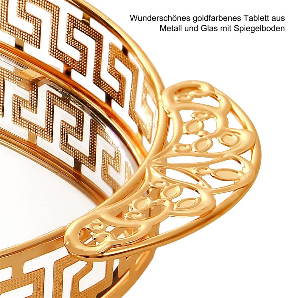 Tablett Set Größe: 45x30x5.5cm und 37x24.5x5.5cm. Der exquisite Goldrahmen zeigt den Adel und die Eleganz.Er eignet sich für das Wohnzimmer, das Schlafzimmer oder das Badezimmer Ihres Hauses und schmückt jede Ecke Ihres Hauses und zeigt Ihren eleganten Geschmack.