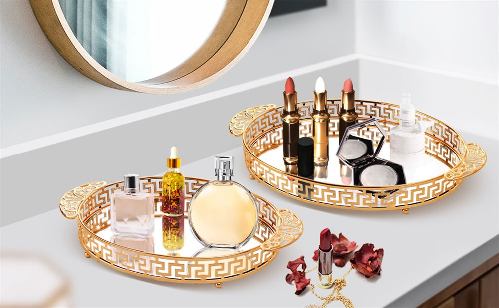 Sorgen Sie sich oft um den unordentlichen Tisch? Mit diesem schönen Tablett Set wird Ihr Desktop sauber und ordentlich sein. Seine große Kapazität macht es zu einer ausgezeichneten Wahl für Schminktisch Organizer, Parfüm Organizer oder Wohnzimmer Süßigkeiten Tabletts.