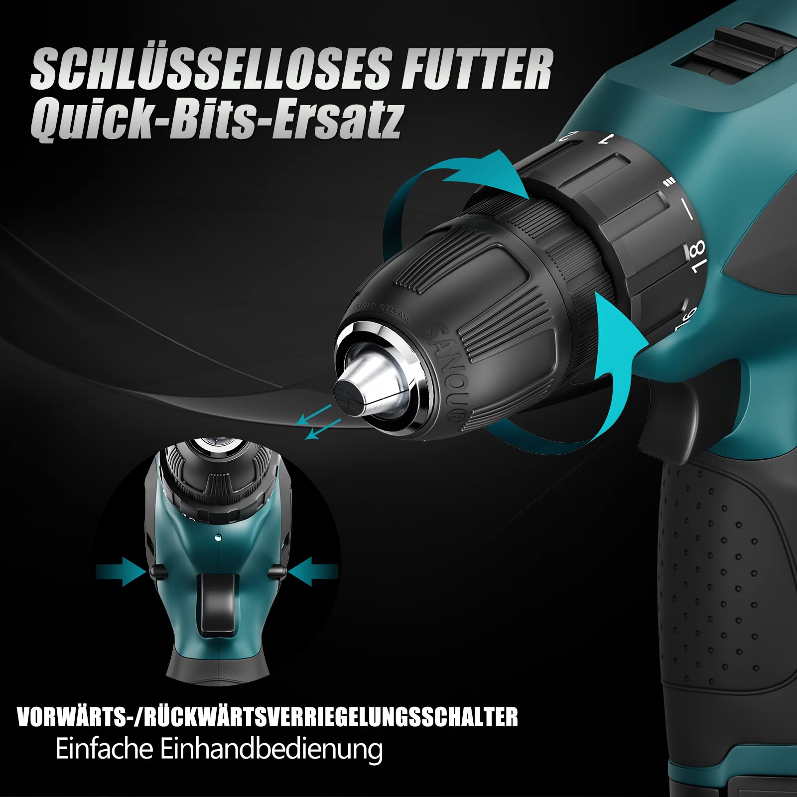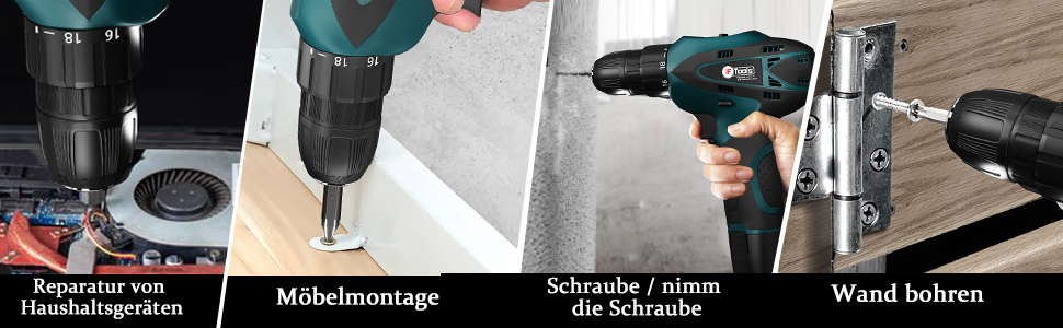 Das 18V akkuschrauber von IF Tools verfügt über 18 verschiedene Drehmomenteinstellungen, um das Ein- und Ausdrehen der Antriebsschraube präzise zu steuern und gleichzeitig ein versehentliches Lösen zu verhindern (0-1350 U/min) ,Der superpraktische elektrische Schraubendreher erleichtert das Entfernen und Verstärken einer breiten Palette von Befestigungselementen.